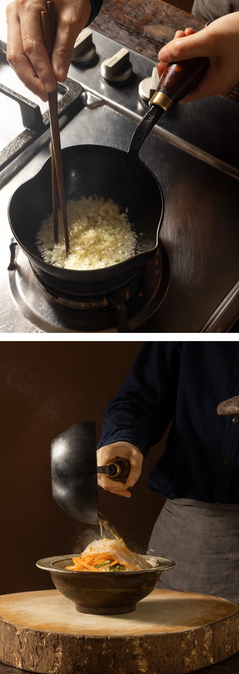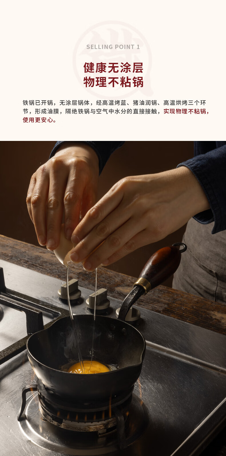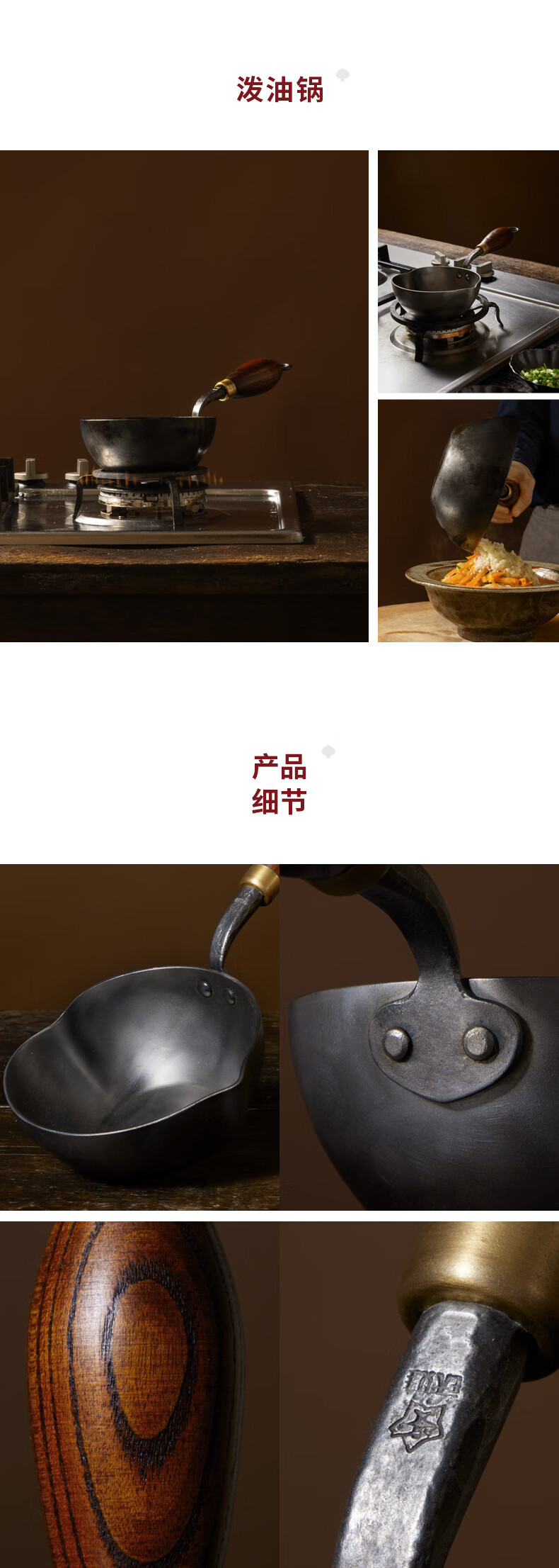 铁娃公社泼油锅锻打铁锅熟铁锅小锅不粘锅木柄 爱心泼油锅14cm