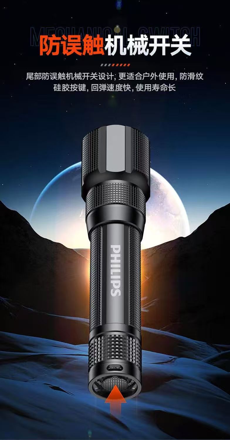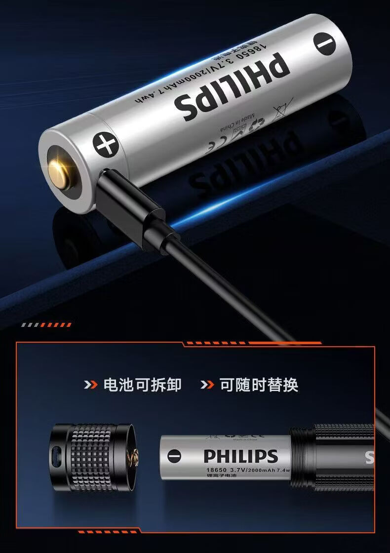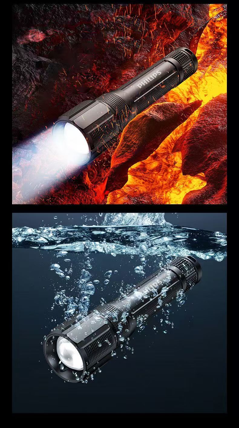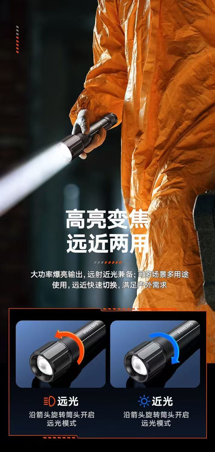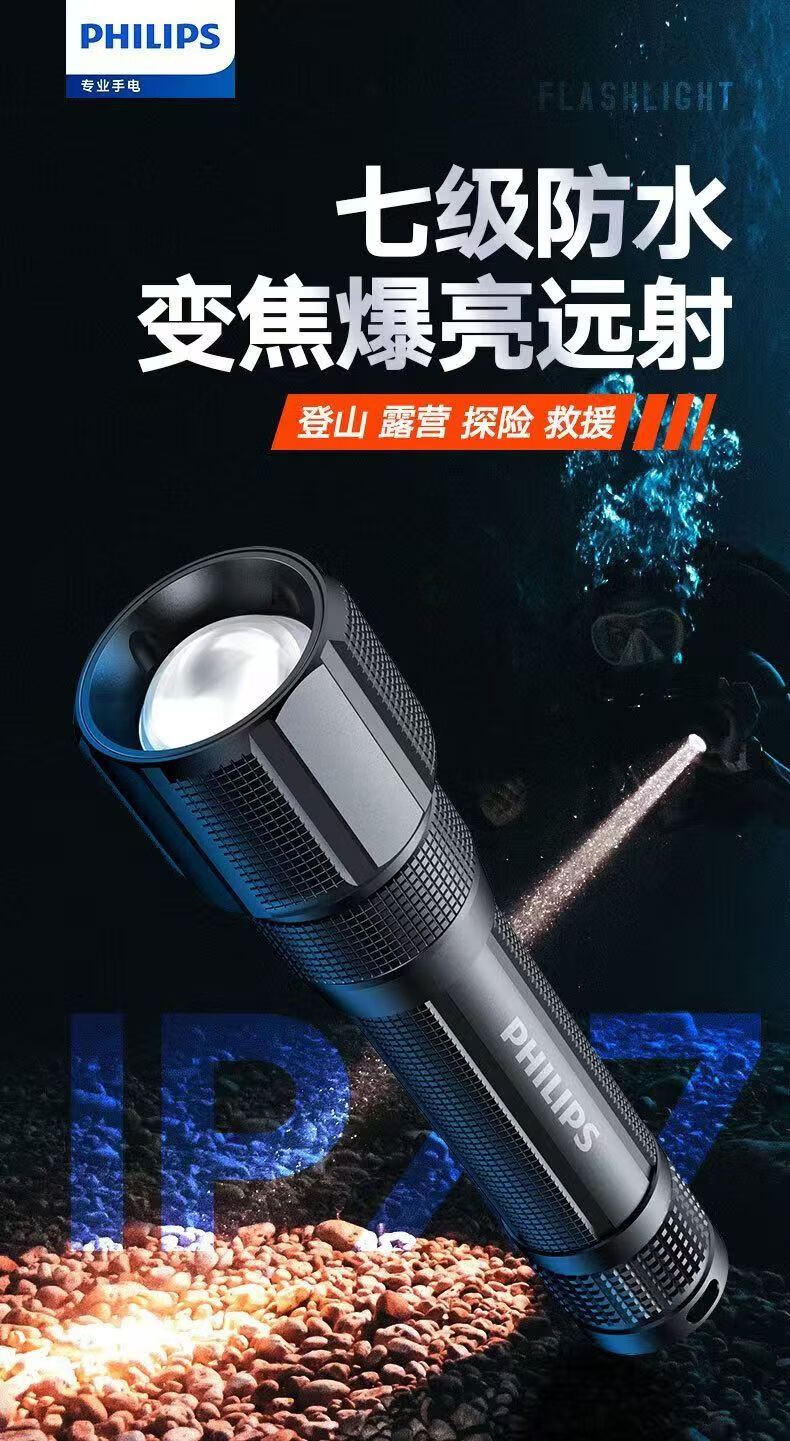 飞利浦(PHILIPS)手电筒强光远射变焦潜水高亮小型户外照明可拆电池应急灯SFL8166 10W/2000毫安/变焦/SFL8166