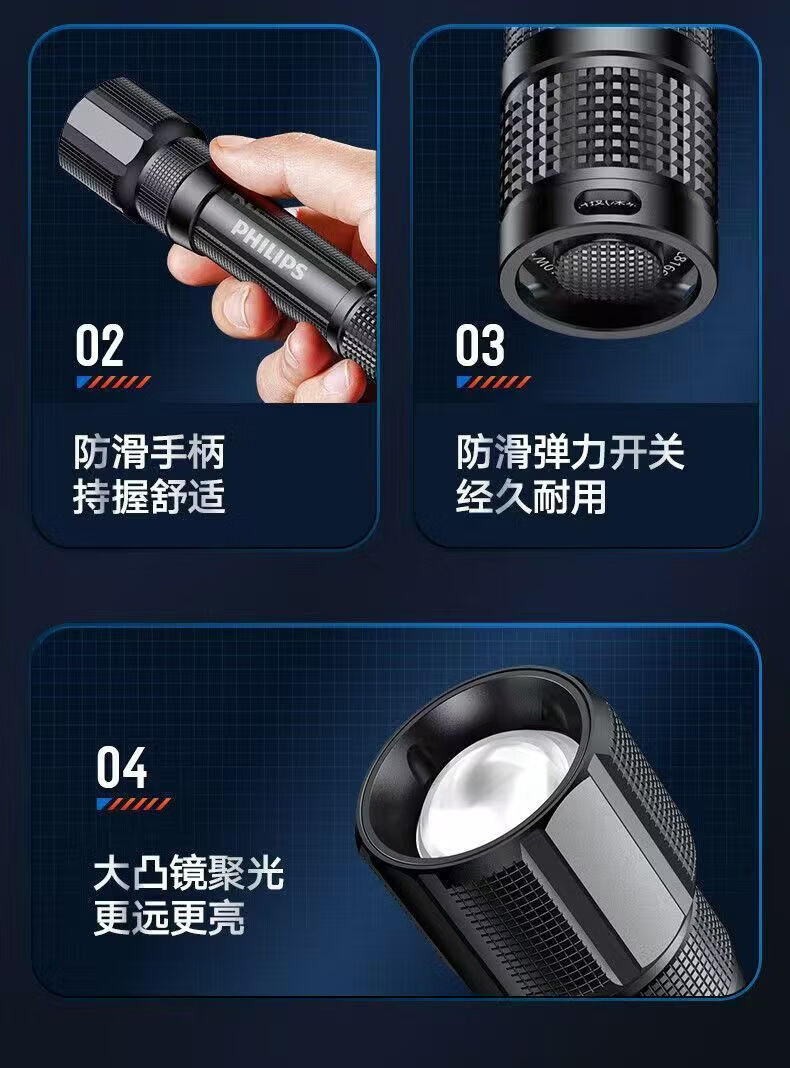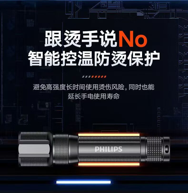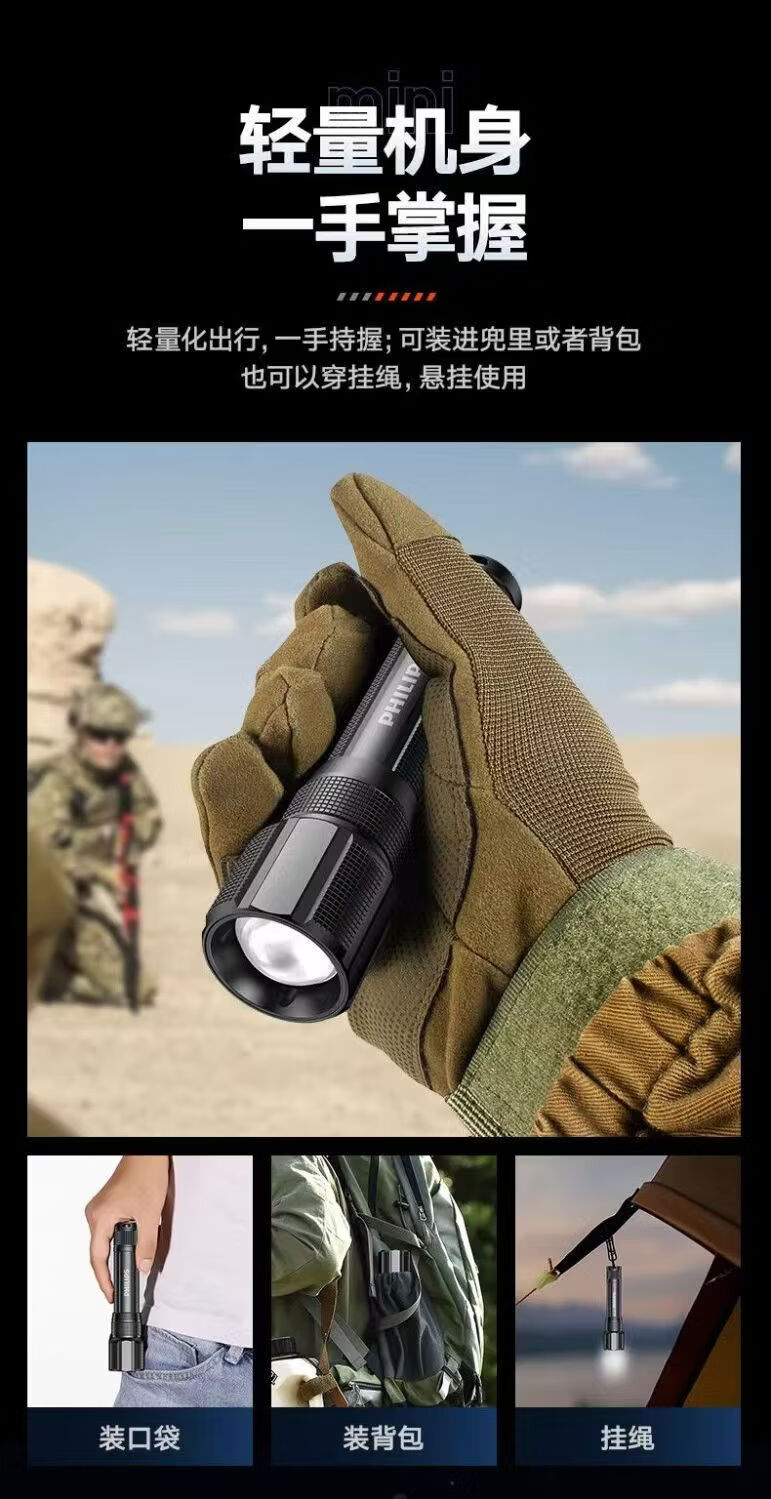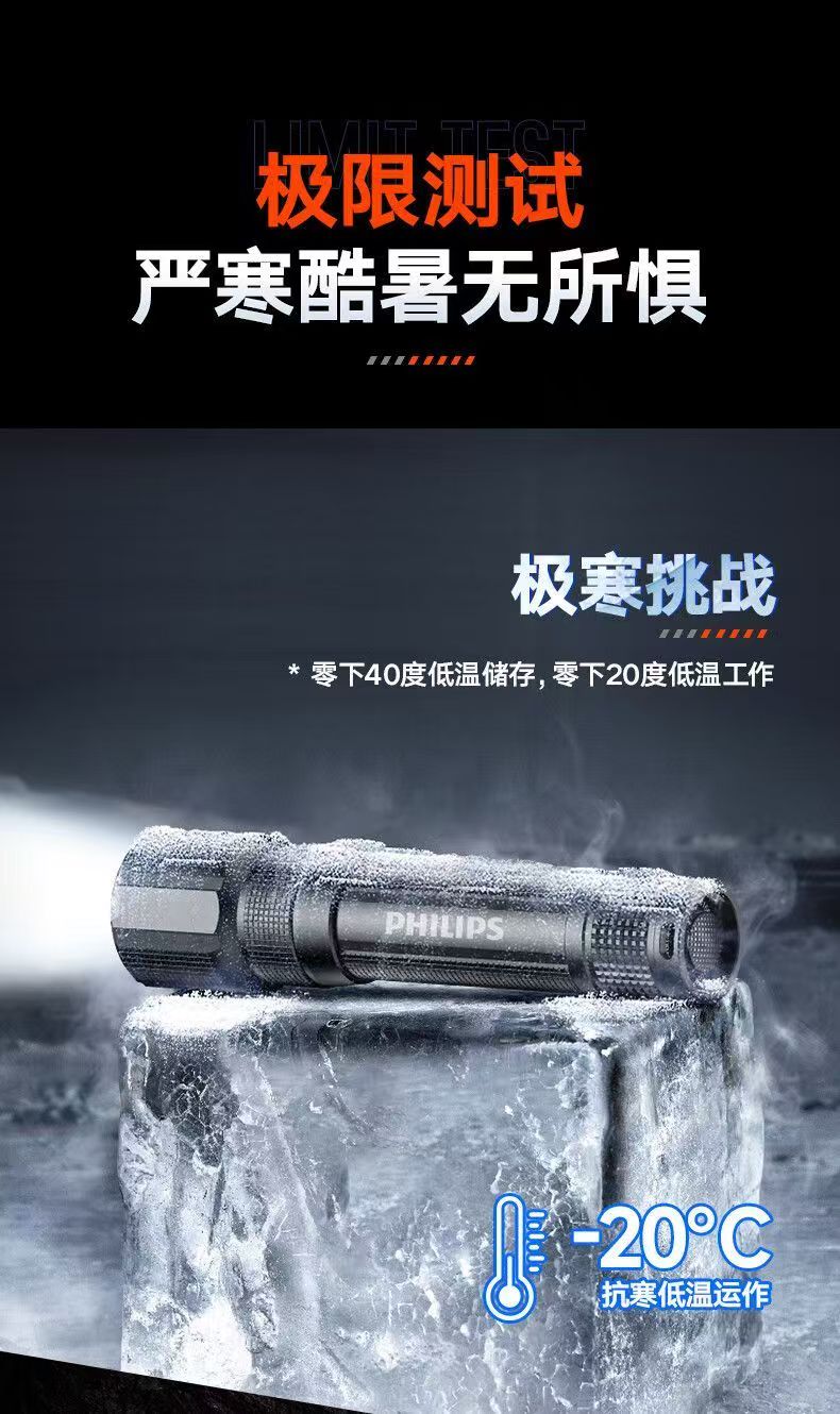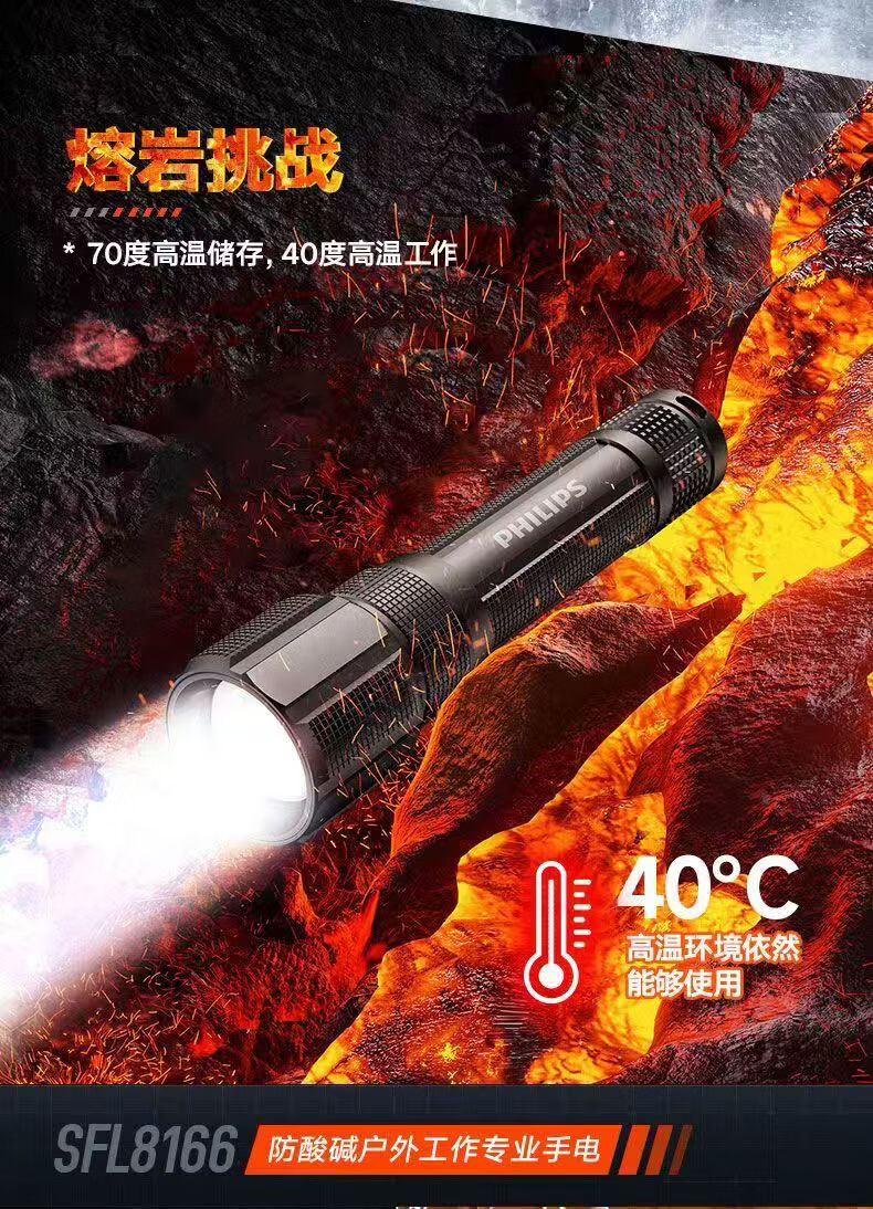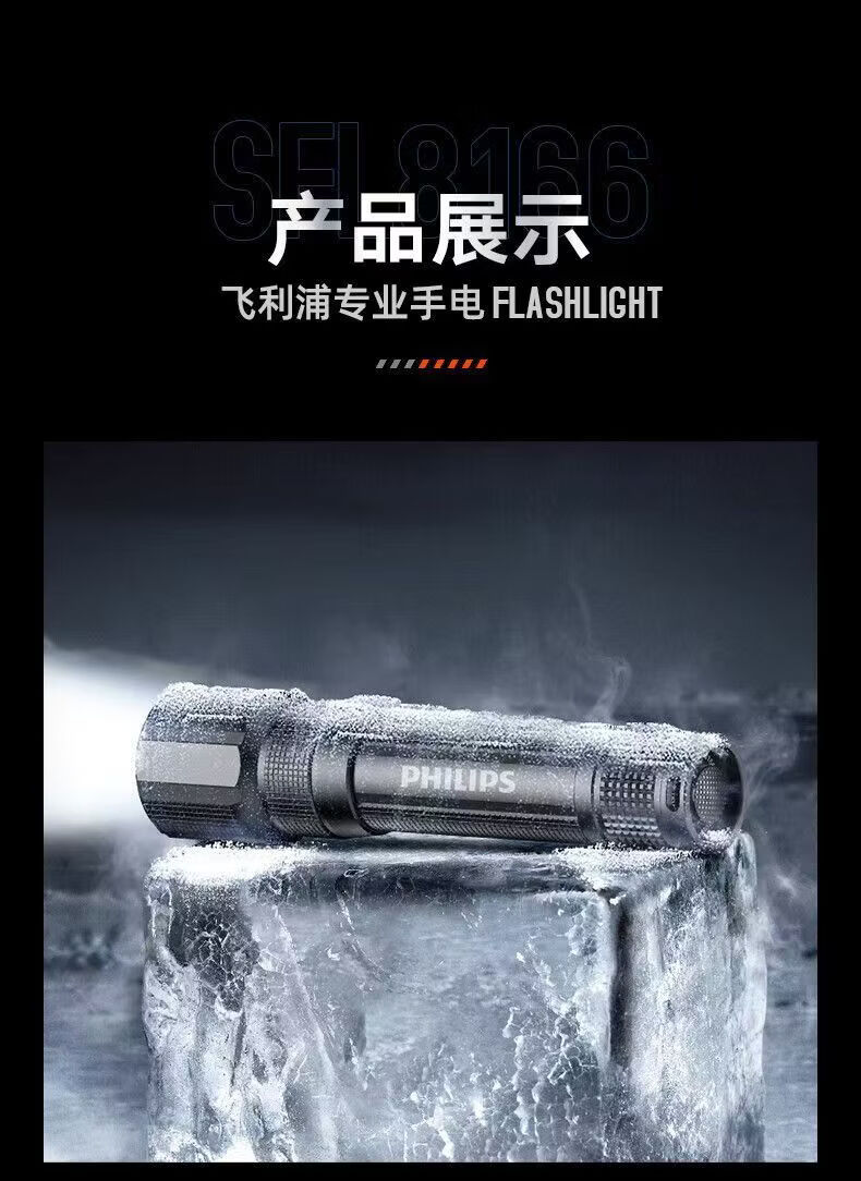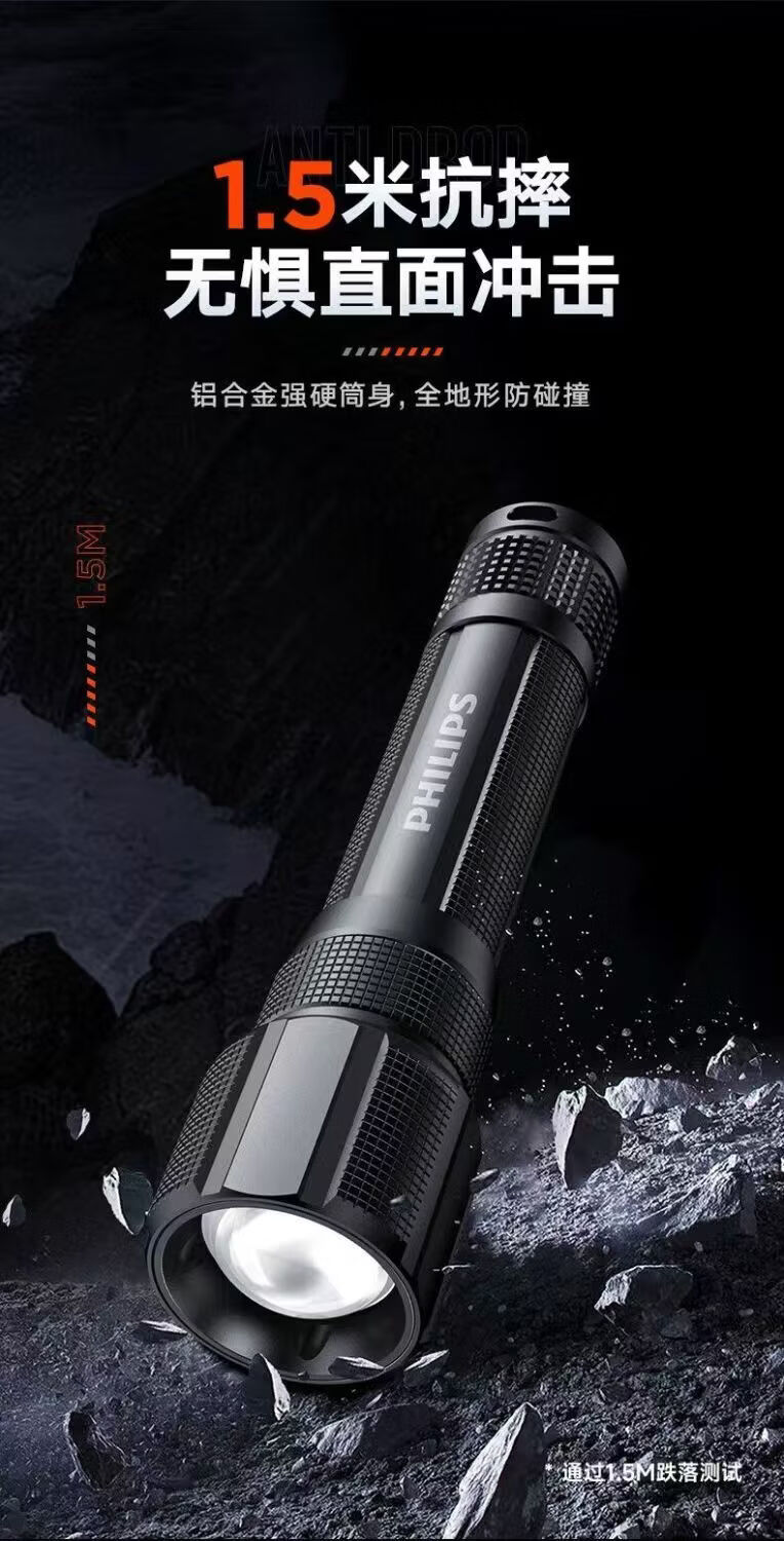 飞利浦(PHILIPS)手电筒强光远射变焦潜水高亮小型户外照明可拆电池应急灯SFL8166 10W/2000毫安/变焦/SFL8166