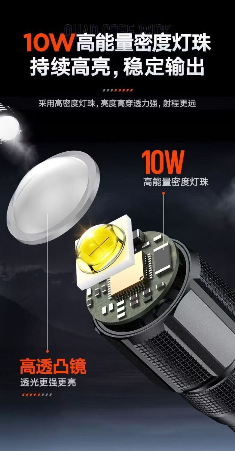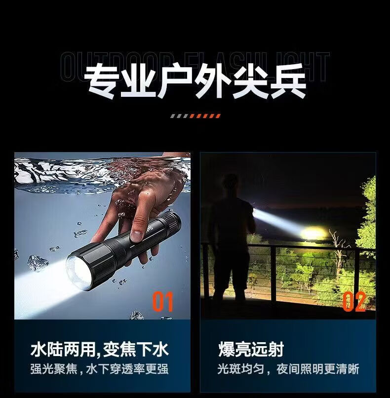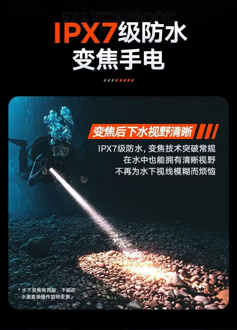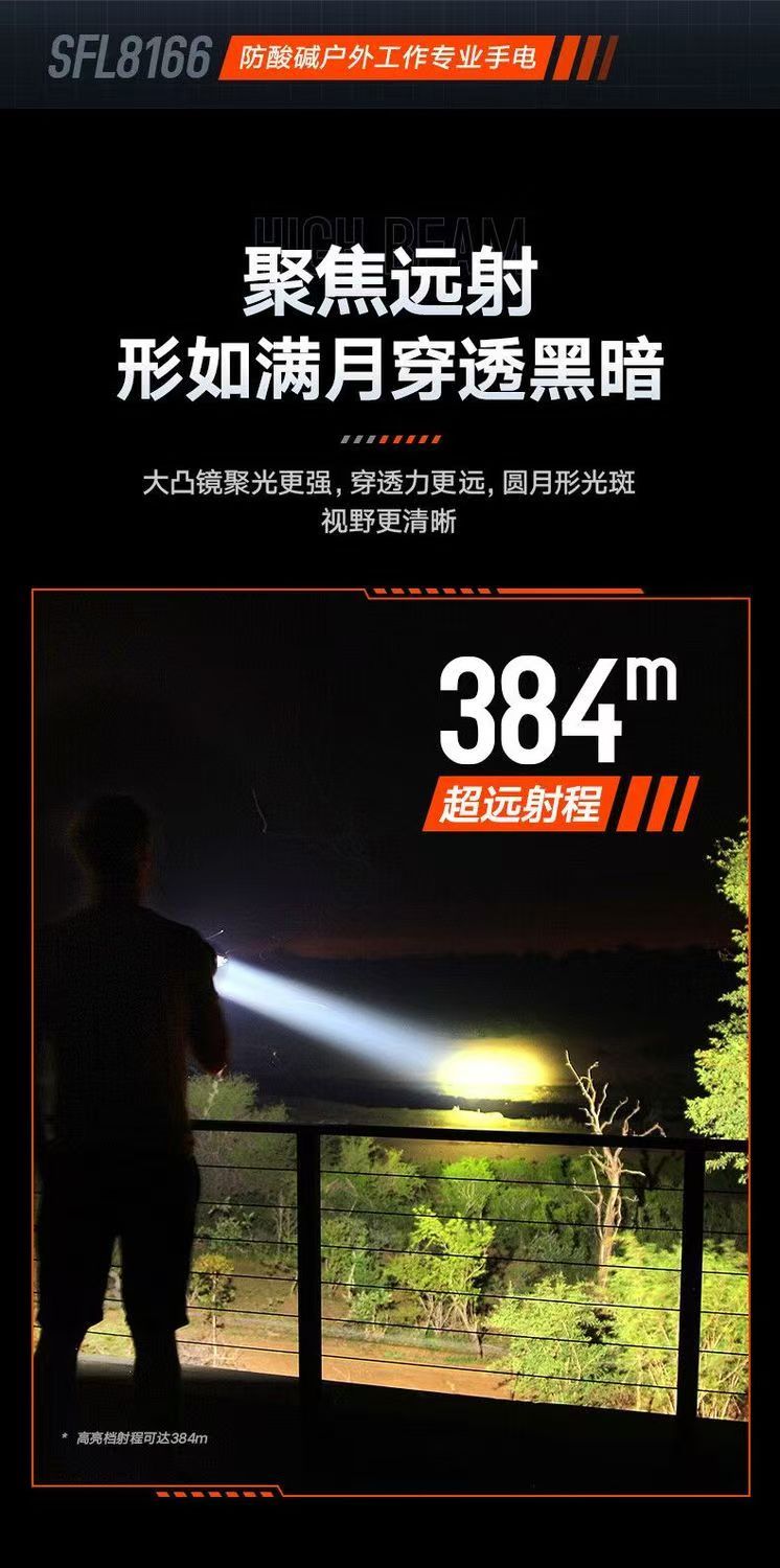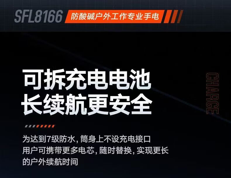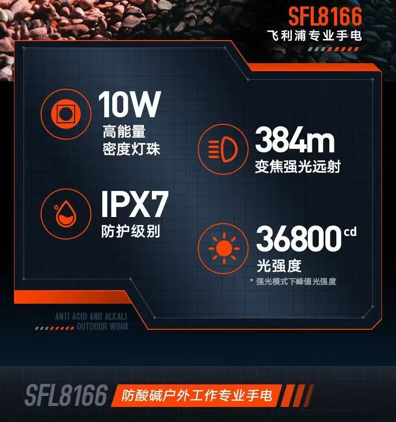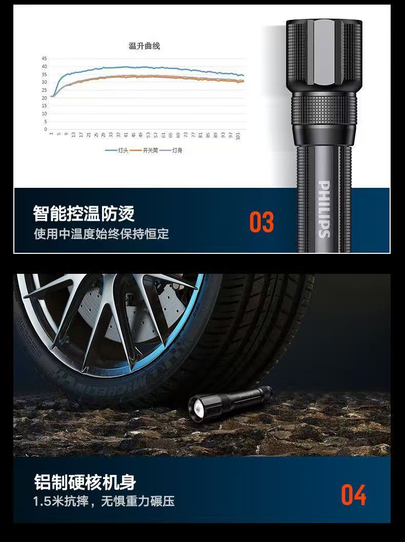 飞利浦(PHILIPS)手电筒强光远射变焦潜水高亮小型户外照明可拆电池应急灯SFL8166 10W/2000毫安/变焦/SFL8166