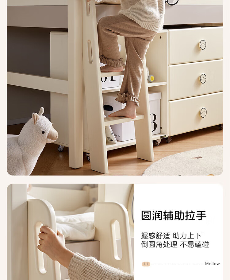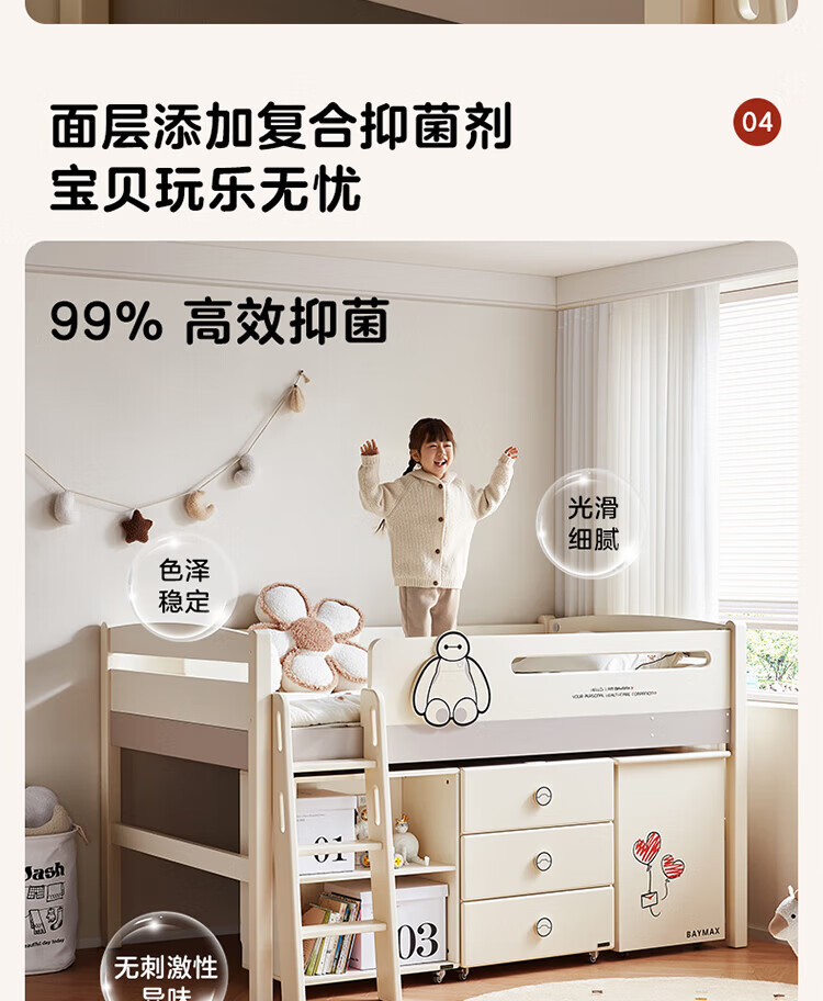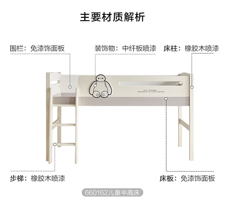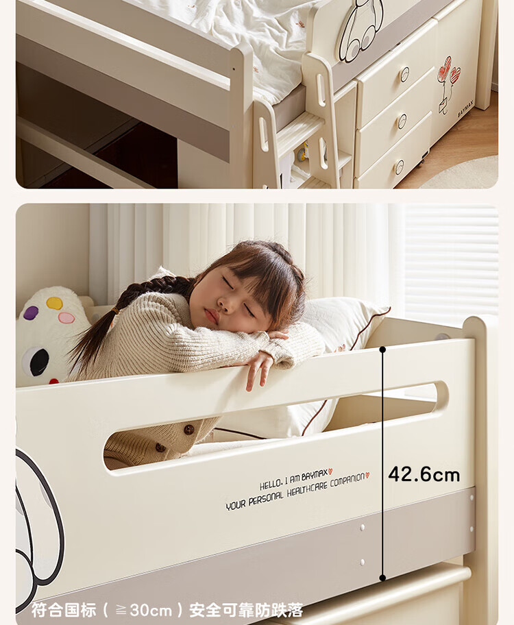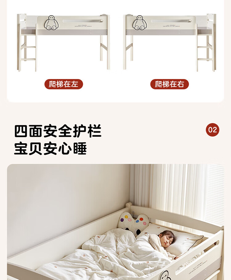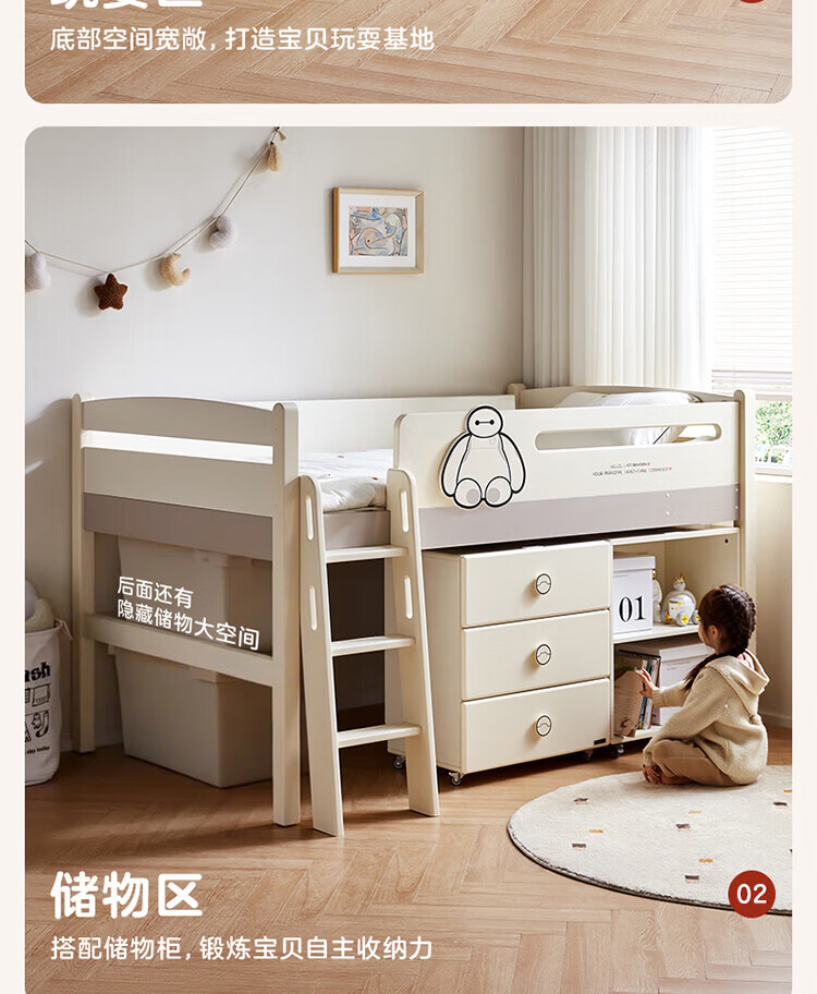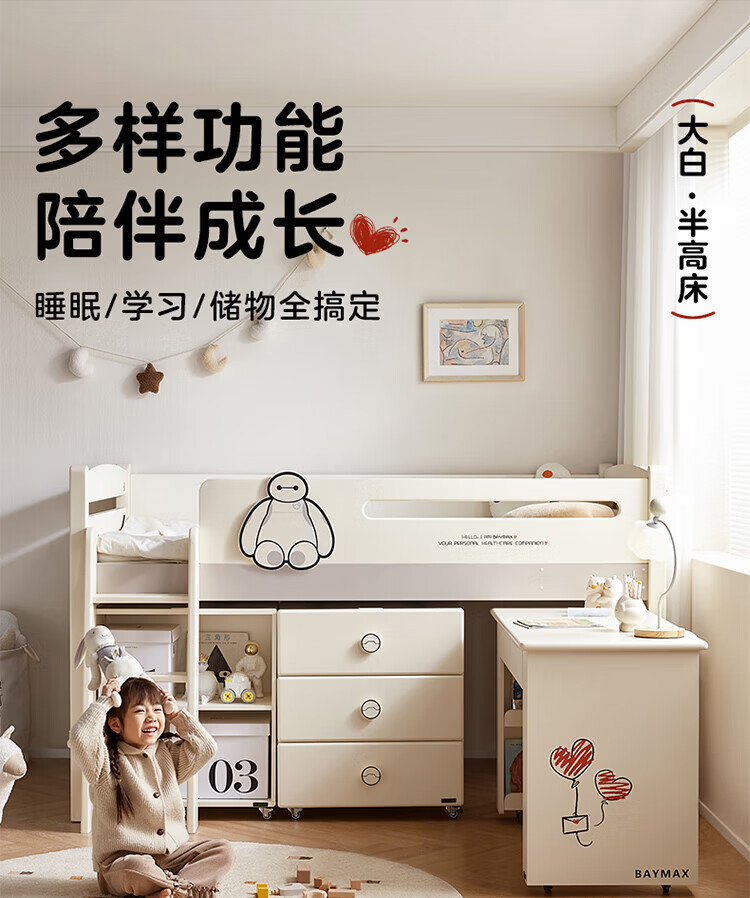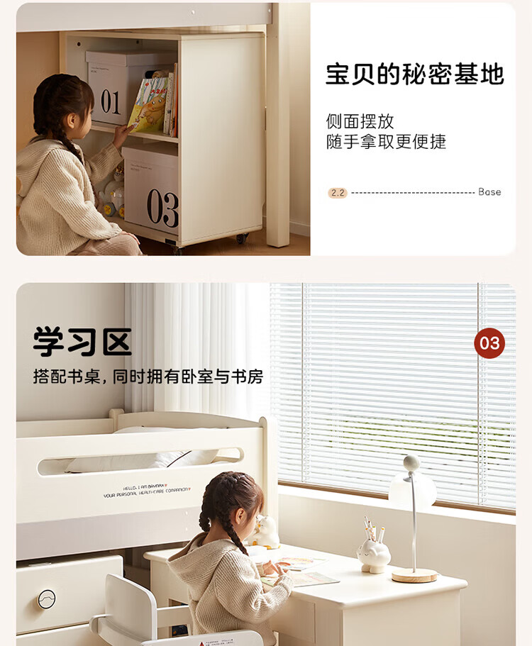 全友家居儿童半高床家用学生单人床带护栏卧室书桌储物柜子 大白半高床