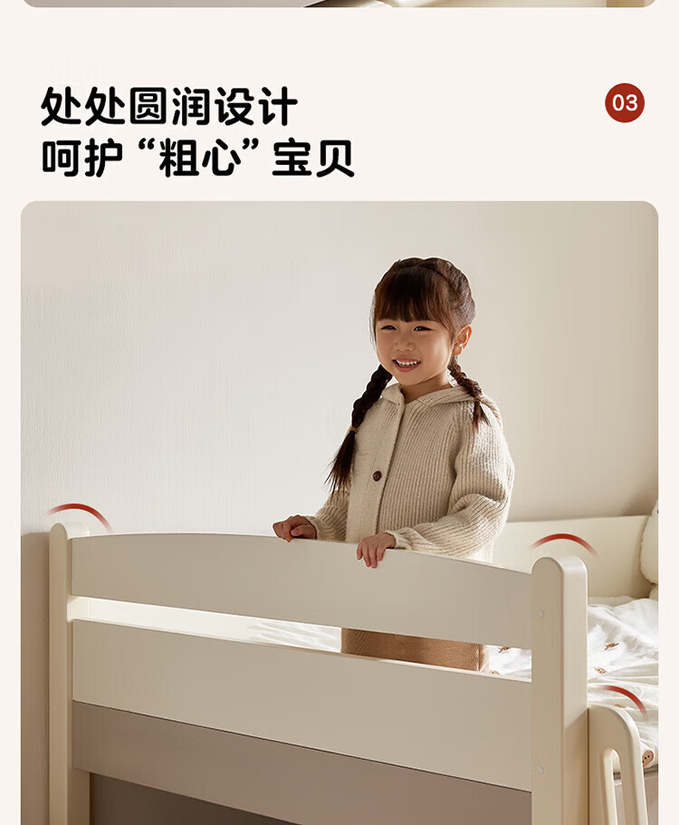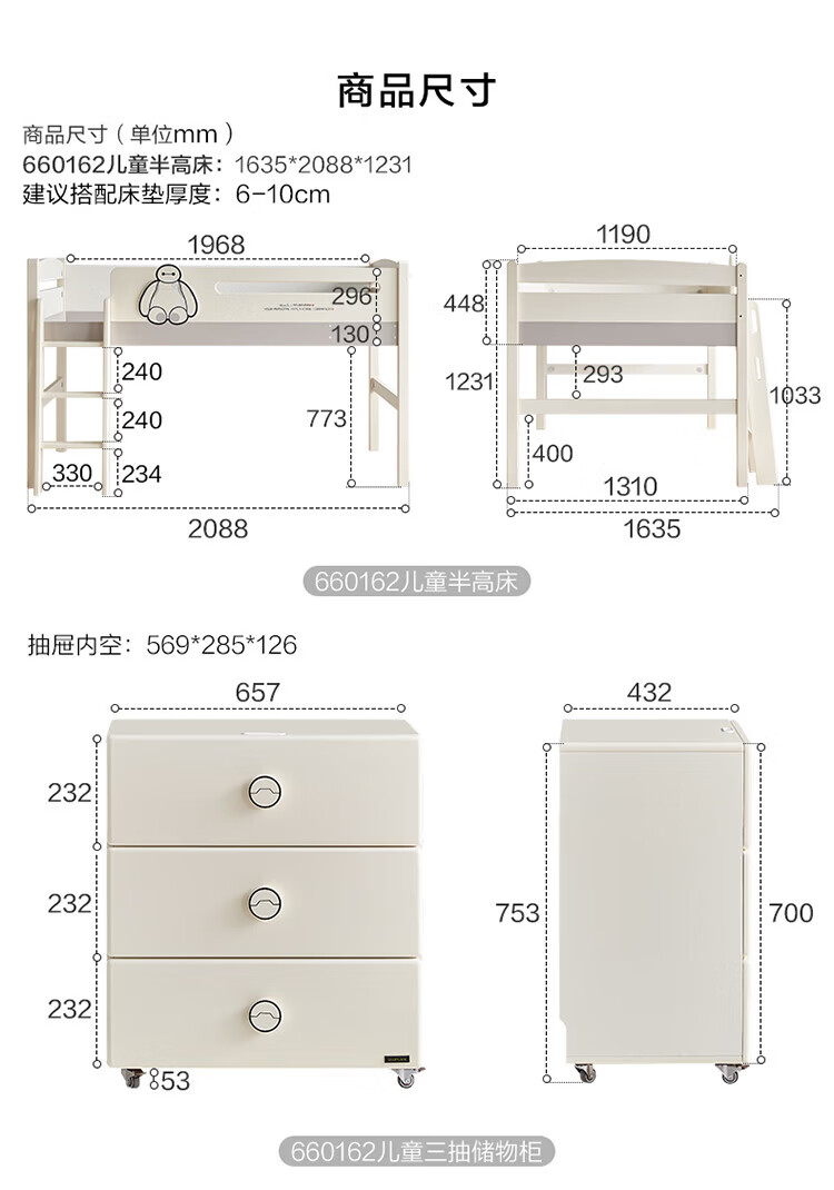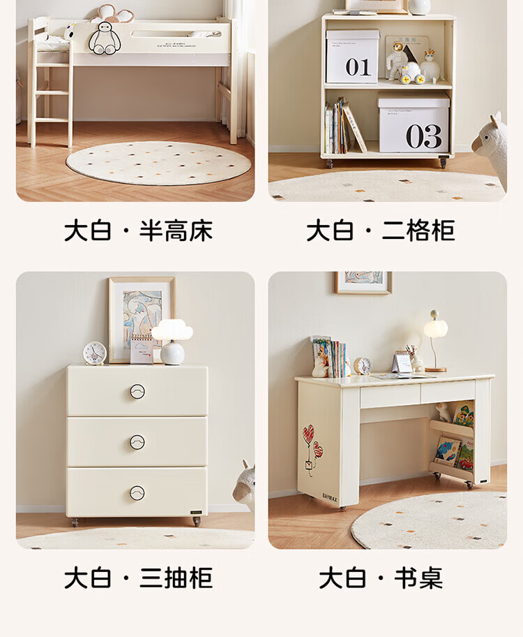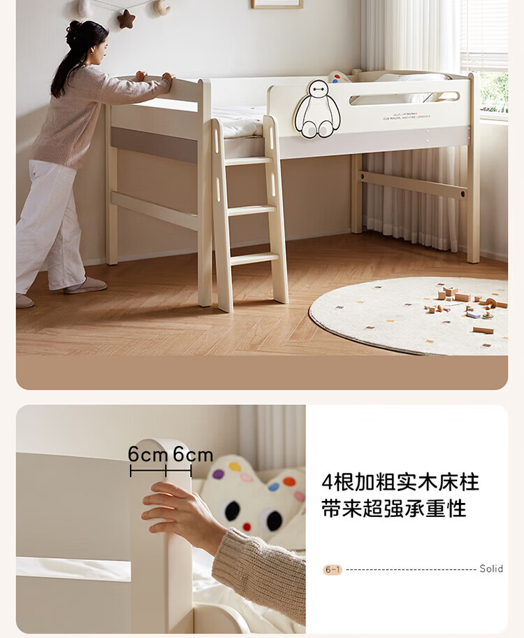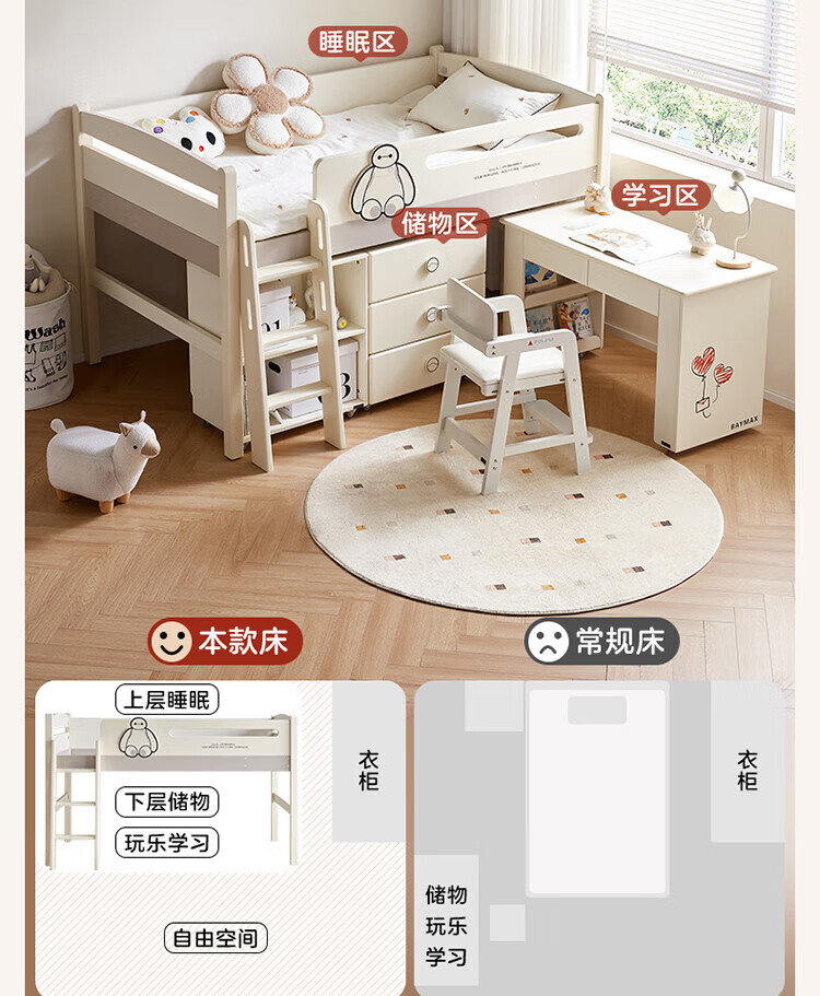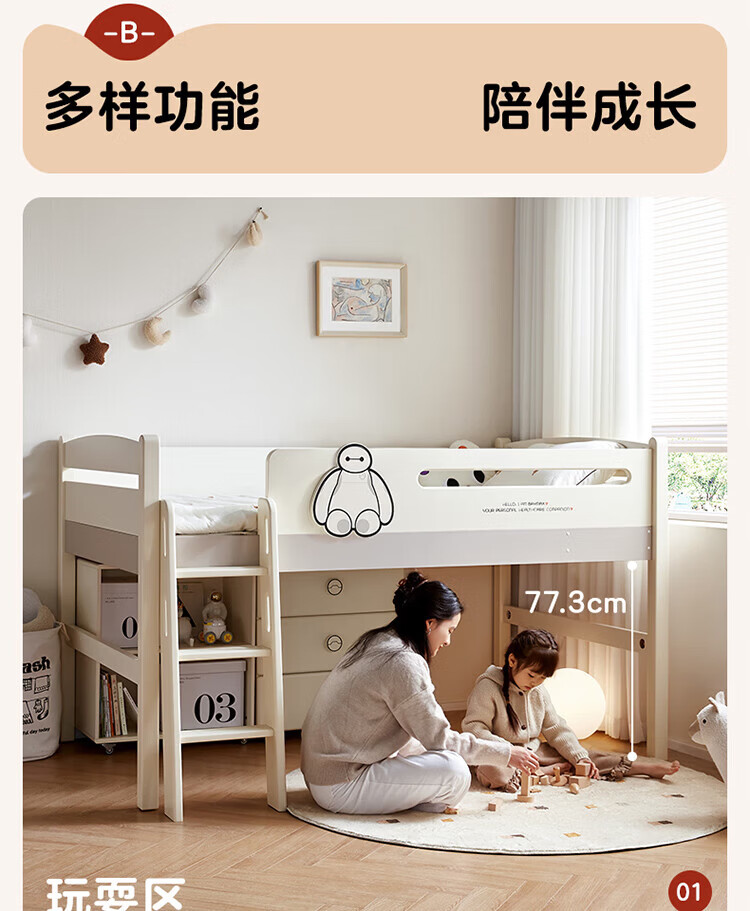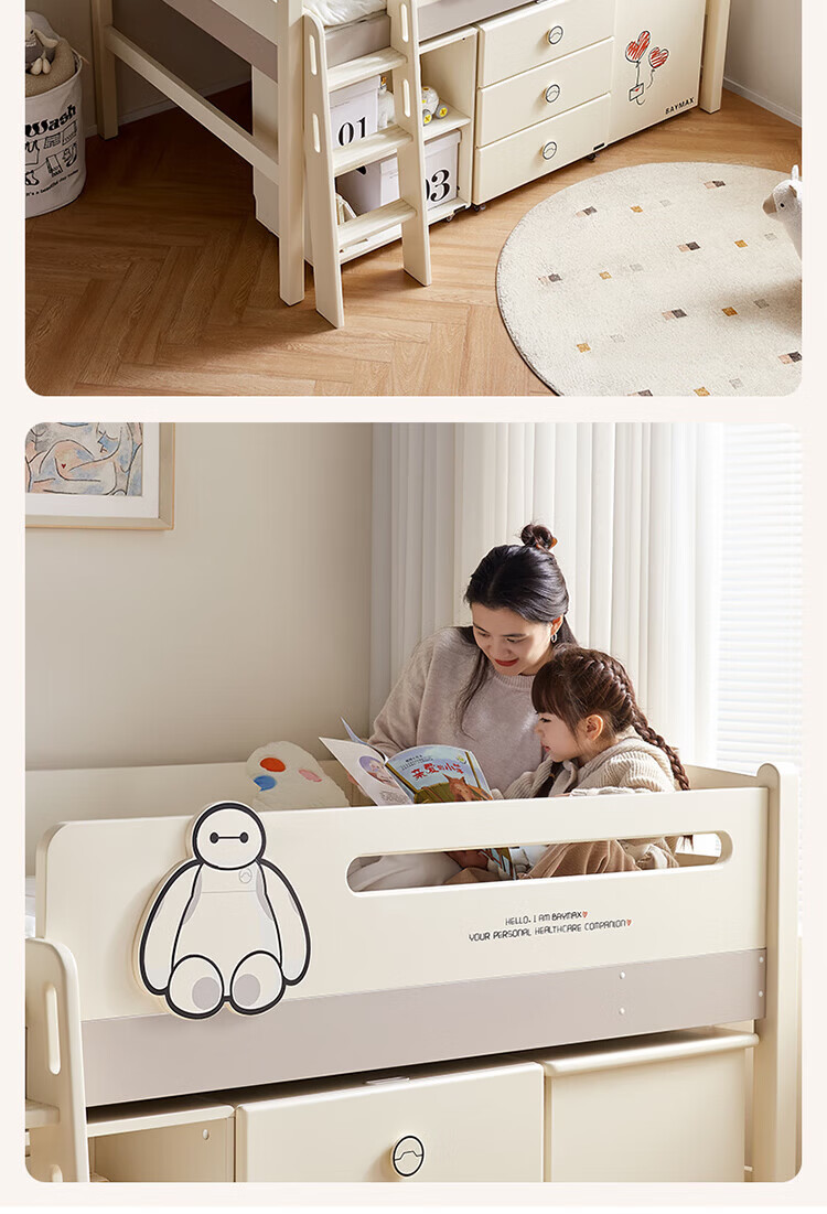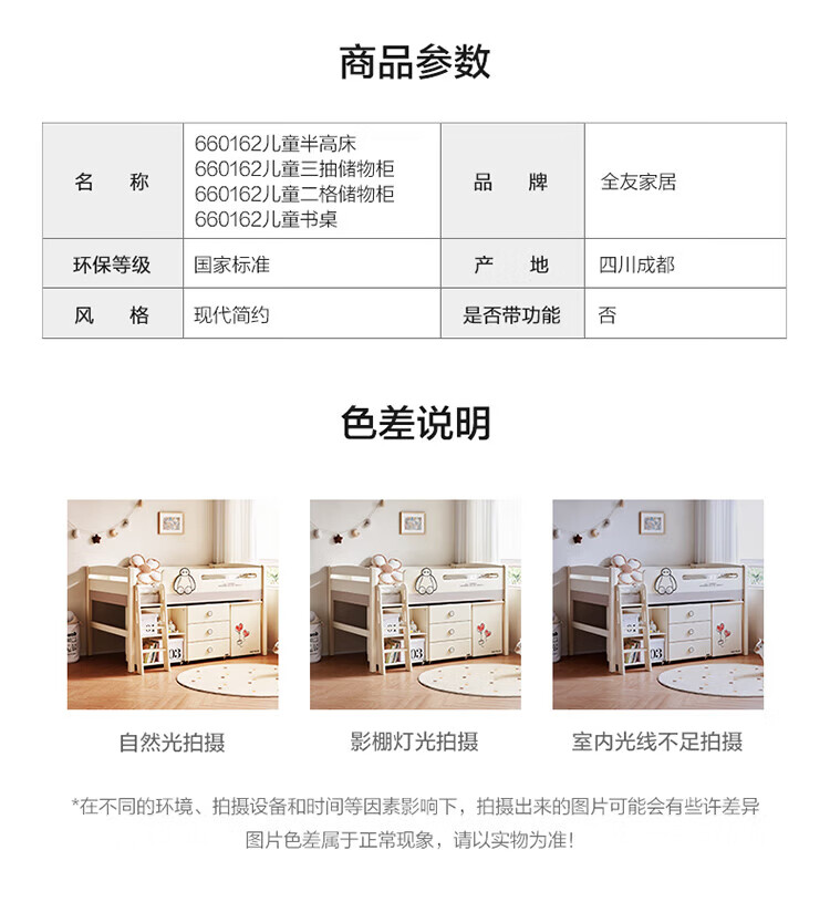 全友家居儿童半高床家用学生单人床带护栏卧室书桌储物柜子 大白半高床