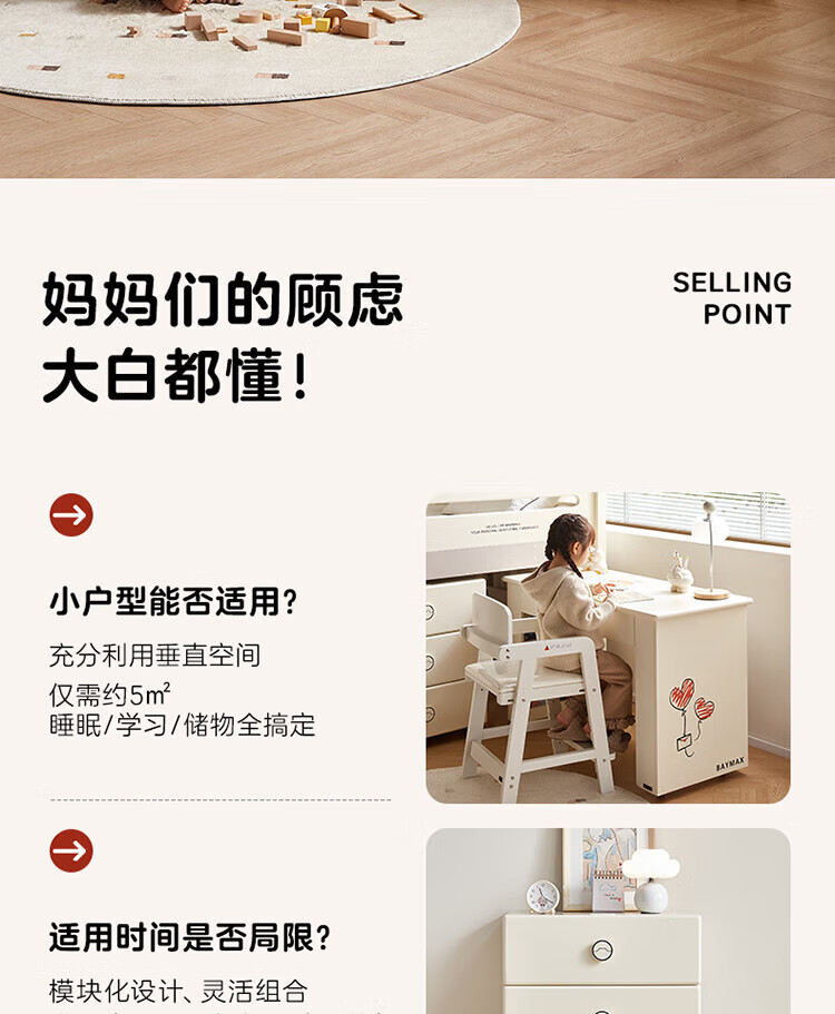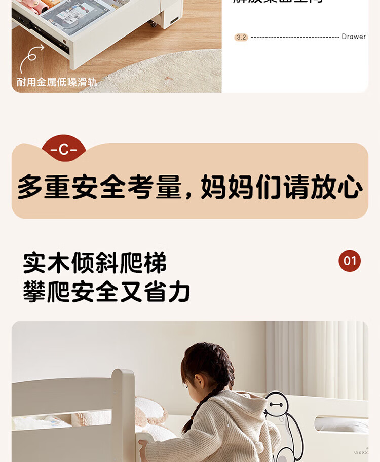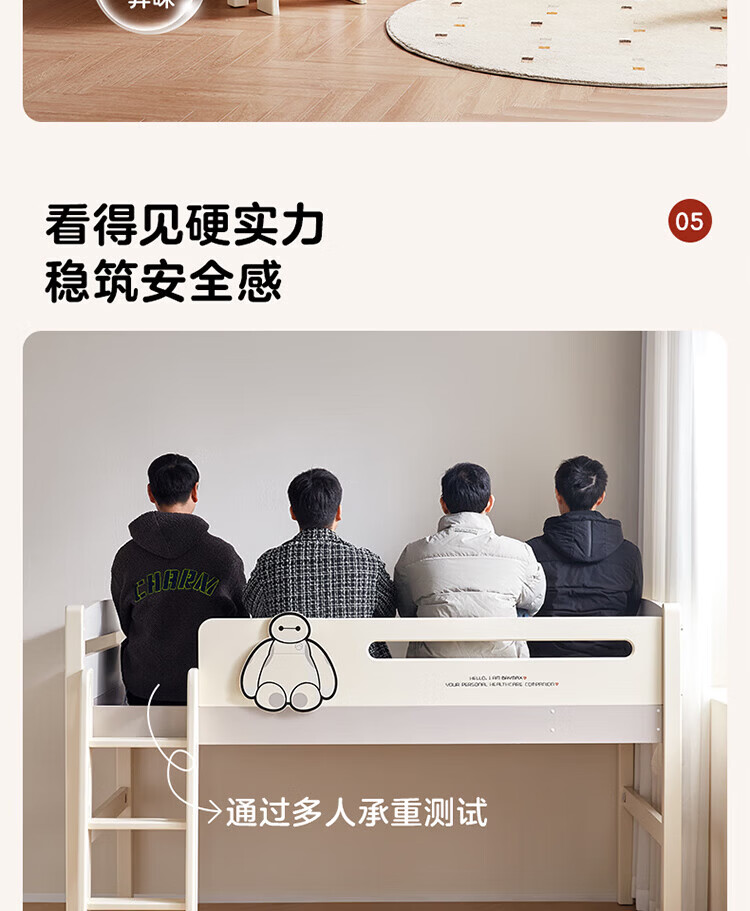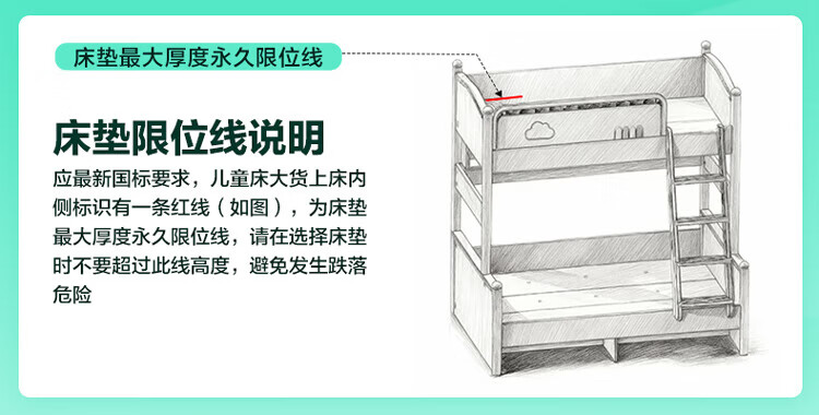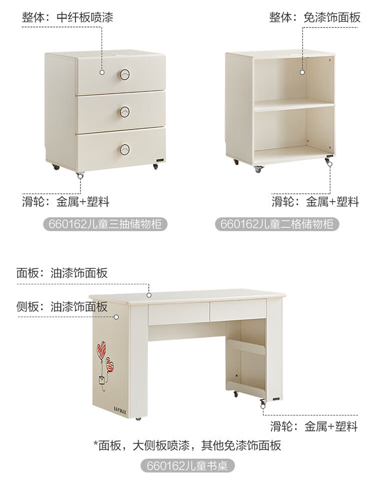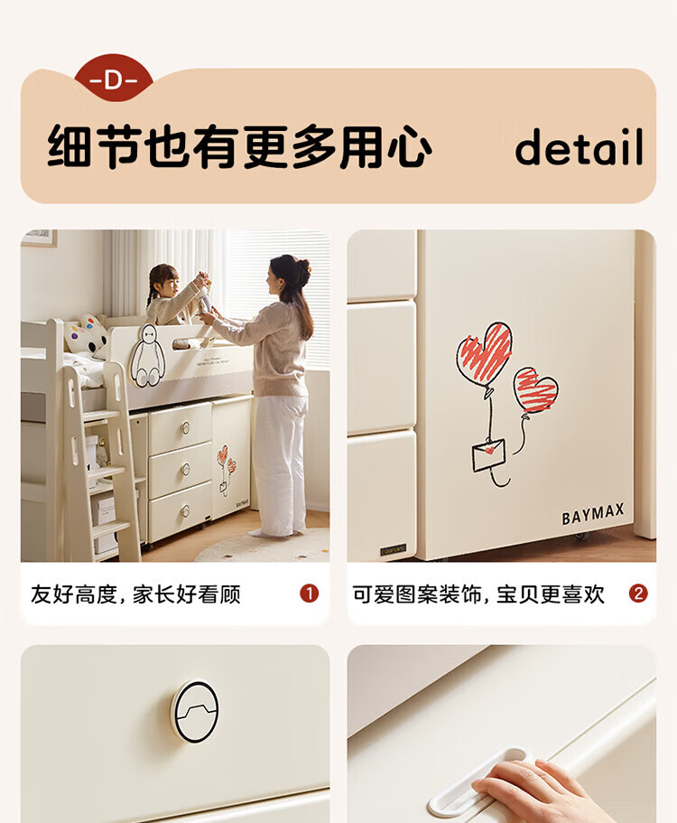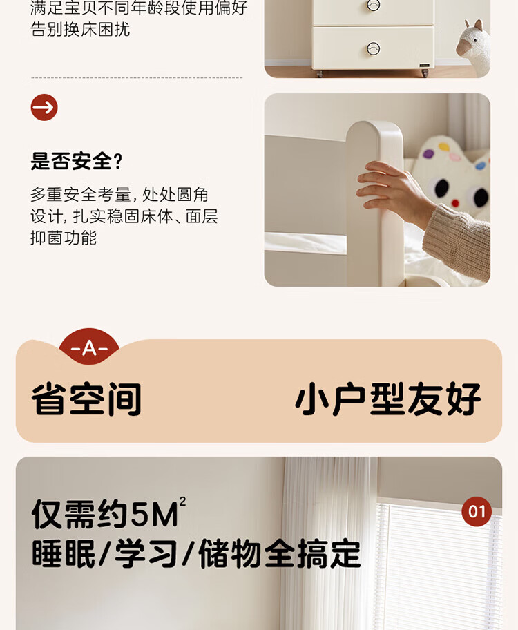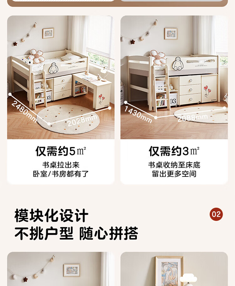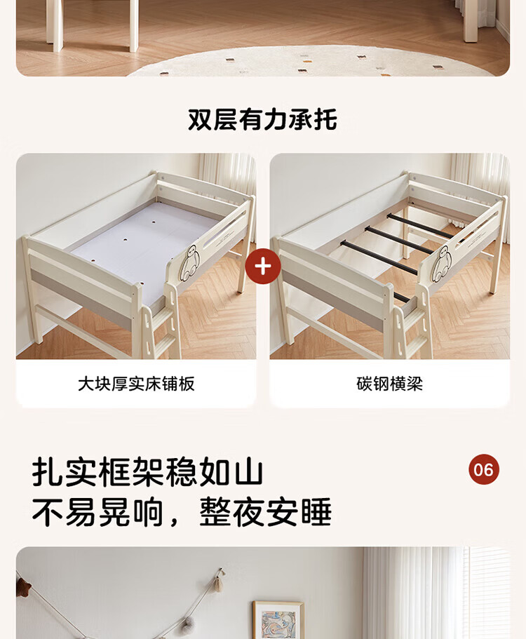 全友家居儿童半高床家用学生单人床带护栏卧室书桌储物柜子 大白半高床