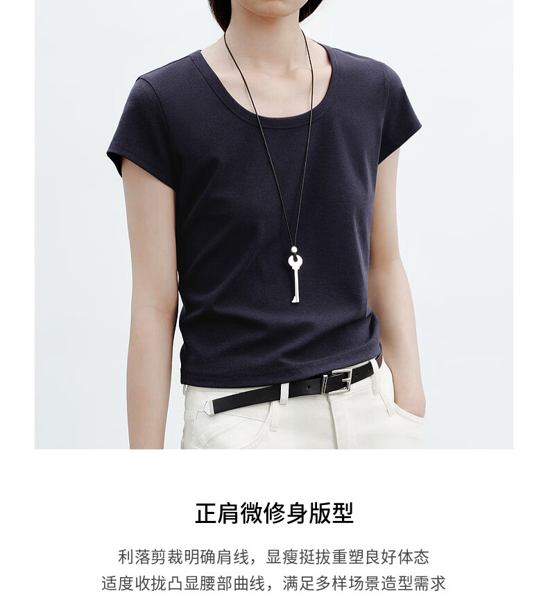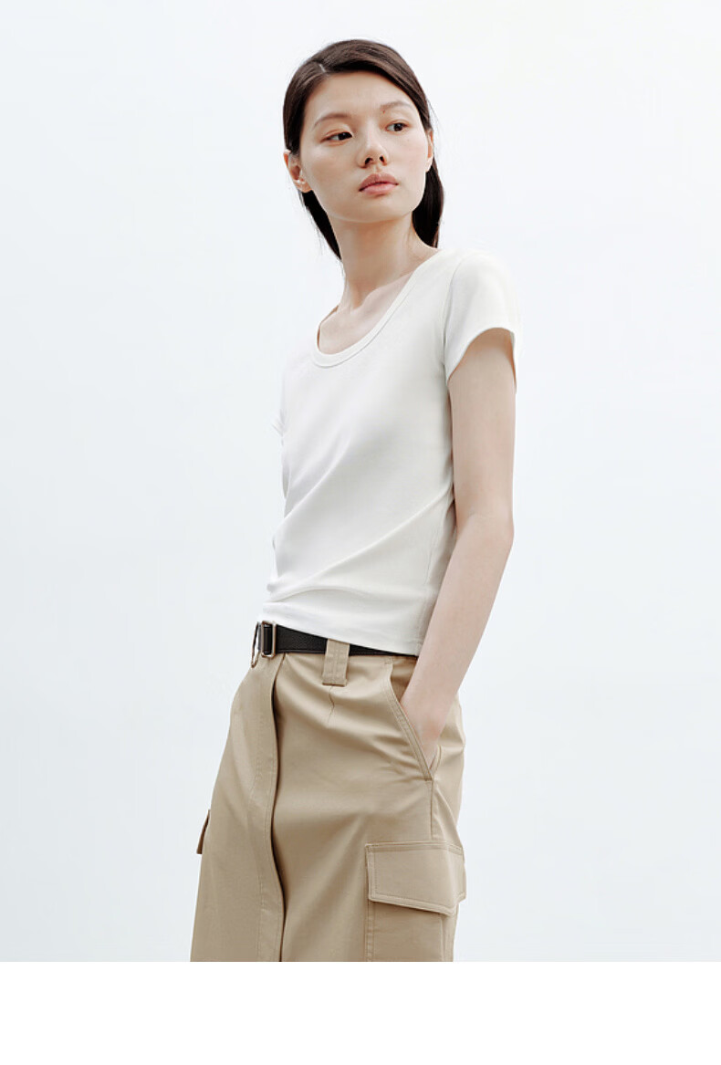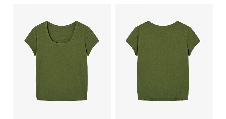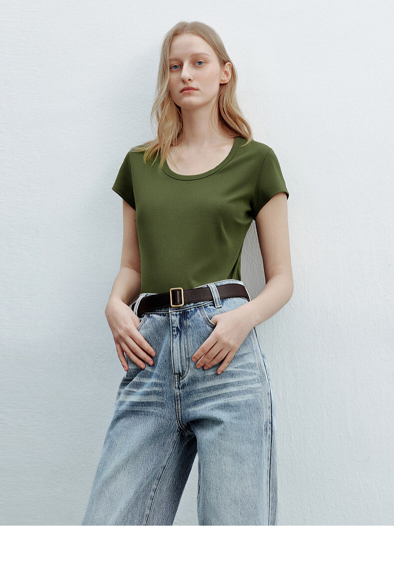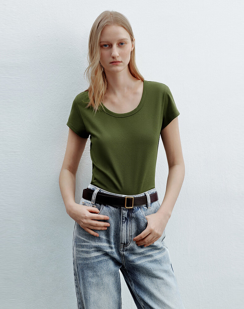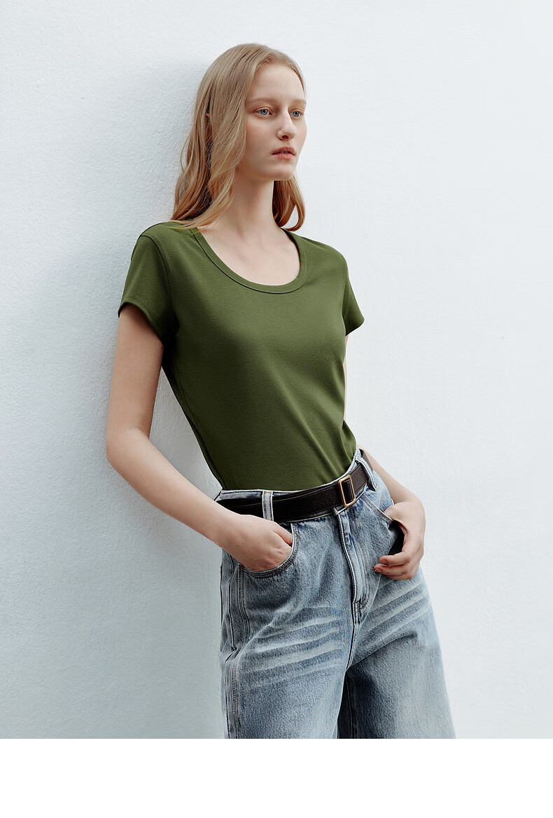 H's白色正肩小飞袖T恤女26年夏季新款高级感修身短袖上衣打底衫 橄榄绿 M