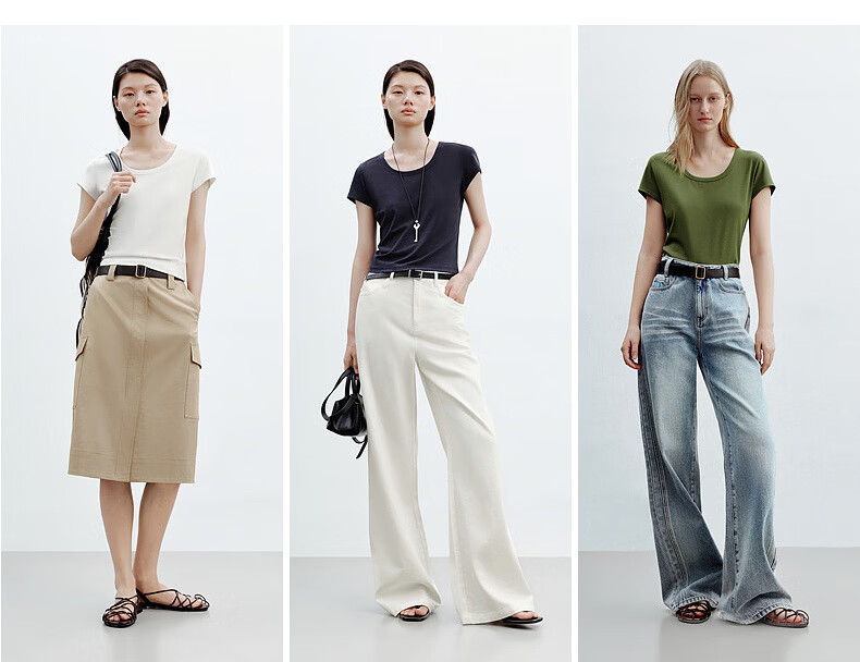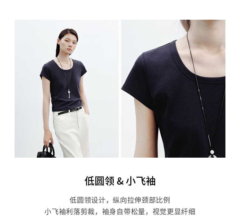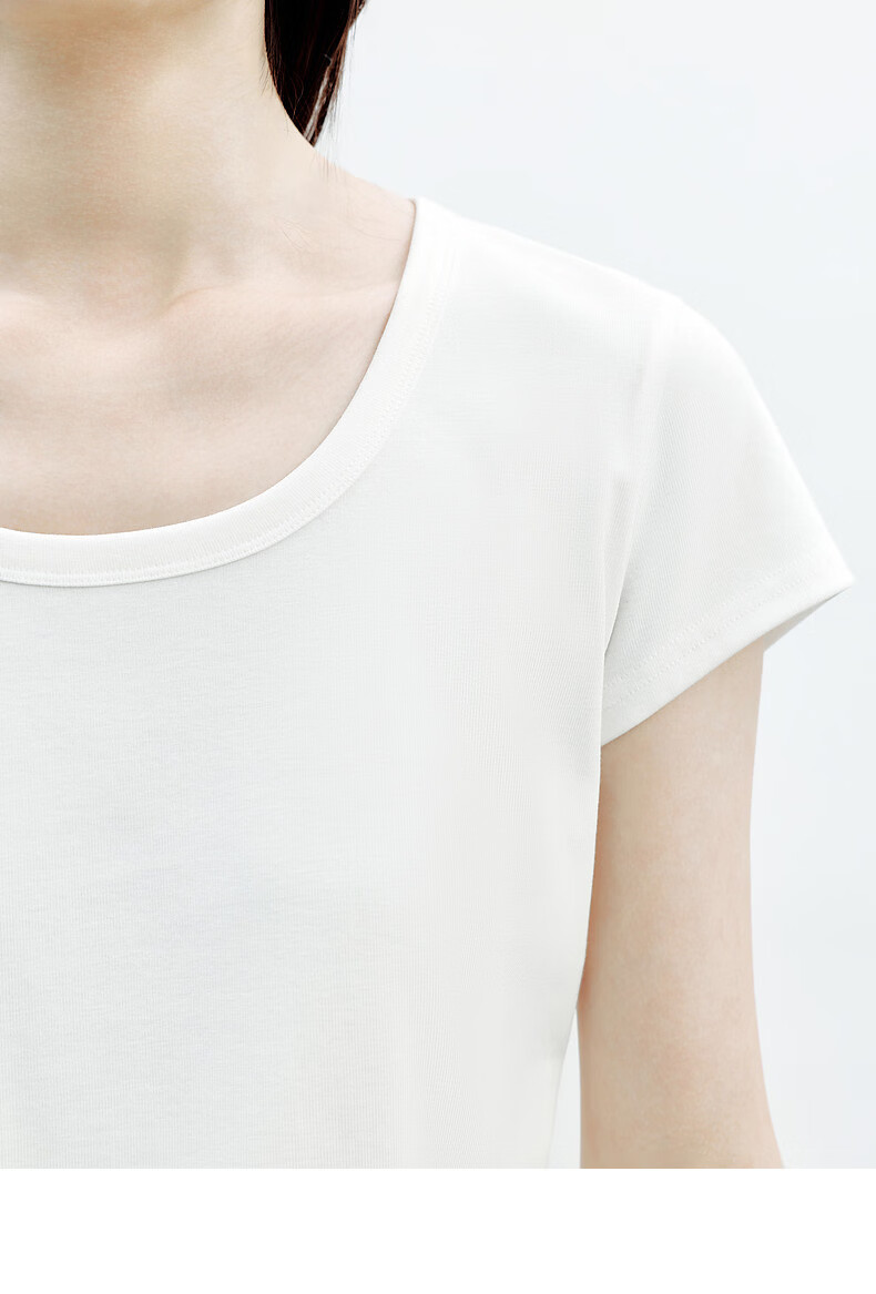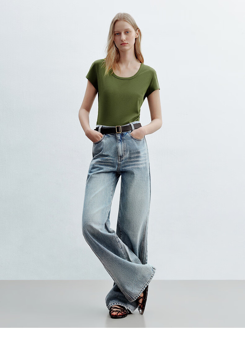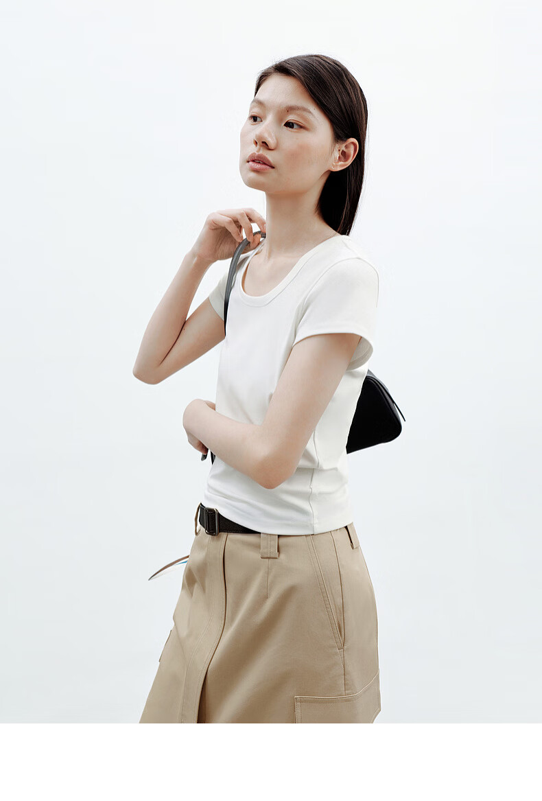 H's白色正肩小飞袖T恤女26年夏季新款高级感修身短袖上衣打底衫 橄榄绿 M