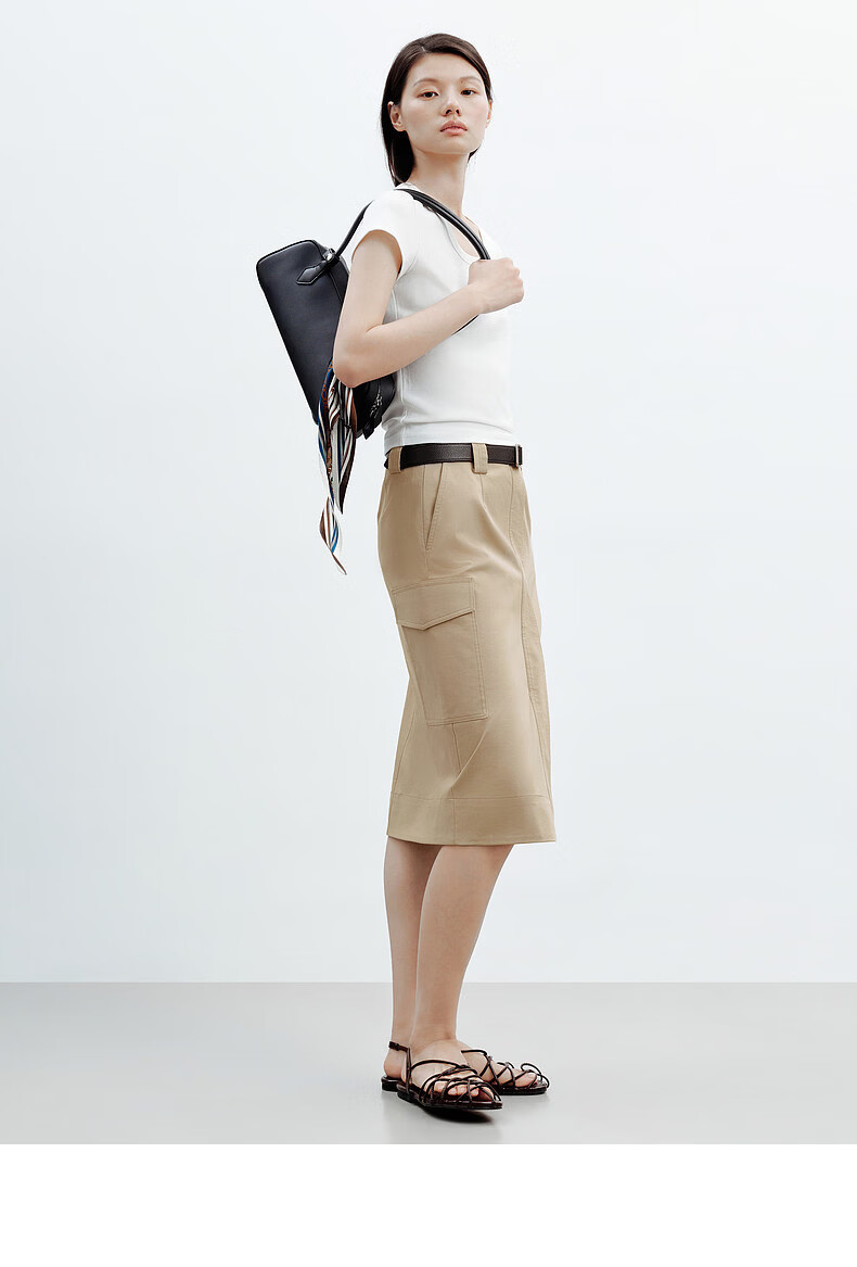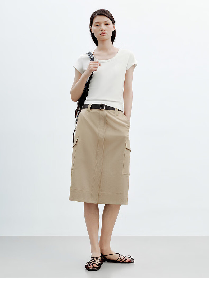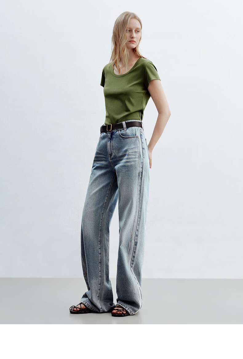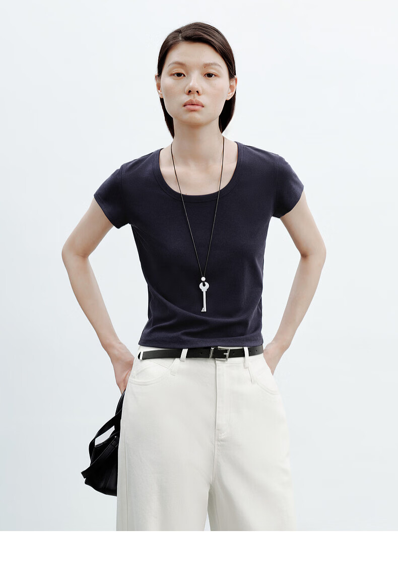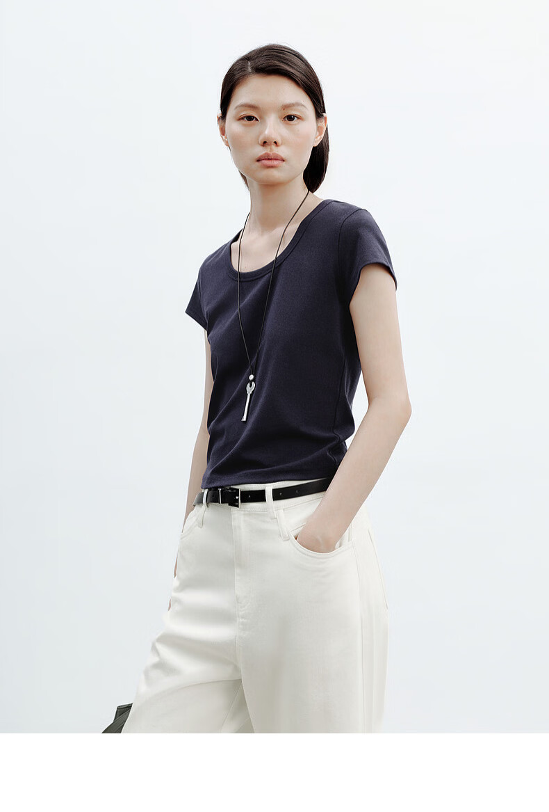 H's白色正肩小飞袖T恤女26年夏季新款高级感修身短袖上衣打底衫 橄榄绿 M
