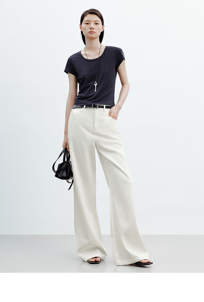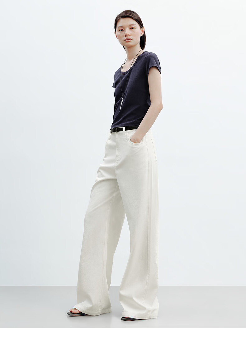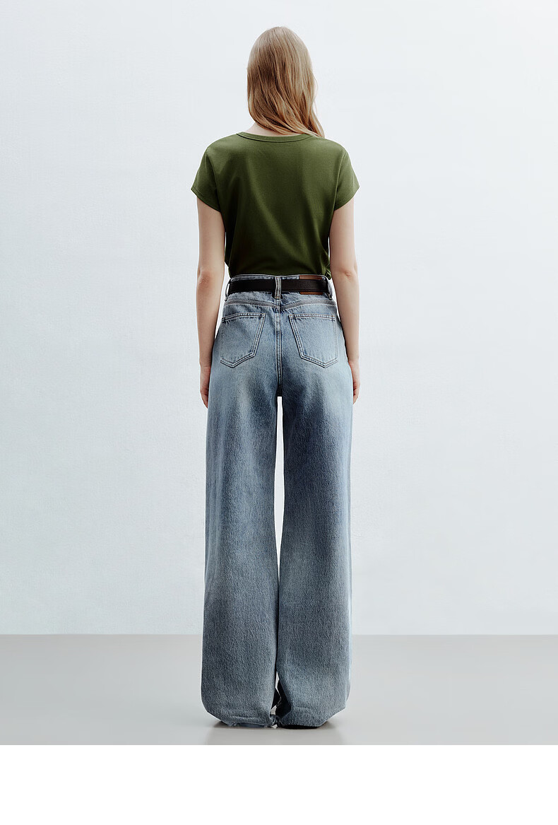 森马(Semir)牛仔裤女夏半松紧腰纯棉宽松阔腿裤腰带显瘦高街长裤103325124014