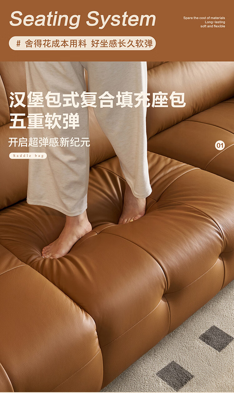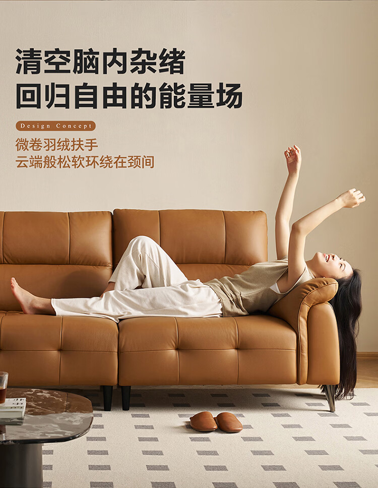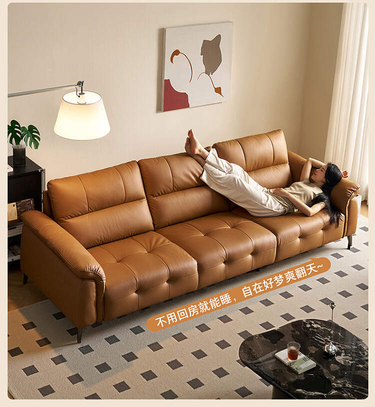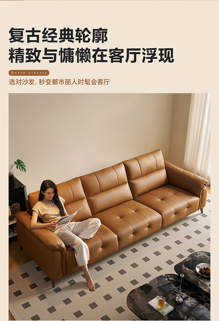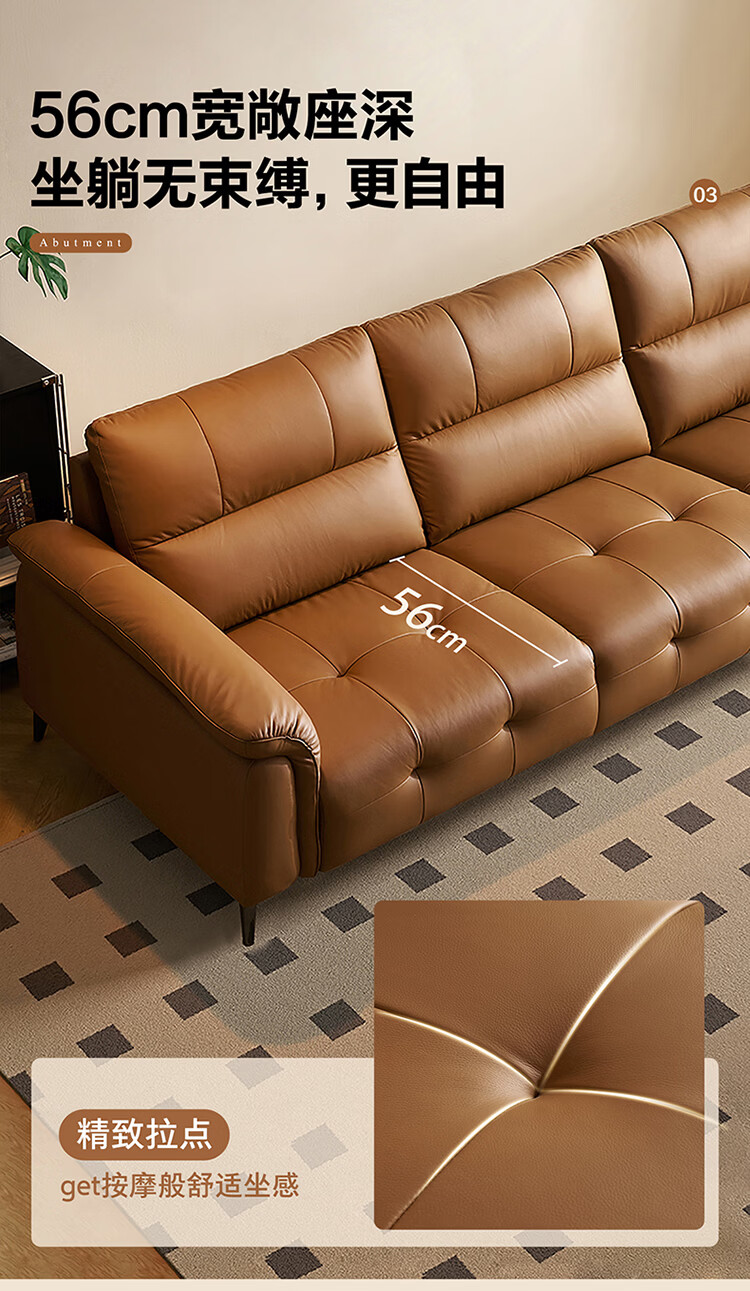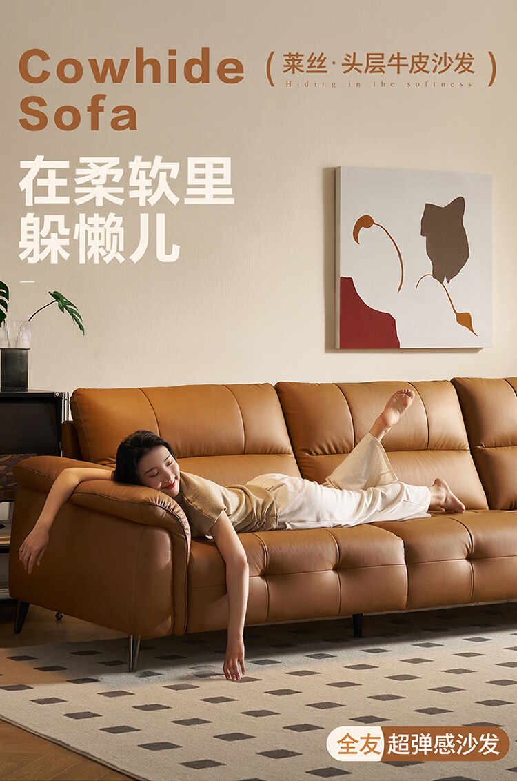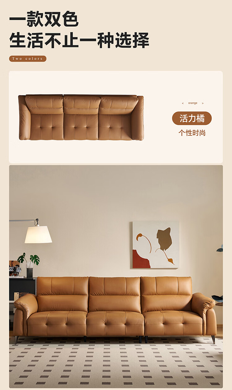 全友家居现代简约真皮沙发客厅轻奢高级感2026新款头层牛皮直排式沙发 【活力橘|牛皮】2.82m沙发+脚凳