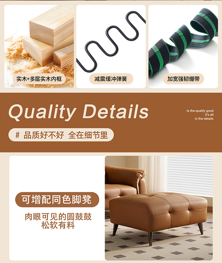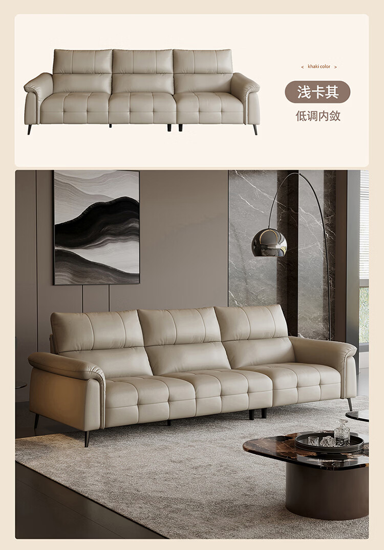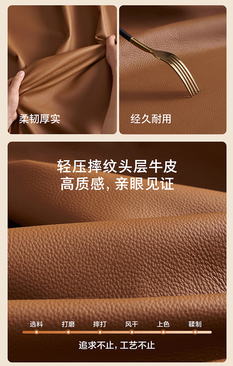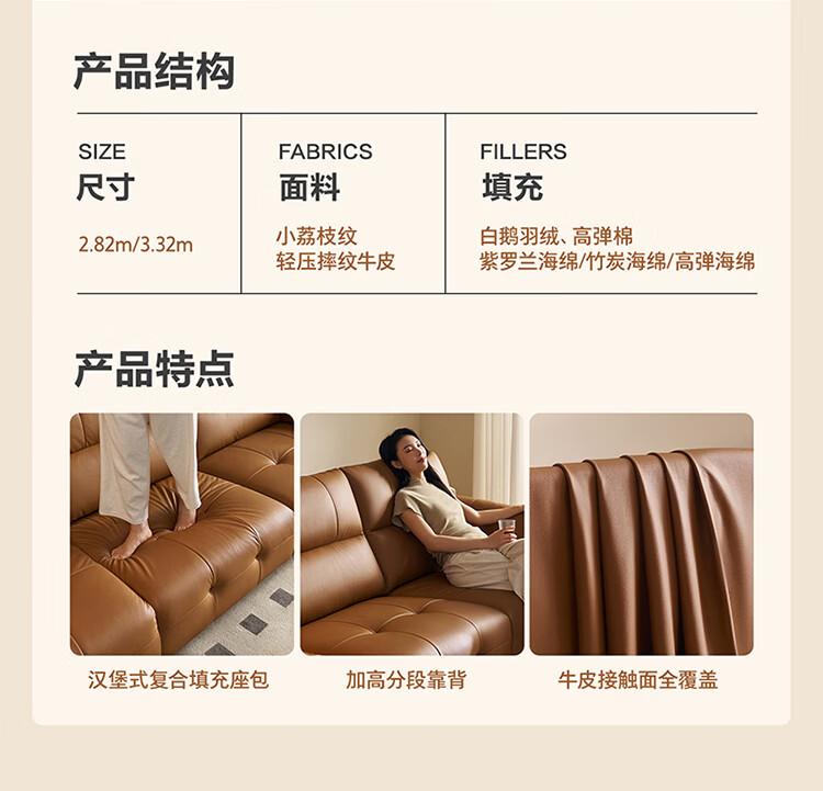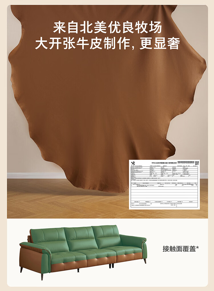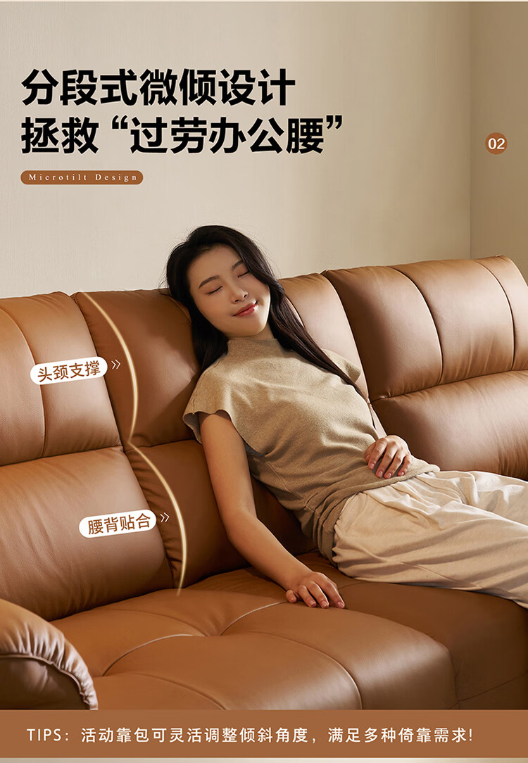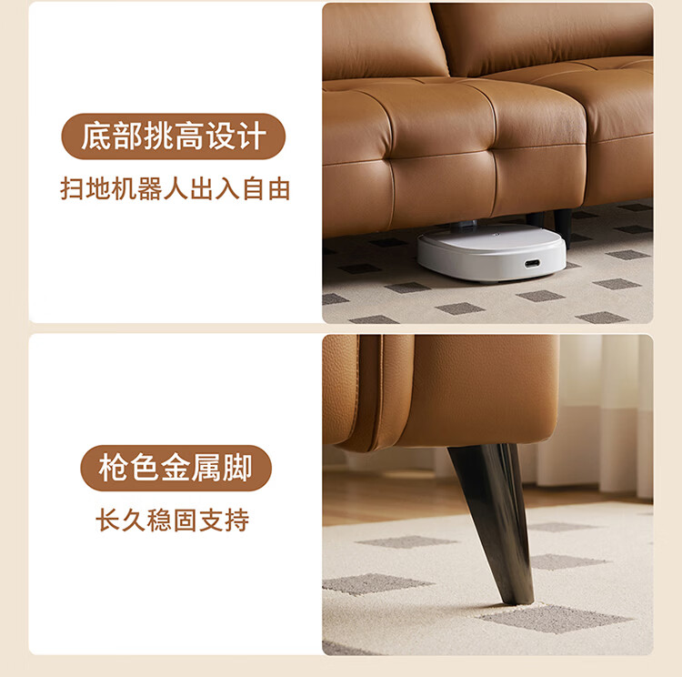 全友家居现代简约真皮沙发客厅轻奢高级感2026新款头层牛皮直排式沙发 【活力橘|牛皮】2.82m沙发+脚凳