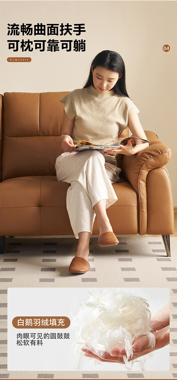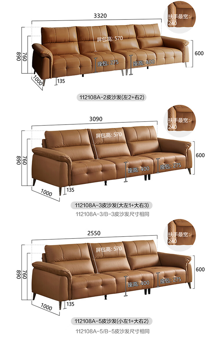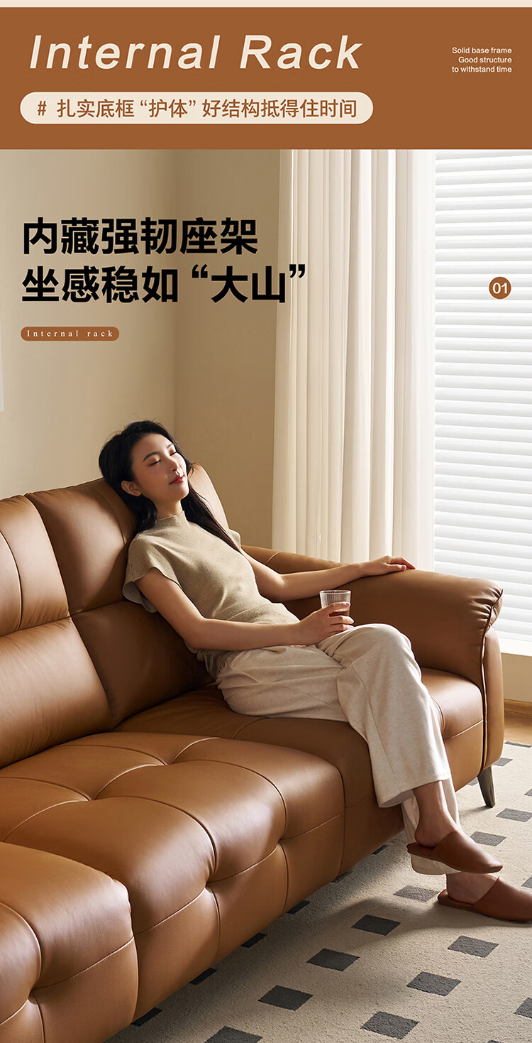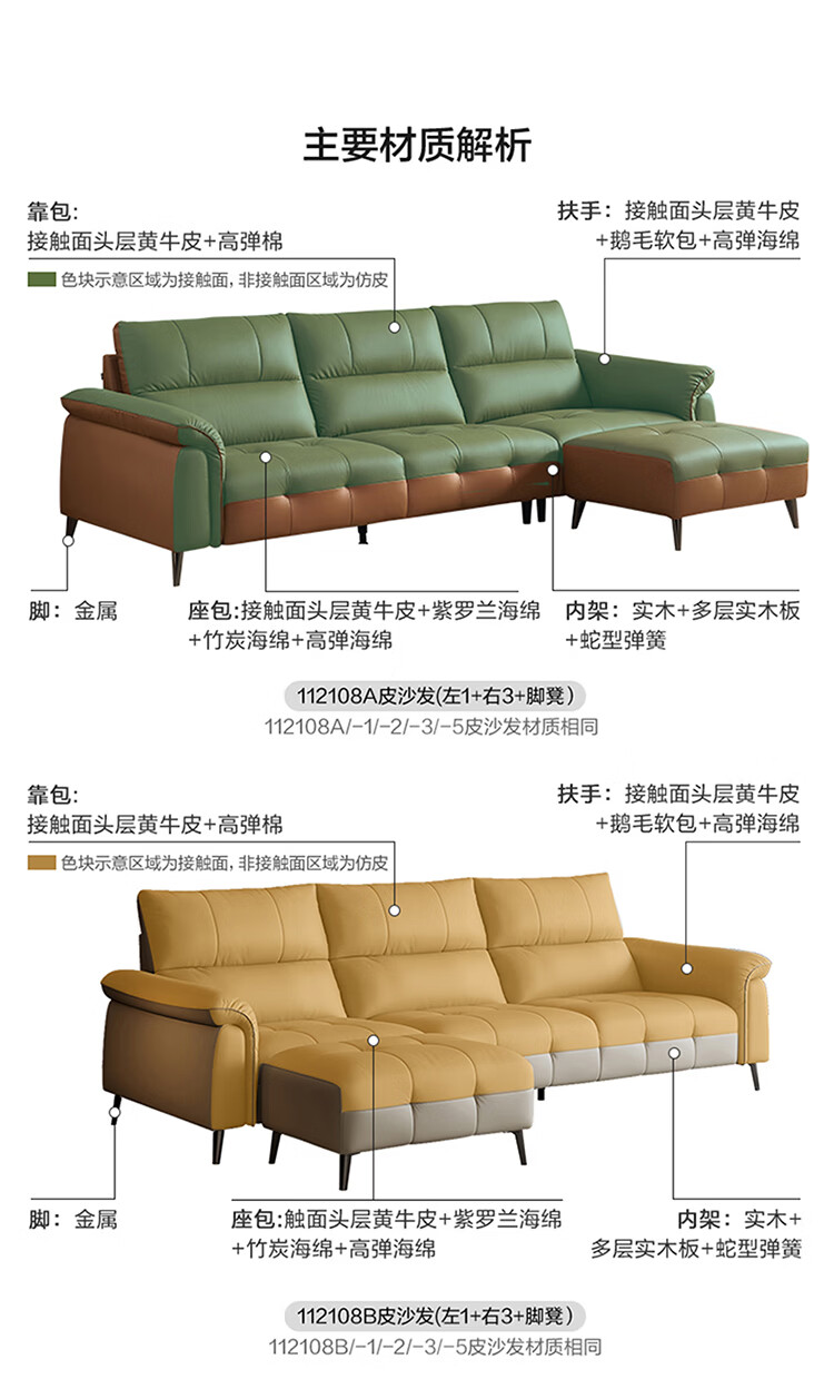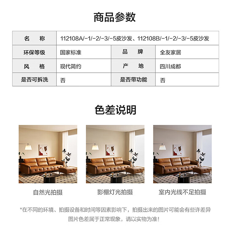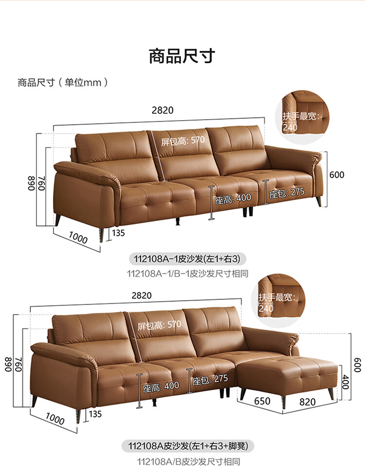 全友家居现代简约真皮沙发客厅轻奢高级感2026新款头层牛皮直排式沙发 【活力橘|牛皮】2.82m沙发+脚凳