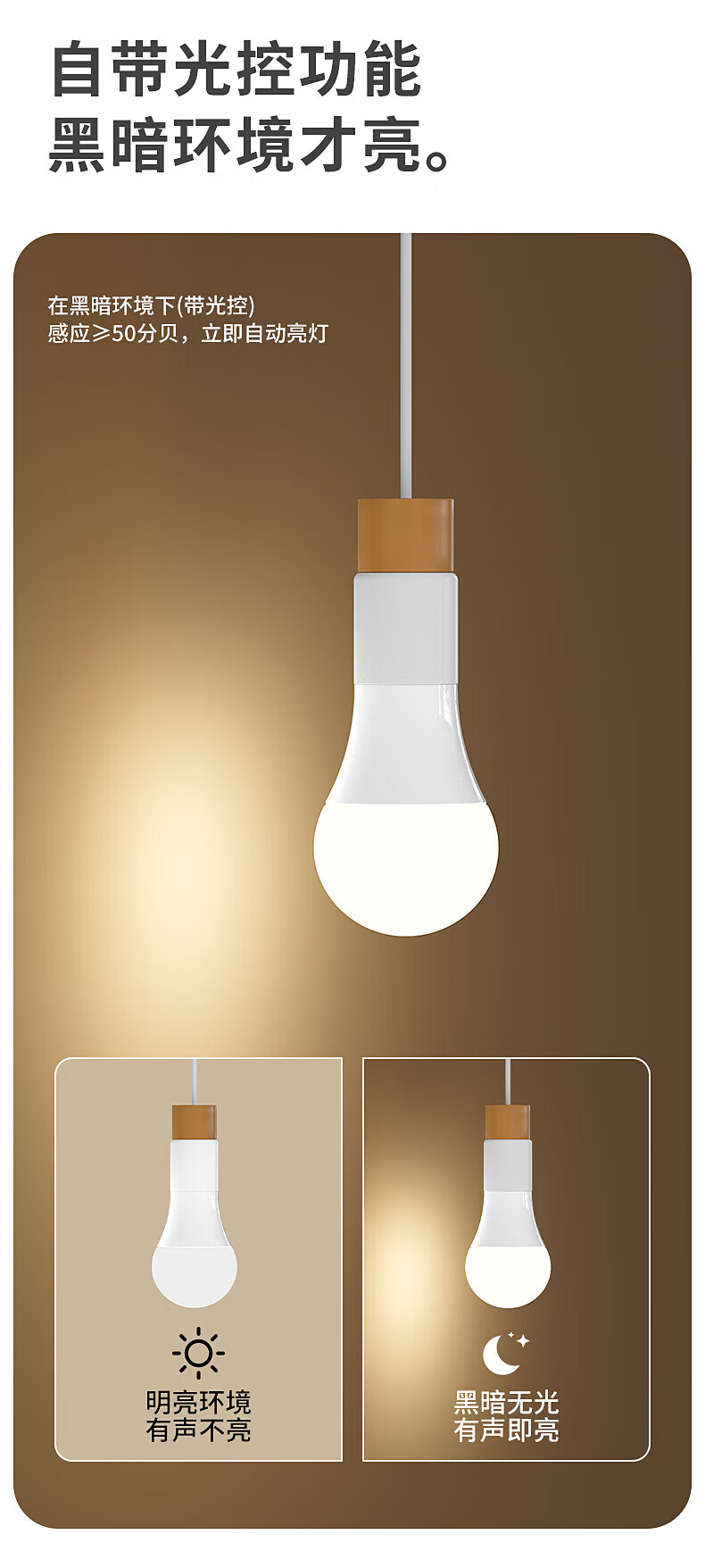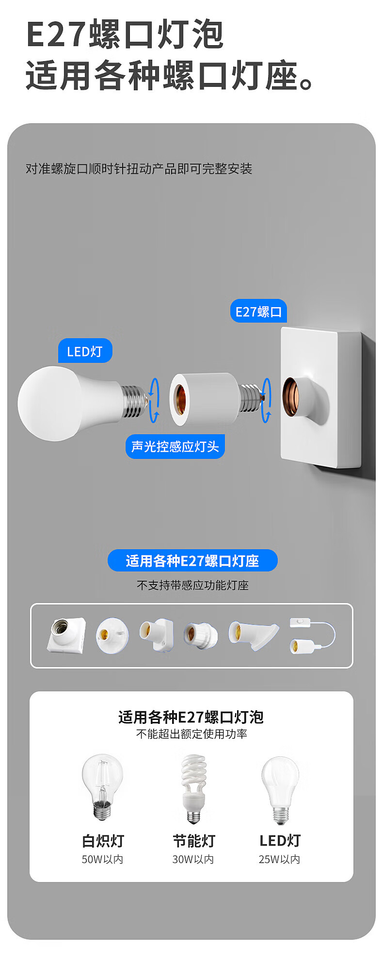 国际电工(FDD)E27螺口声控灯头家用智能光控开关楼道走廊LED灯泡自动感应灯座 E27声光控感应灯头【无灯泡】