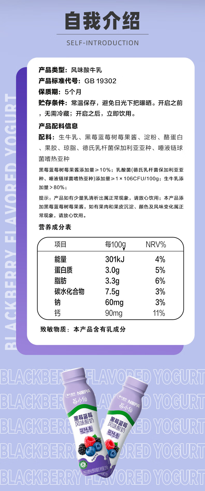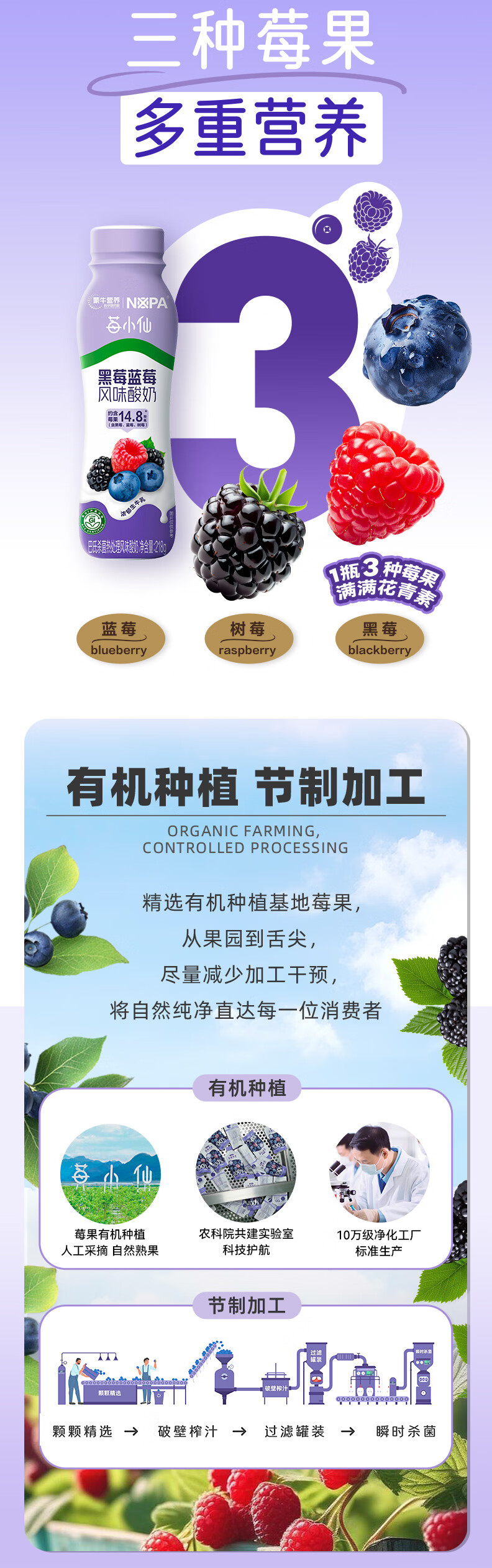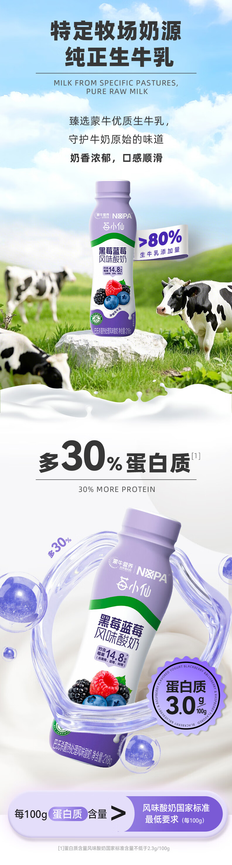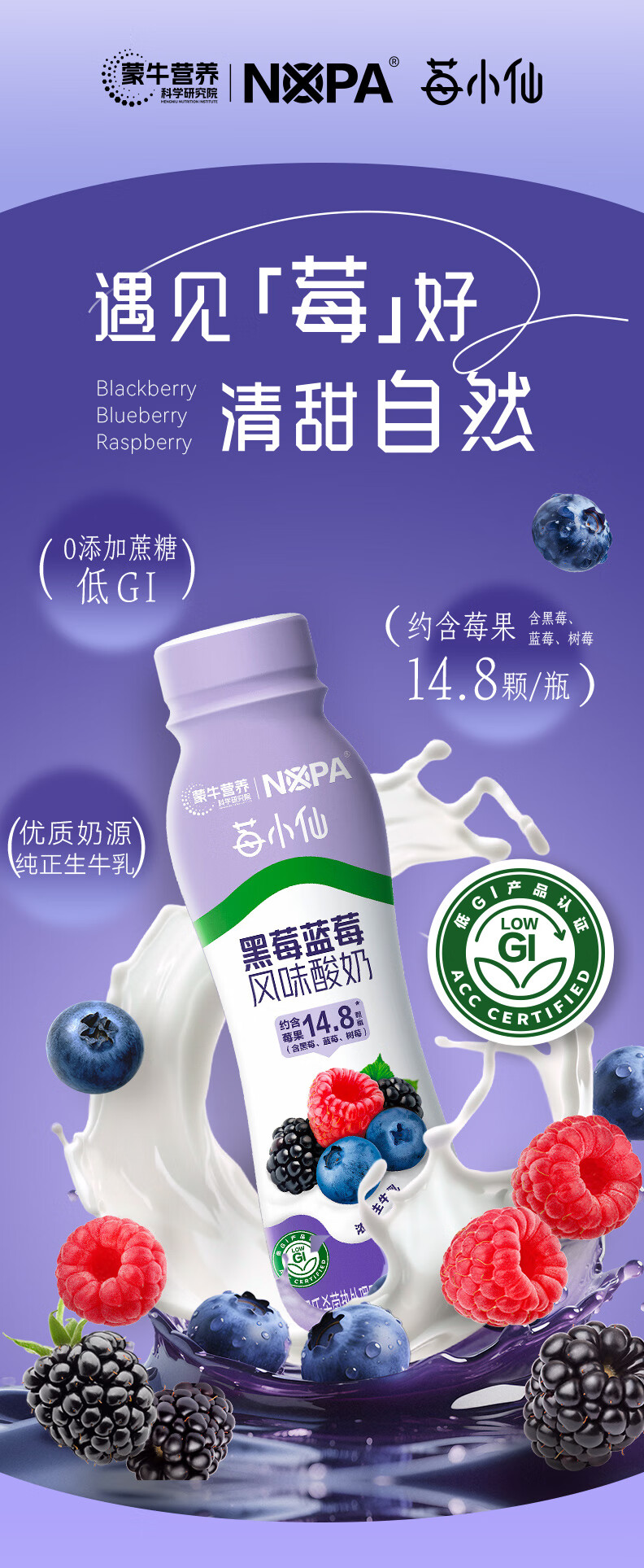 蒙牛【保质期5月8号到期】NOPA黑莓蓝莓风味酸奶低GI218g*10瓶礼盒装