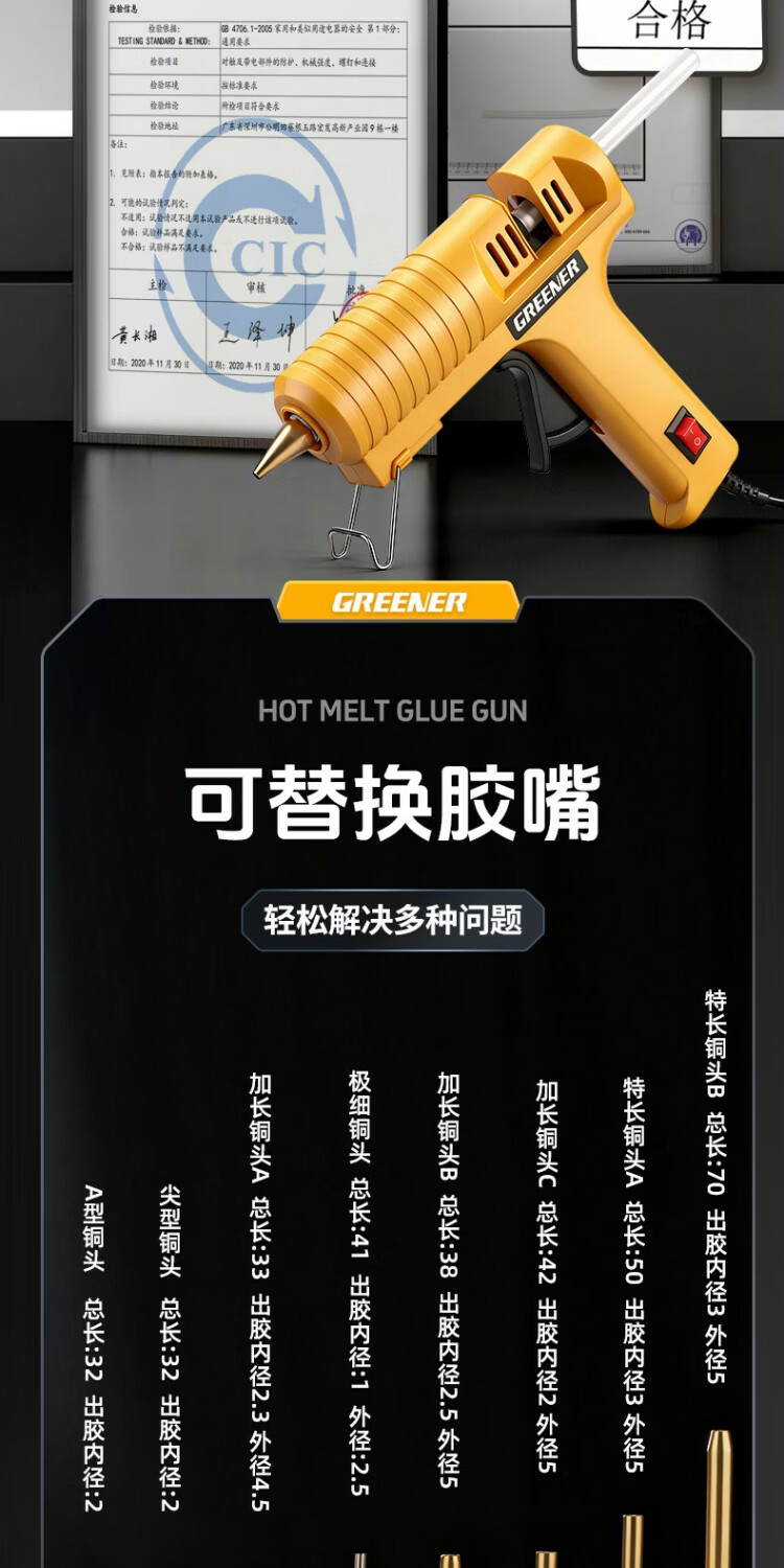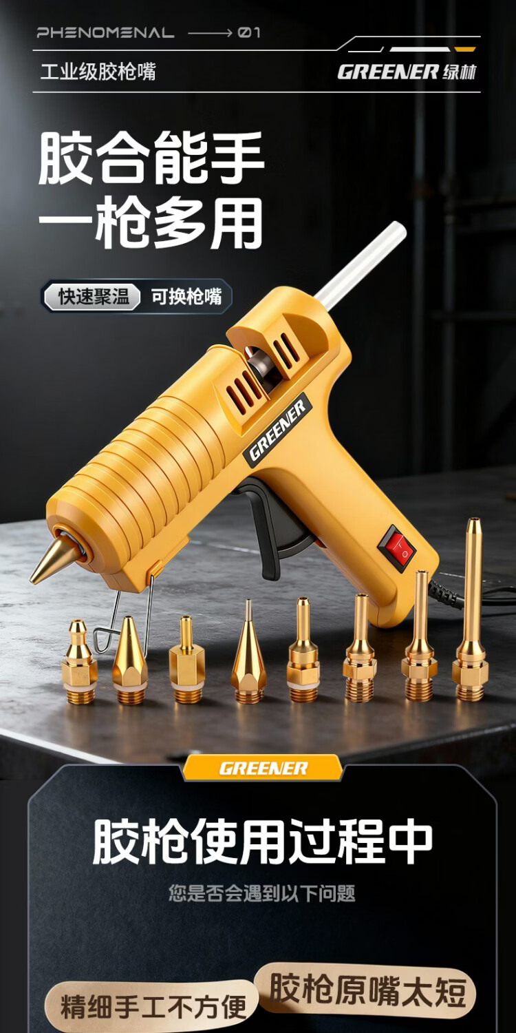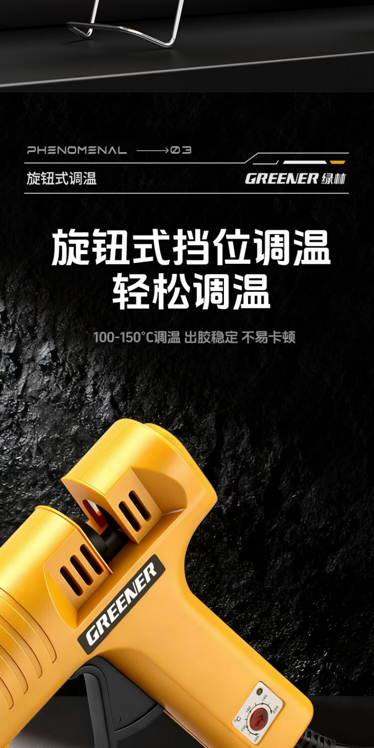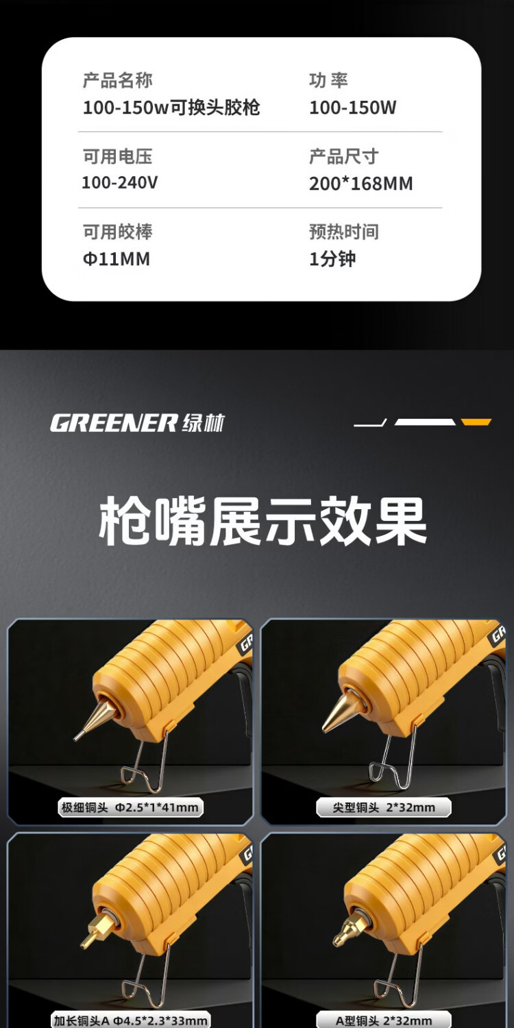 绿林热熔胶枪可换嘴大功率工业级调温150W热胶枪铜嘴加长枪头高粘 【调温款】150W工业级-裸枪