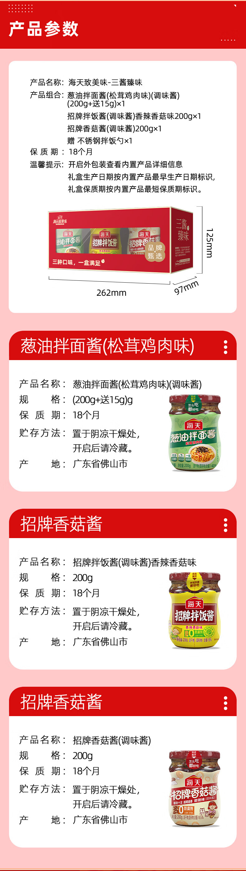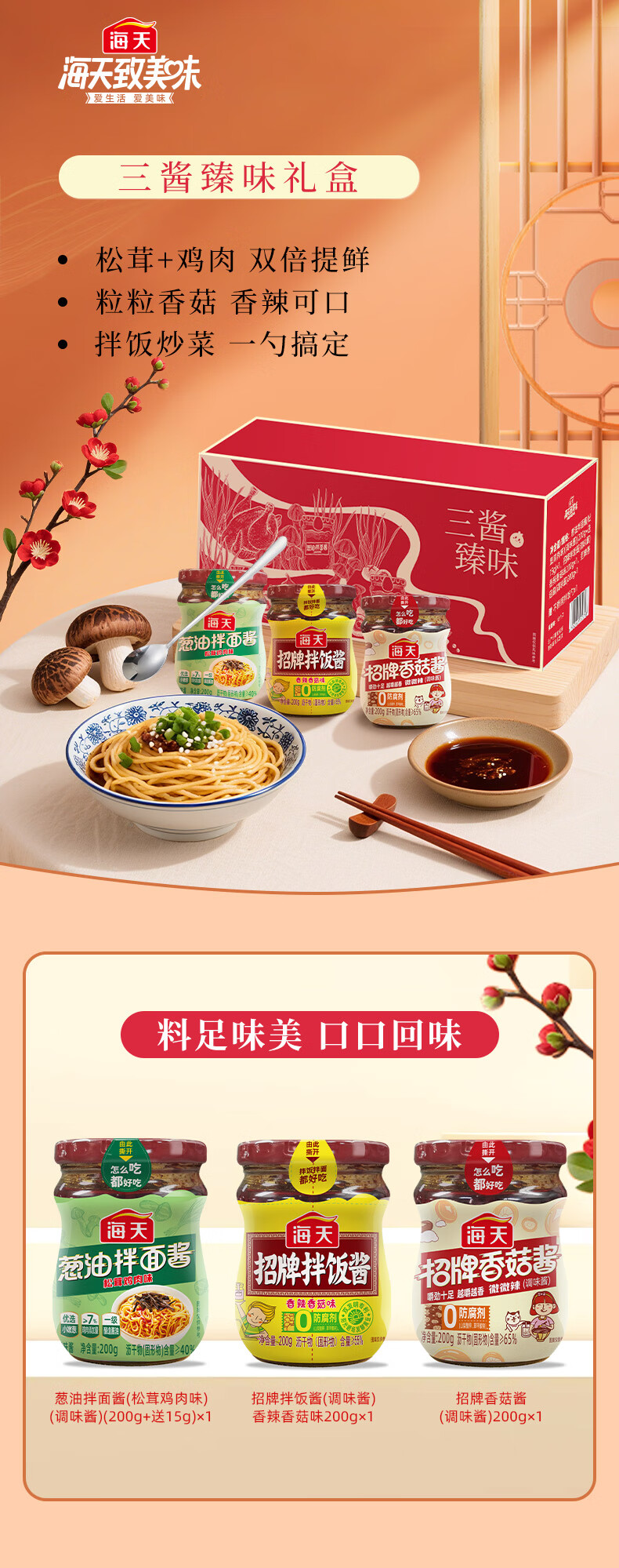 海天 拌饭酱拌面酱200g*3 三酱臻味礼盒 拌饭 拌面 酱 调料酱料礼盒