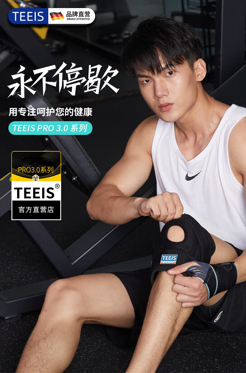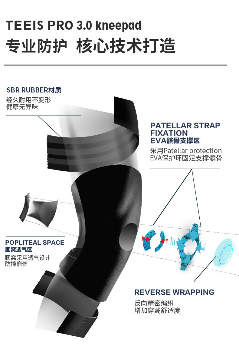 TEEIS德国护膝运动专业防护男士女跑步登山爬山半月板损伤膝盖髌骨护具 可调节专业护膝 PRO3.0系列 加大码丨 适合170-220斤丨两只装