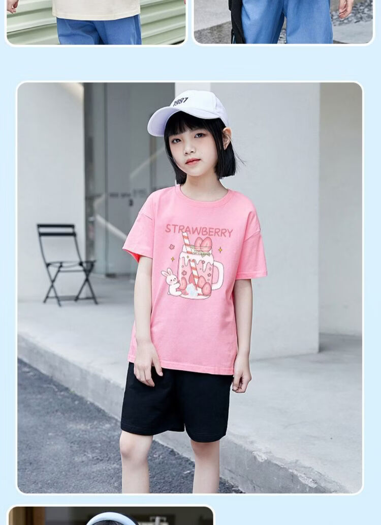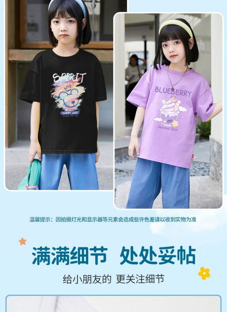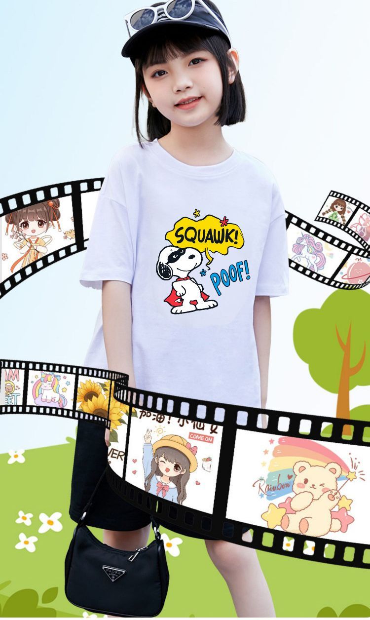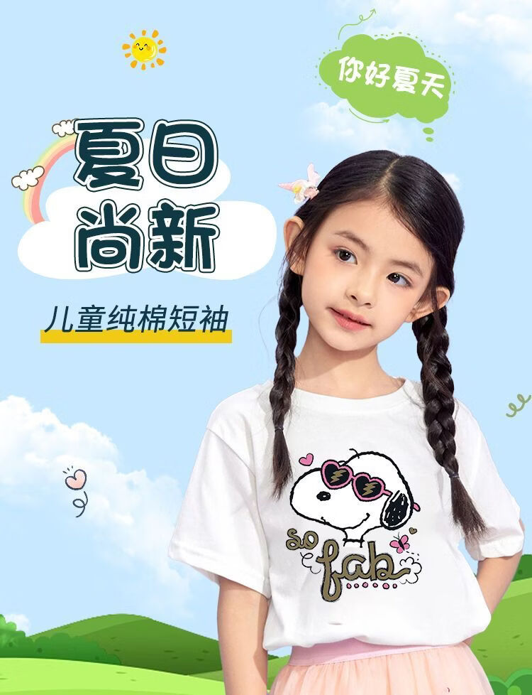 史努比(SNOOPY)儿童女童短袖t恤2026新款夏装女孩上衣纯棉衣服儿童可爱童装 短袖/422大粉色+333大紫色+387大白色 140 适合体重30-35公斤