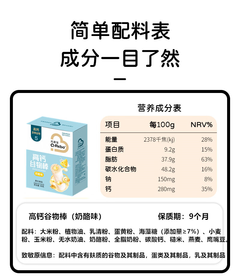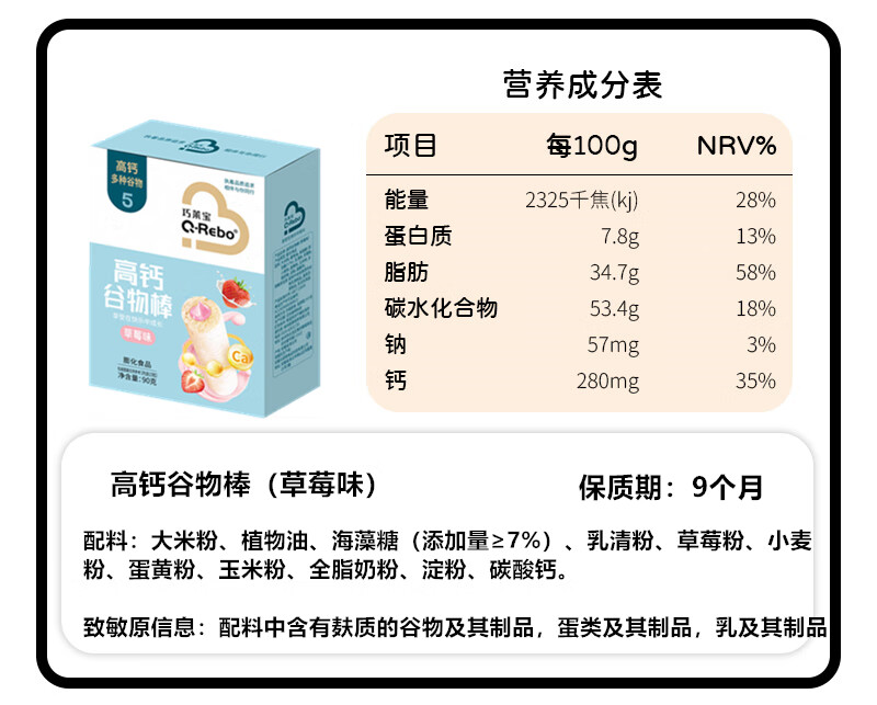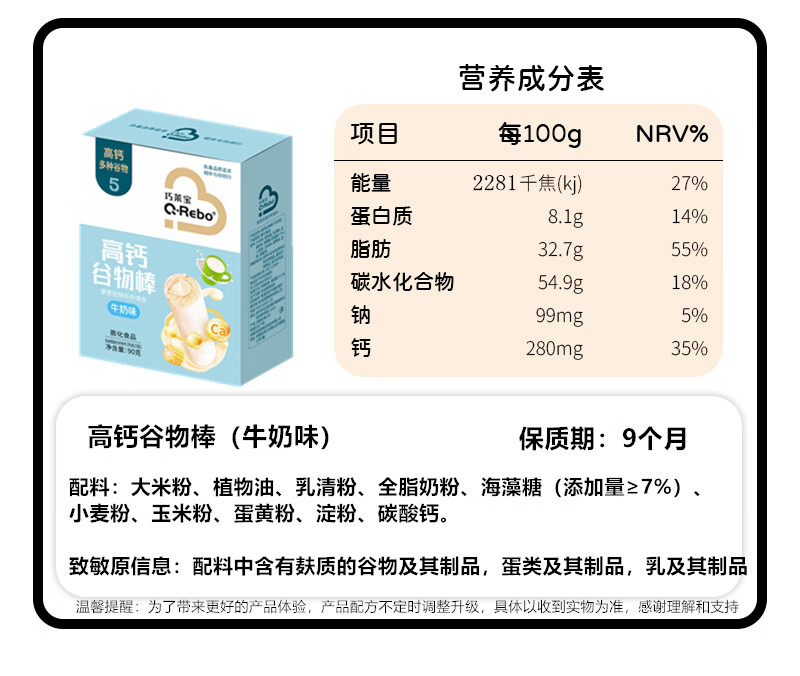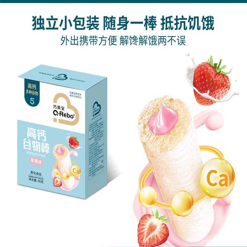 巧莱宝高钙谷物棒90g/盒 牛奶草莓奶酪味夹心粗粮零食 内含15根 牛奶味1盒