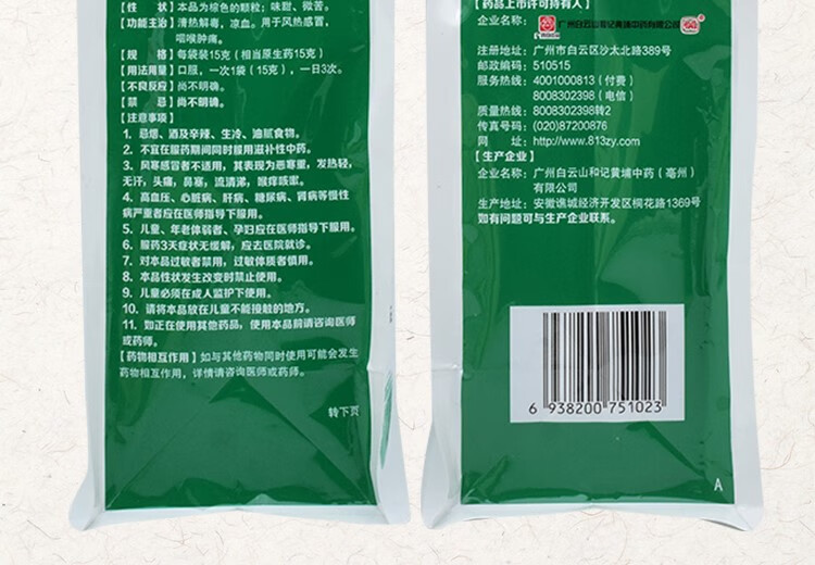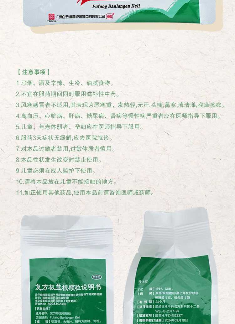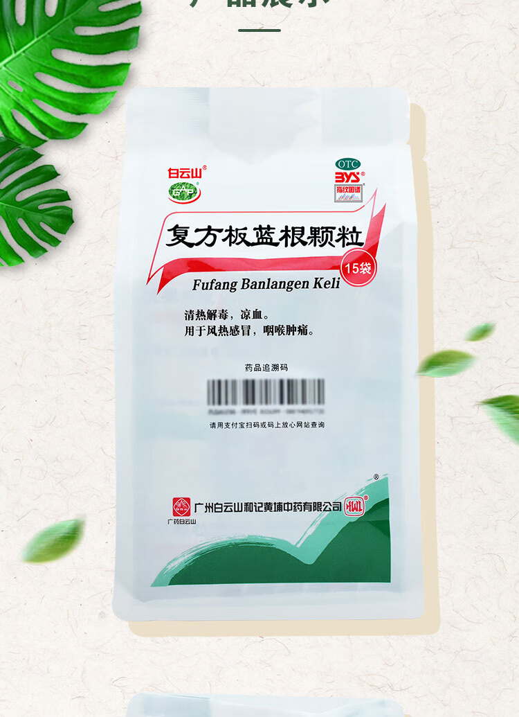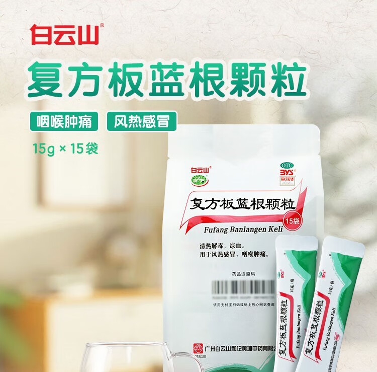 白云山 复方板蓝根颗粒 15g*15袋 感冒药风热感冒 清热解毒 咽喉肿痛