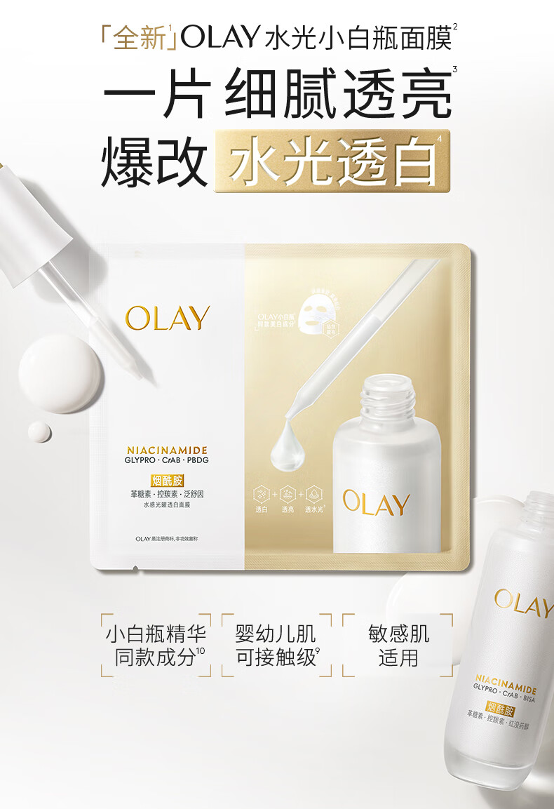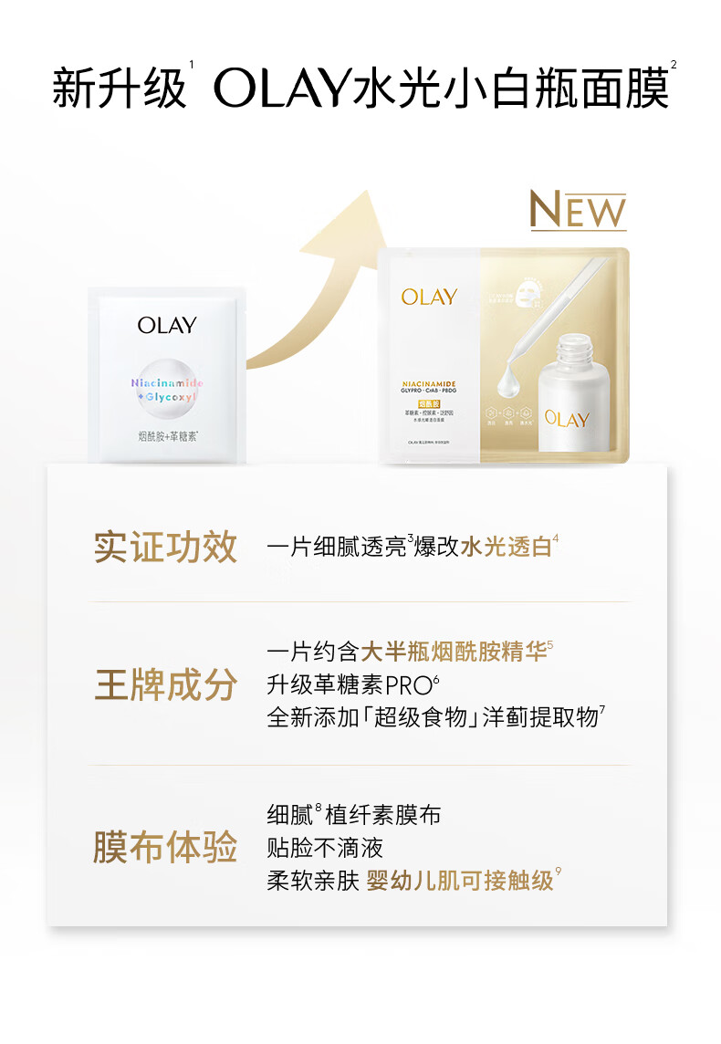 玉兰油(OLAY)全新水光小白瓶面膜5片补水美白去黄提亮护肤品生日礼物送女生