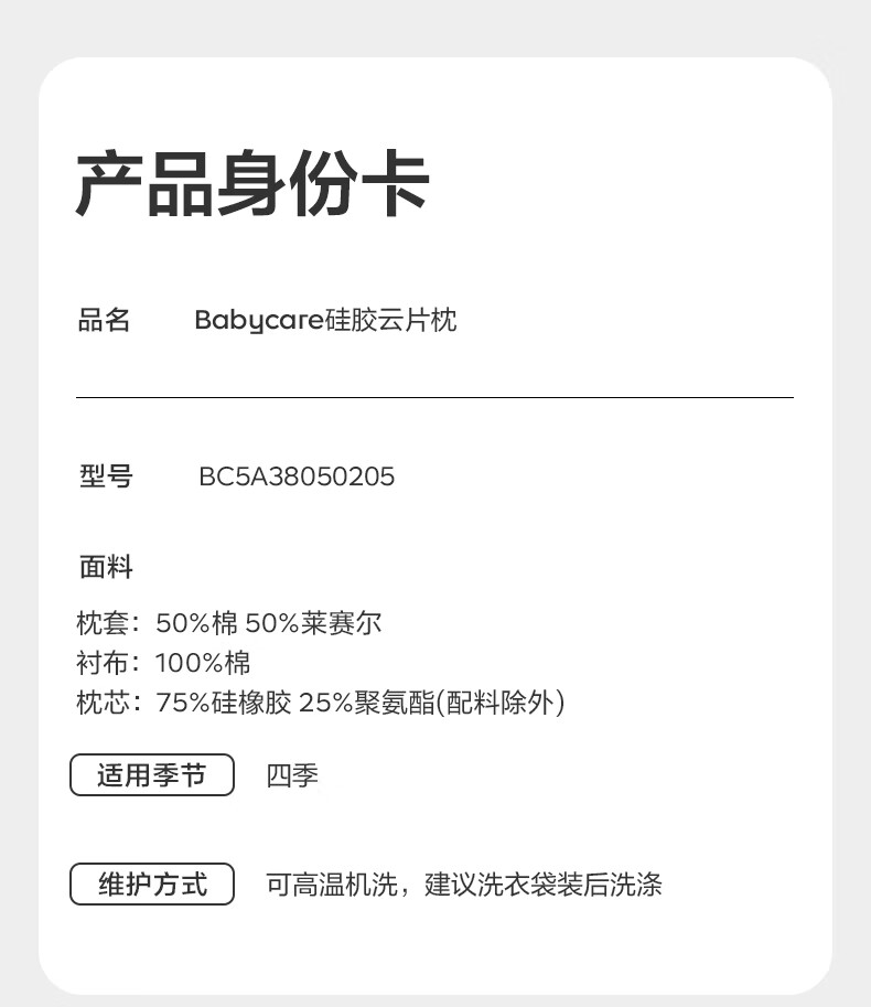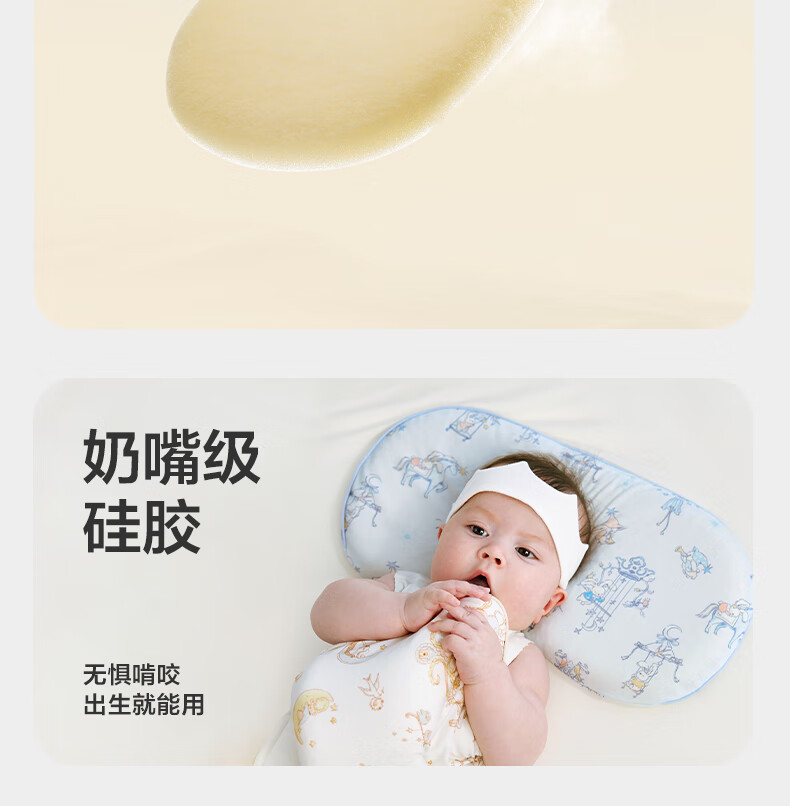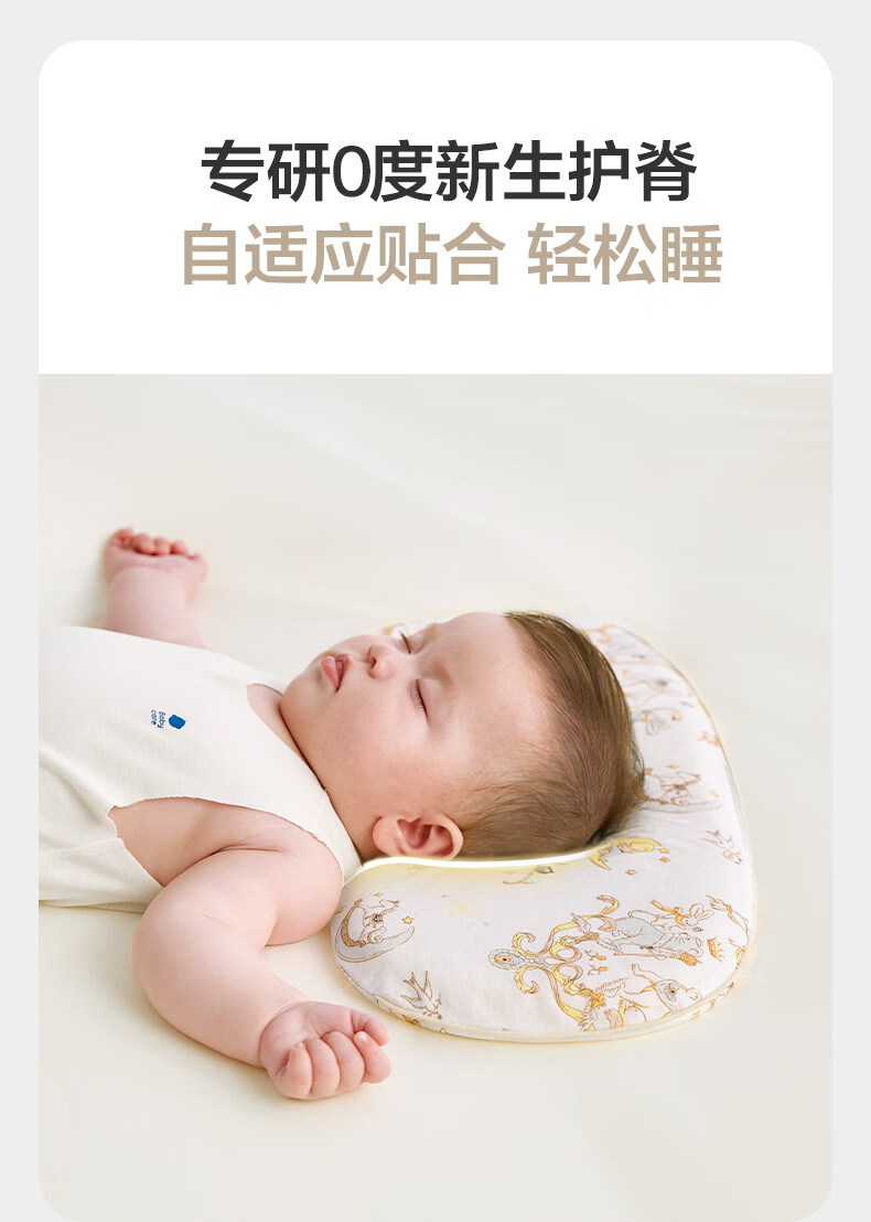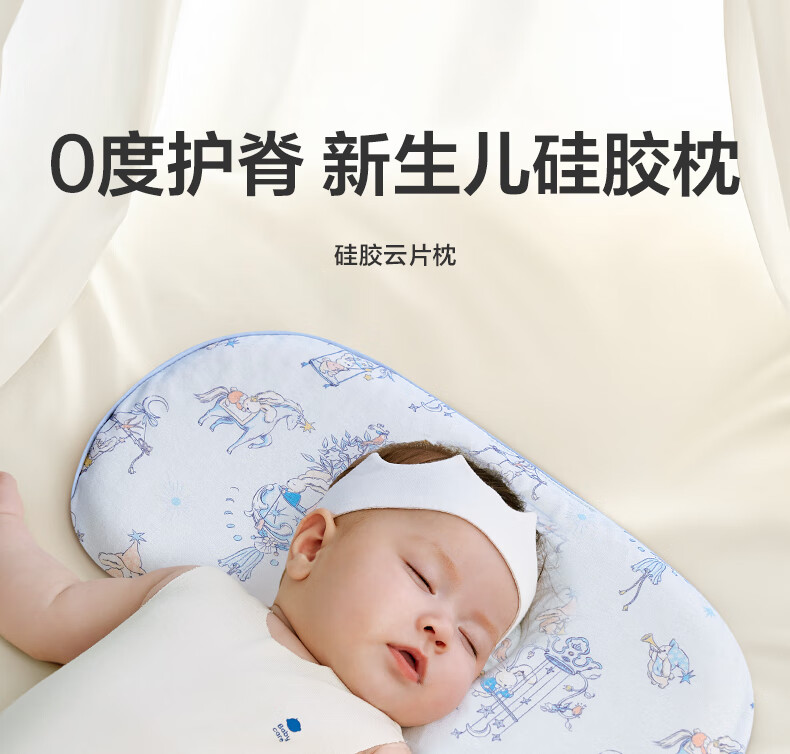 babycare新生儿枕头硅胶云片枕婴儿透气宝宝枕头0-6月可机洗43*21魔法兔