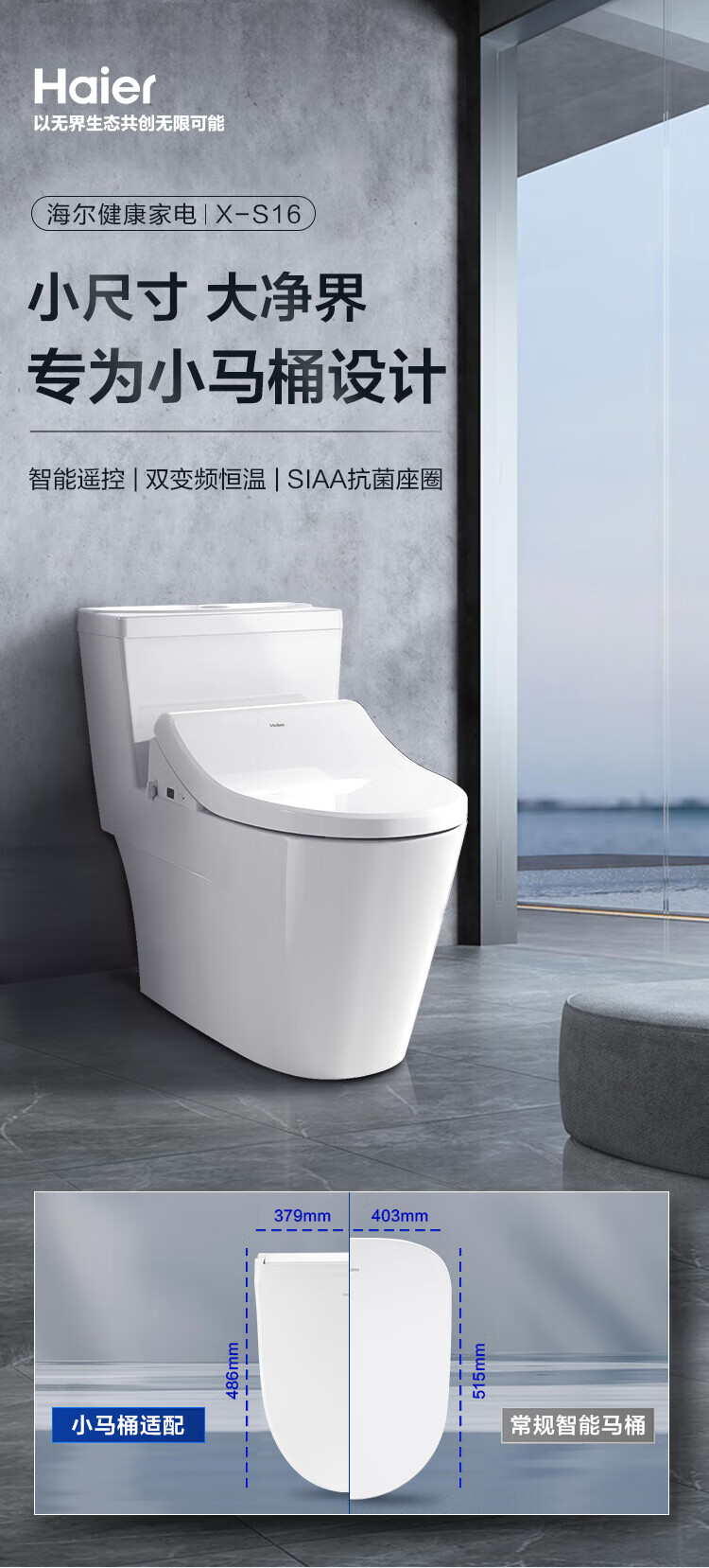 海尔(Haier) 智能马桶盖 座圈加热 夜灯照明 座圈抗菌 【适配中小马桶】X-S16 免费上门安装