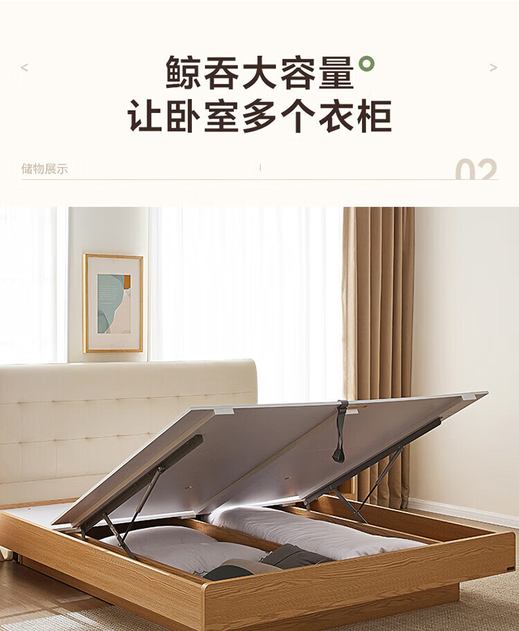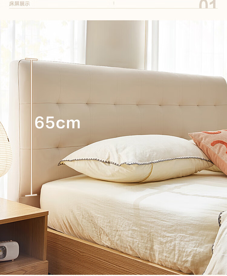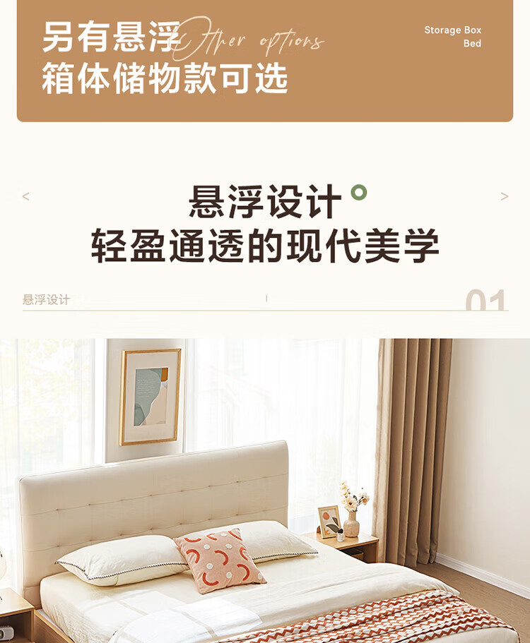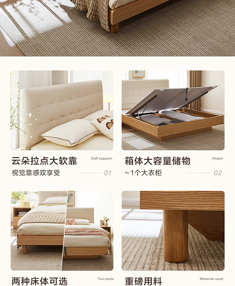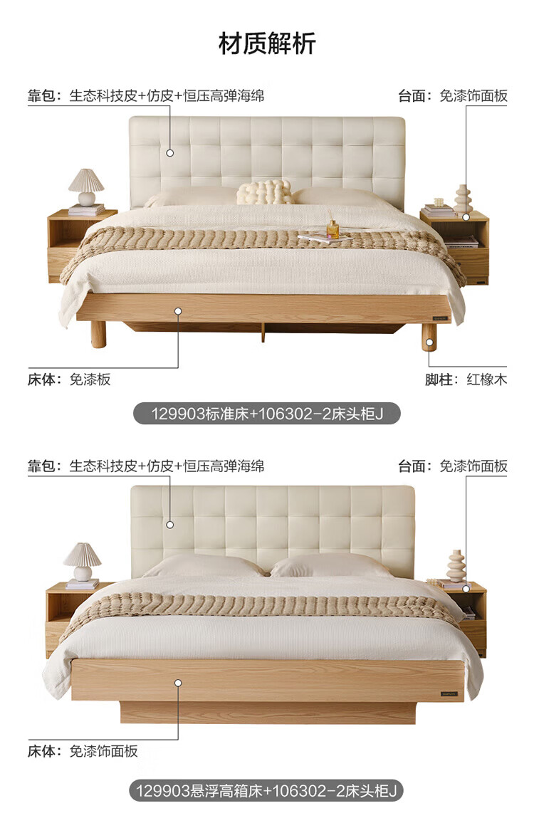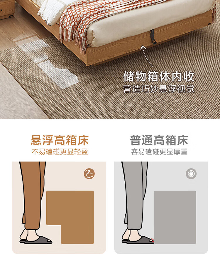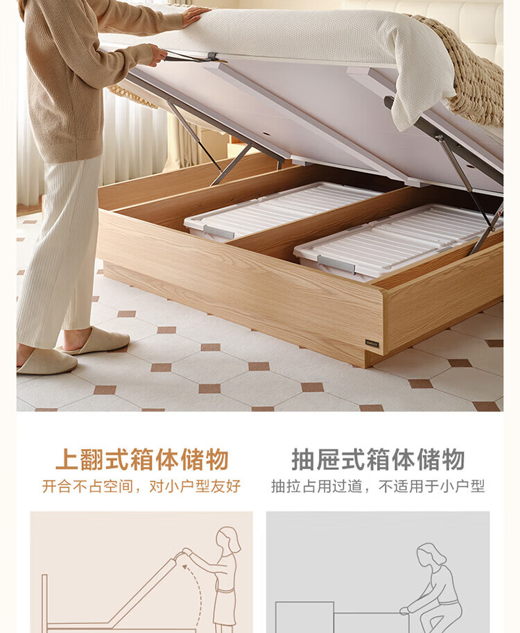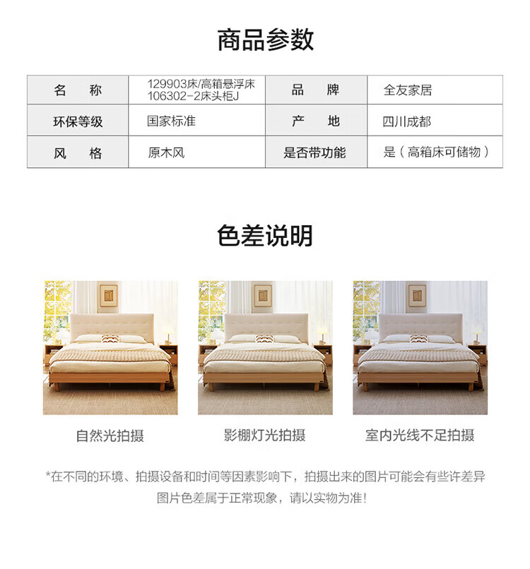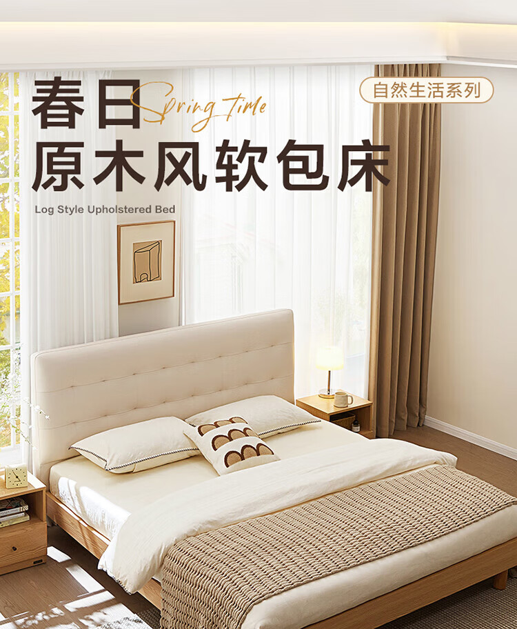 全友(QUANU)家居现代简约原木风软包高箱储物床家用主卧室高脚床双人板式大床 高脚款|1.8m床