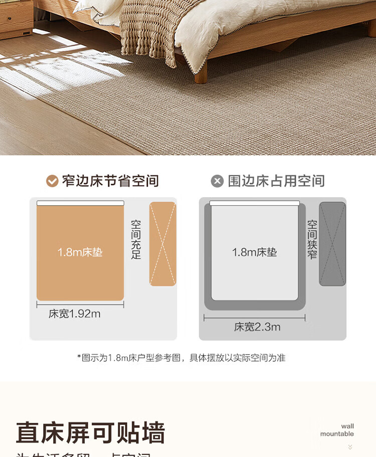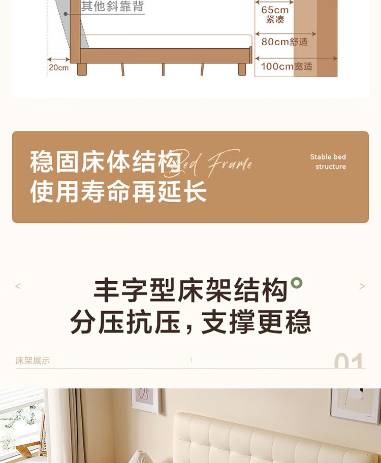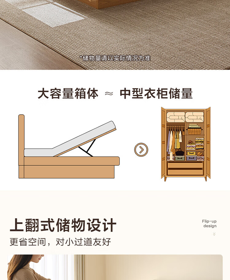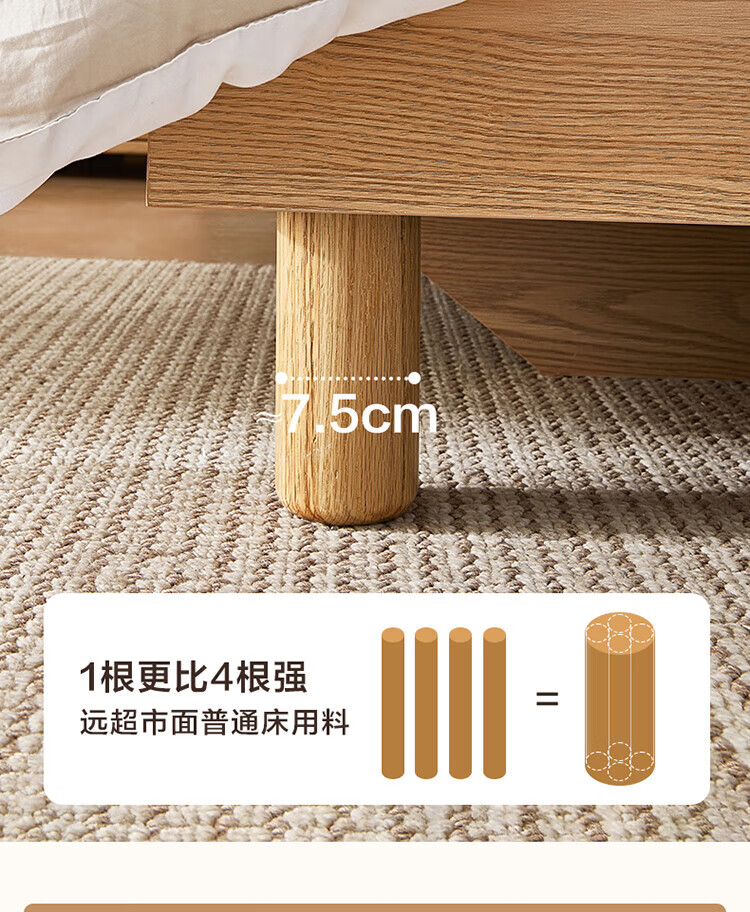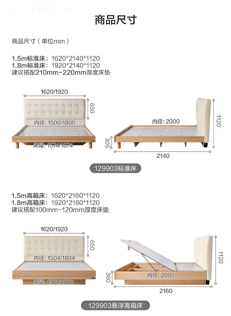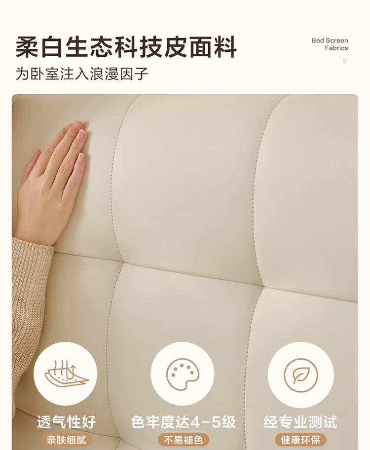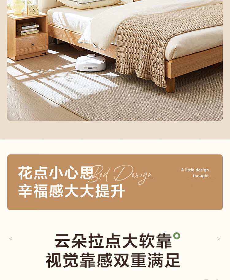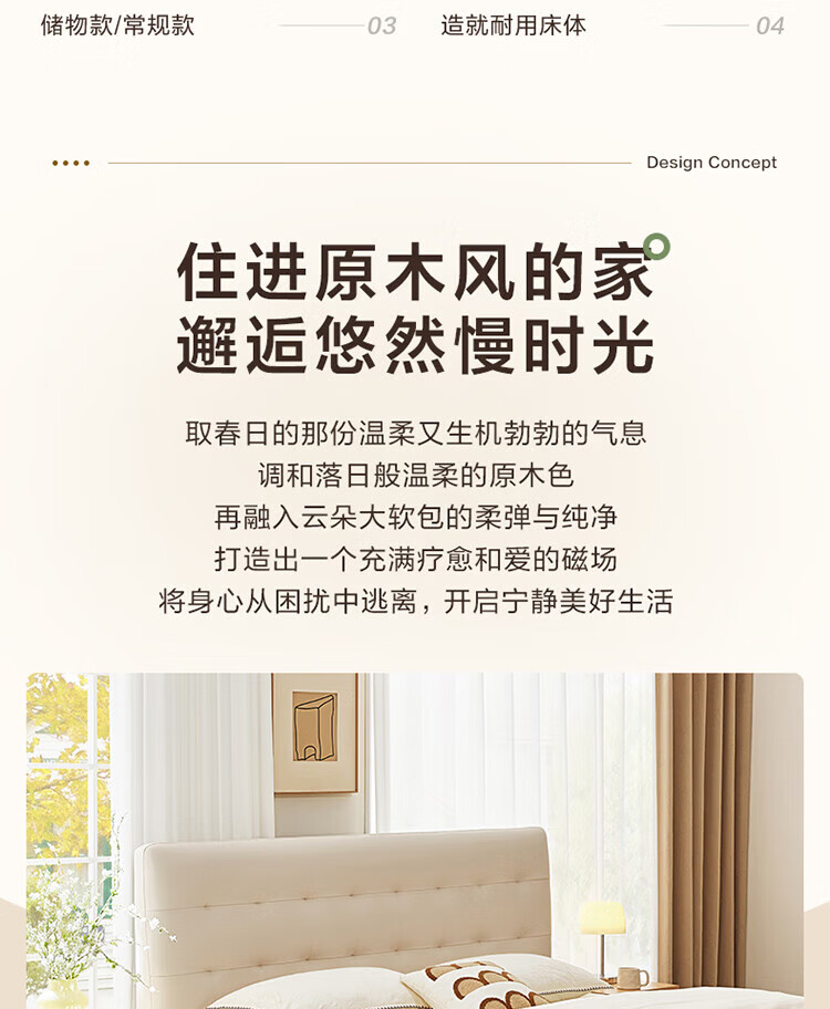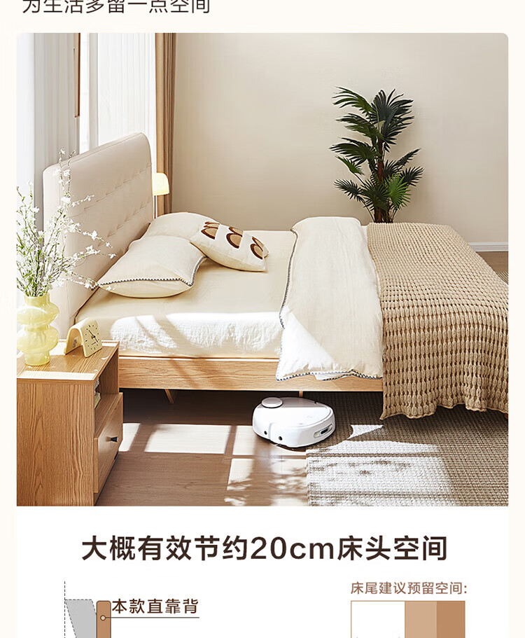 全友(QUANU)家居现代简约原木风软包高箱储物床家用主卧室高脚床双人板式大床 高脚款|1.8m床