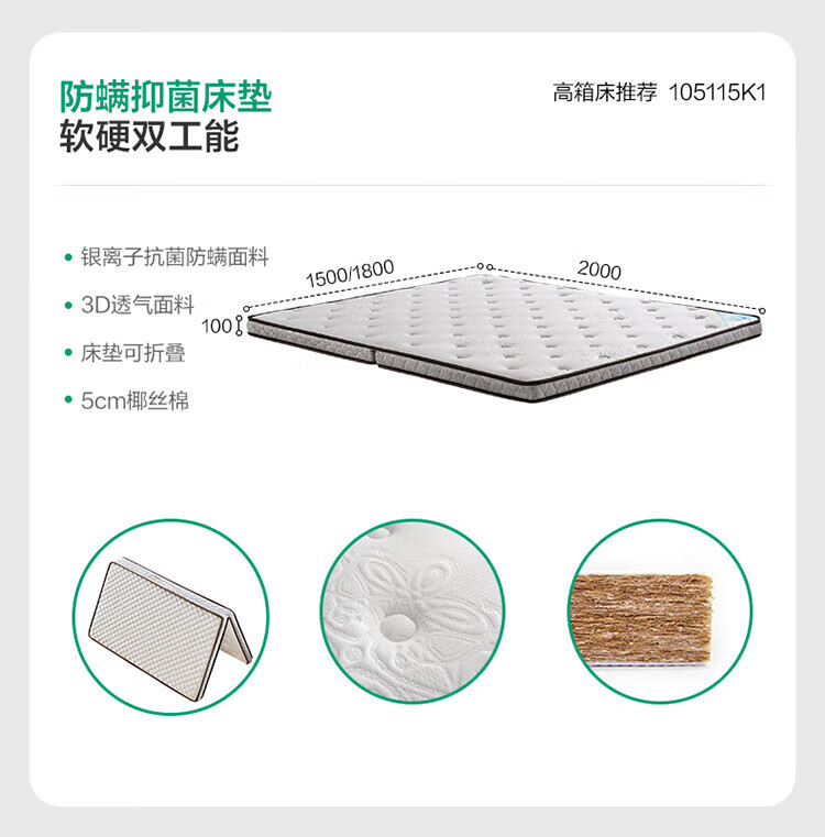 全友家居 独立袋装弹簧乳胶椰棕床垫1.8米x2米席梦思酒店床垫偏硬护脊