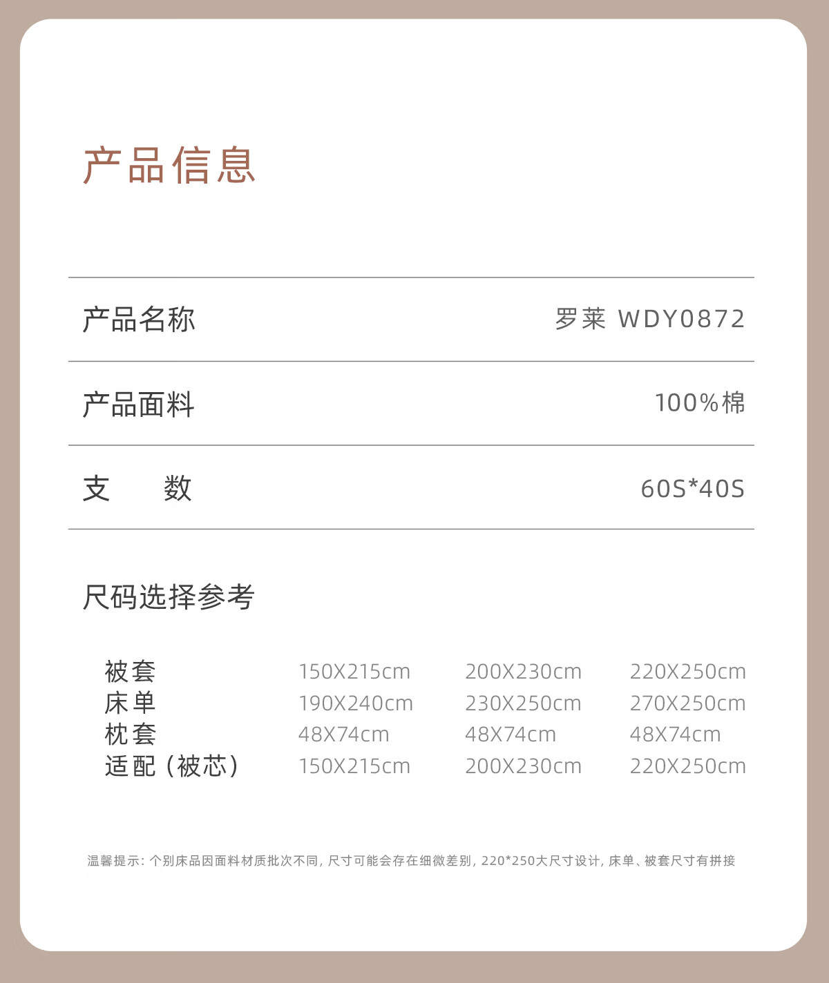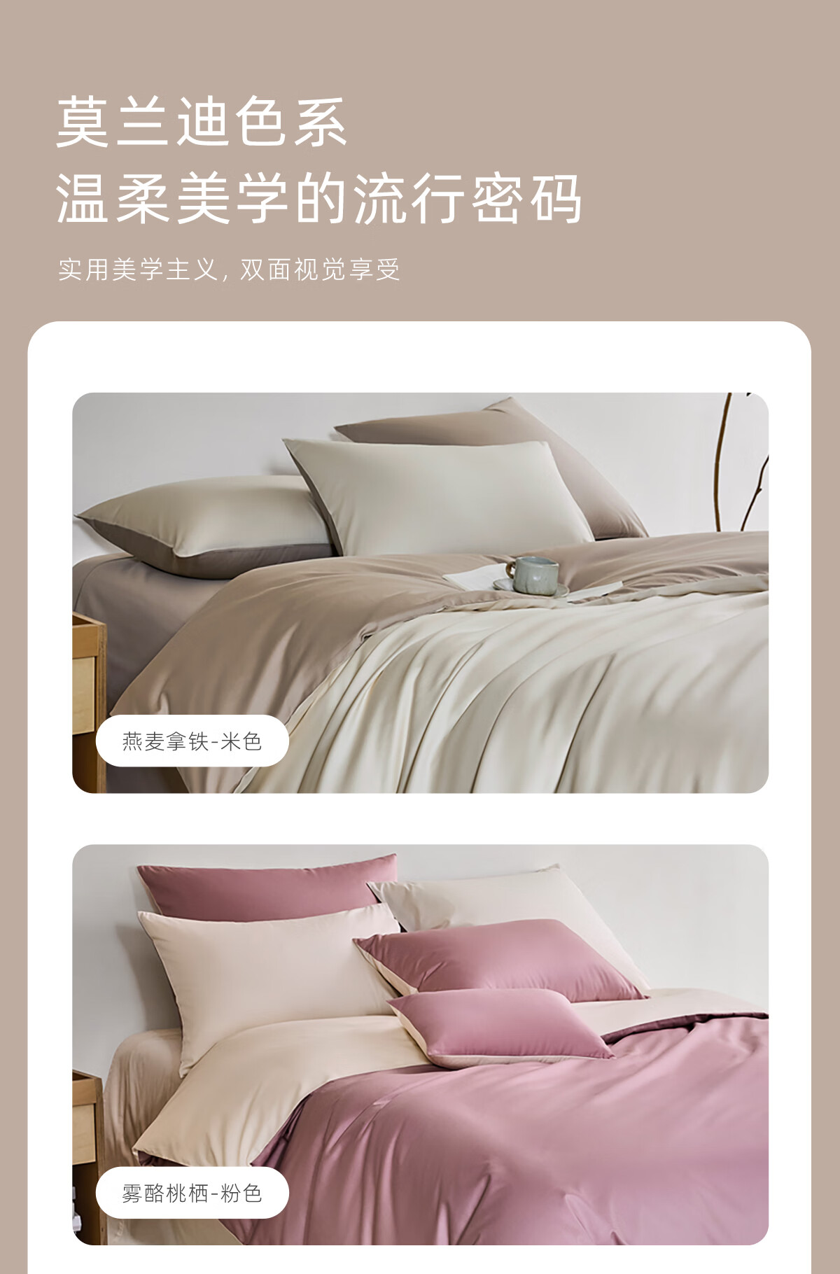 罗莱家纺A类60支新疆棉全棉纯棉四件套简约素色床品套件 燕麦拿铁 1.8米四件套 床单款 (被套220*250cm)