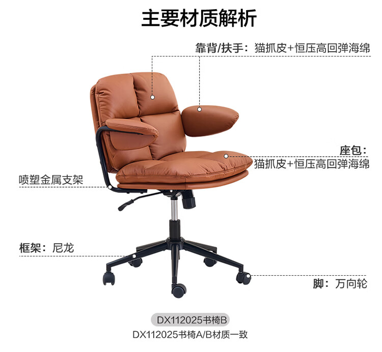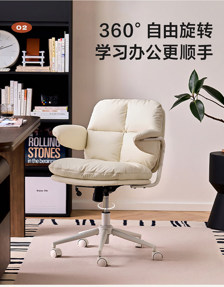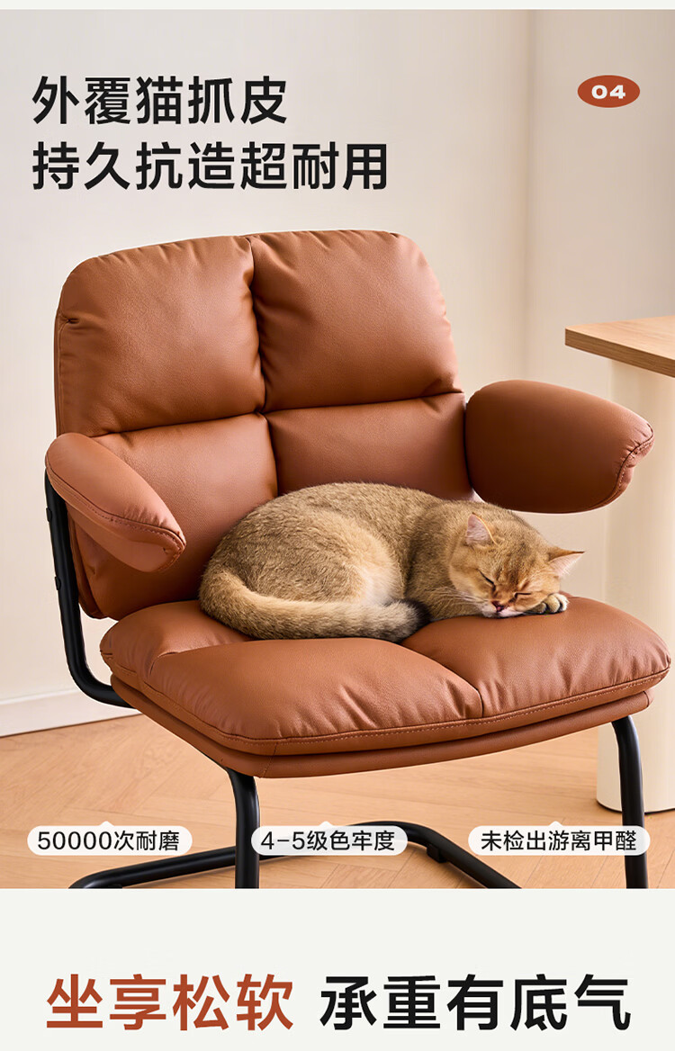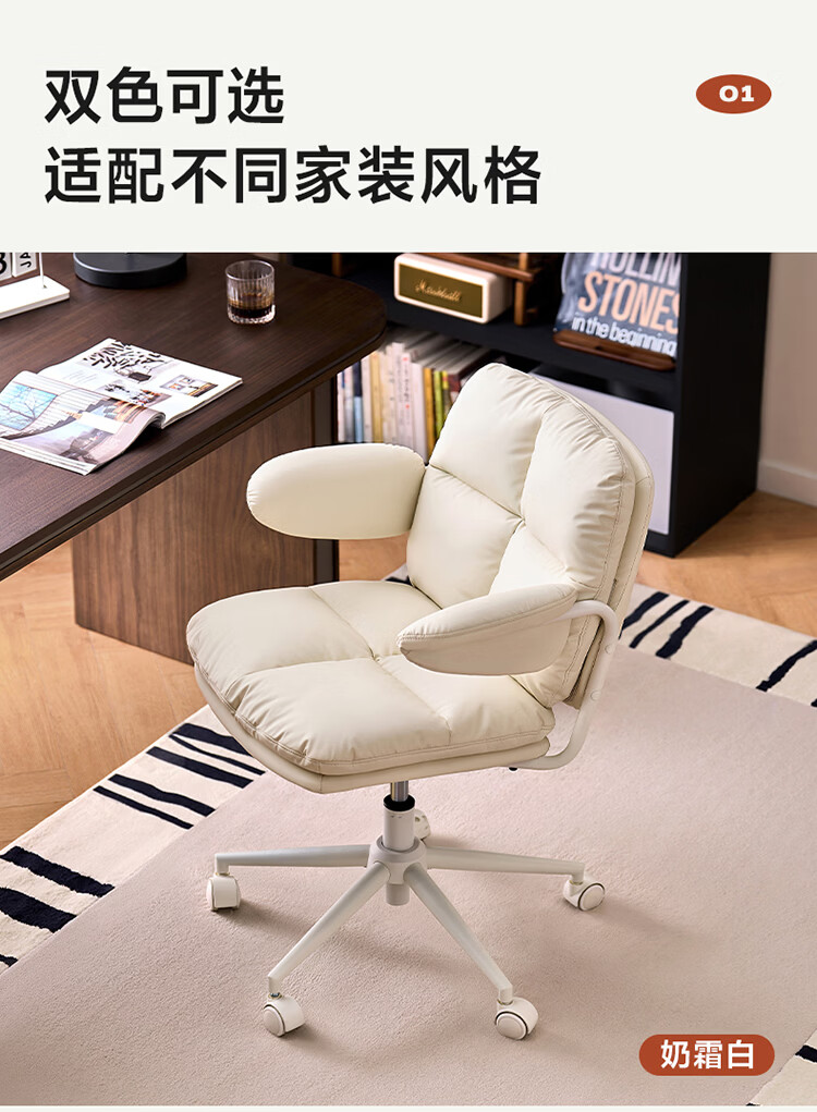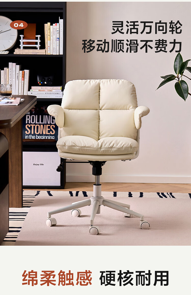 全友家居猫爪皮书房椅子带靠背2026新款电脑办公室椅升降椅久坐不累KS 【奶霜白丨猫抓皮】书椅