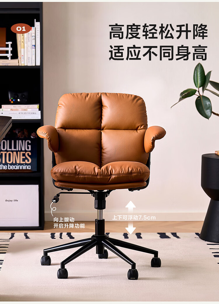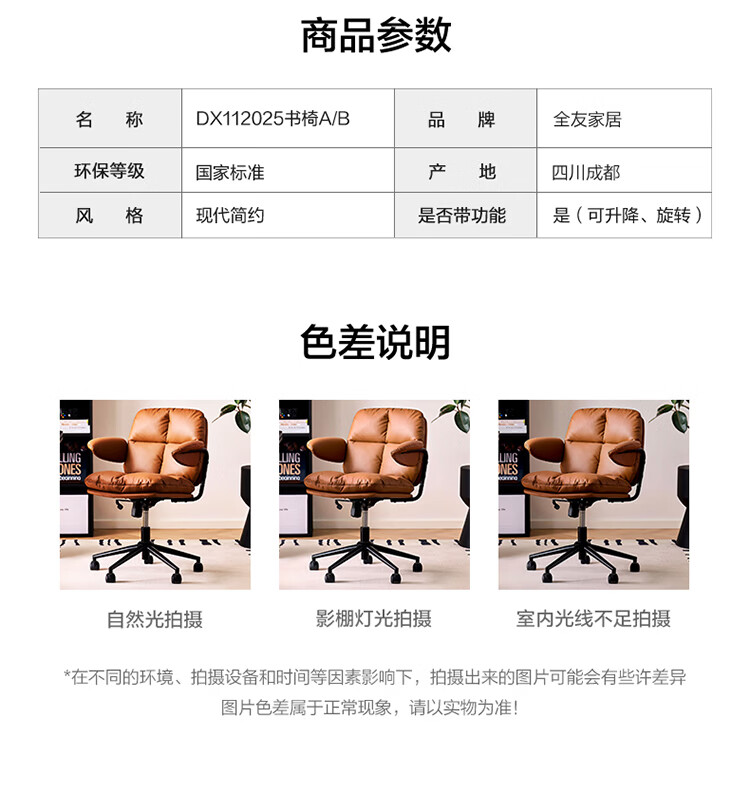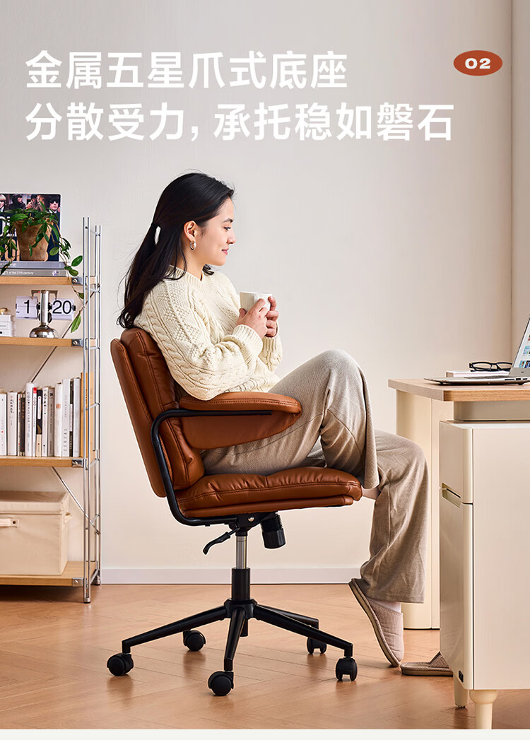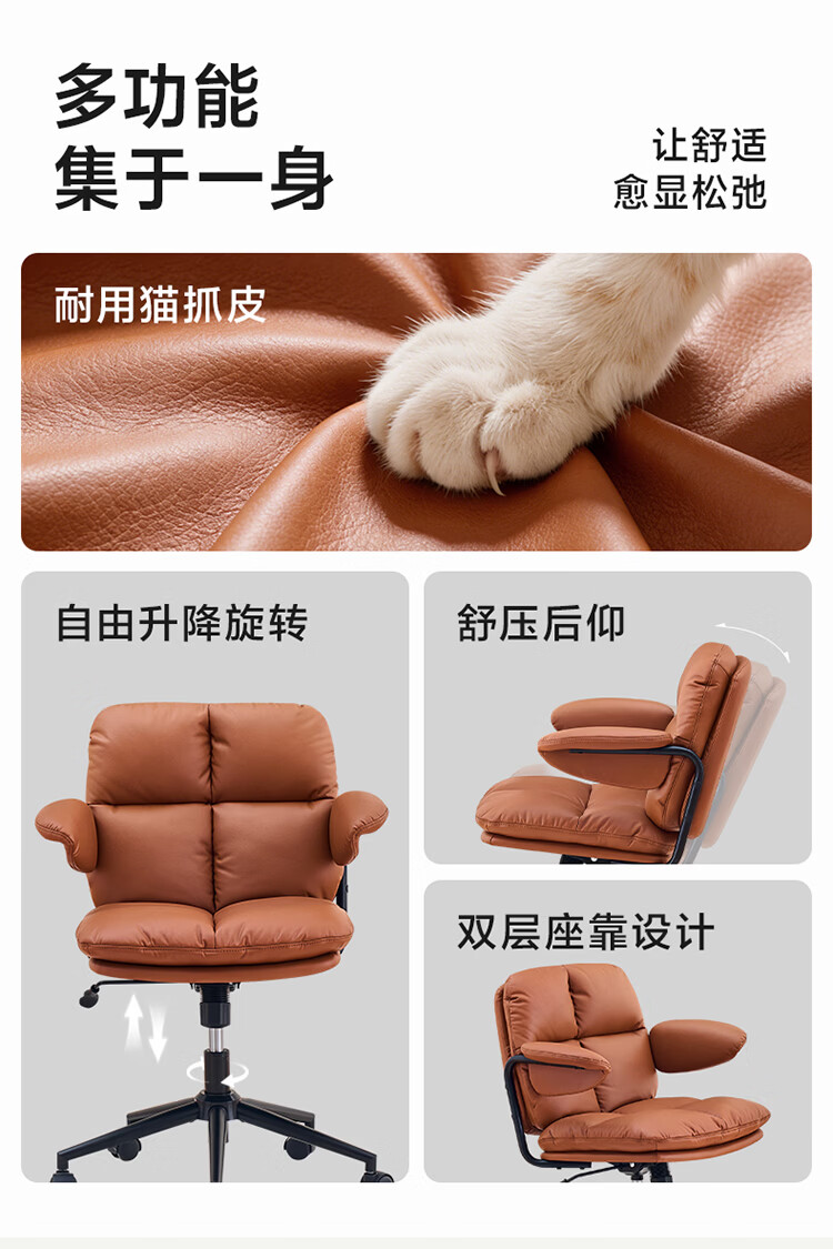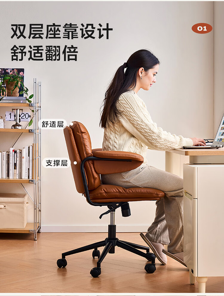 全友家居猫爪皮书房椅子带靠背2026新款电脑办公室椅升降椅久坐不累KS 【奶霜白丨猫抓皮】书椅