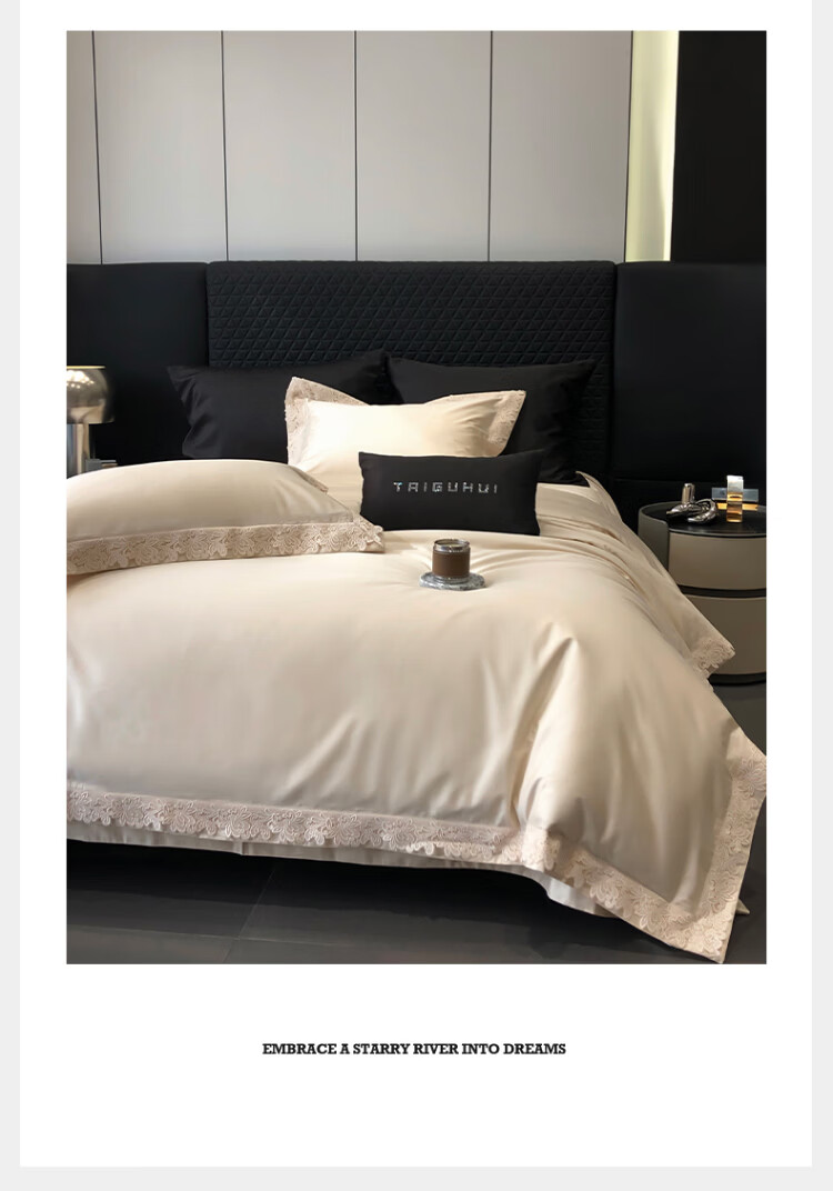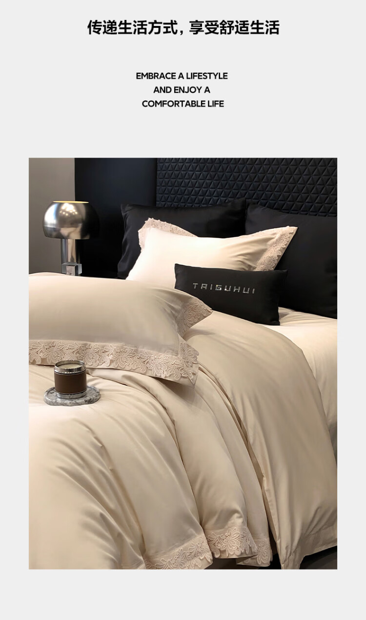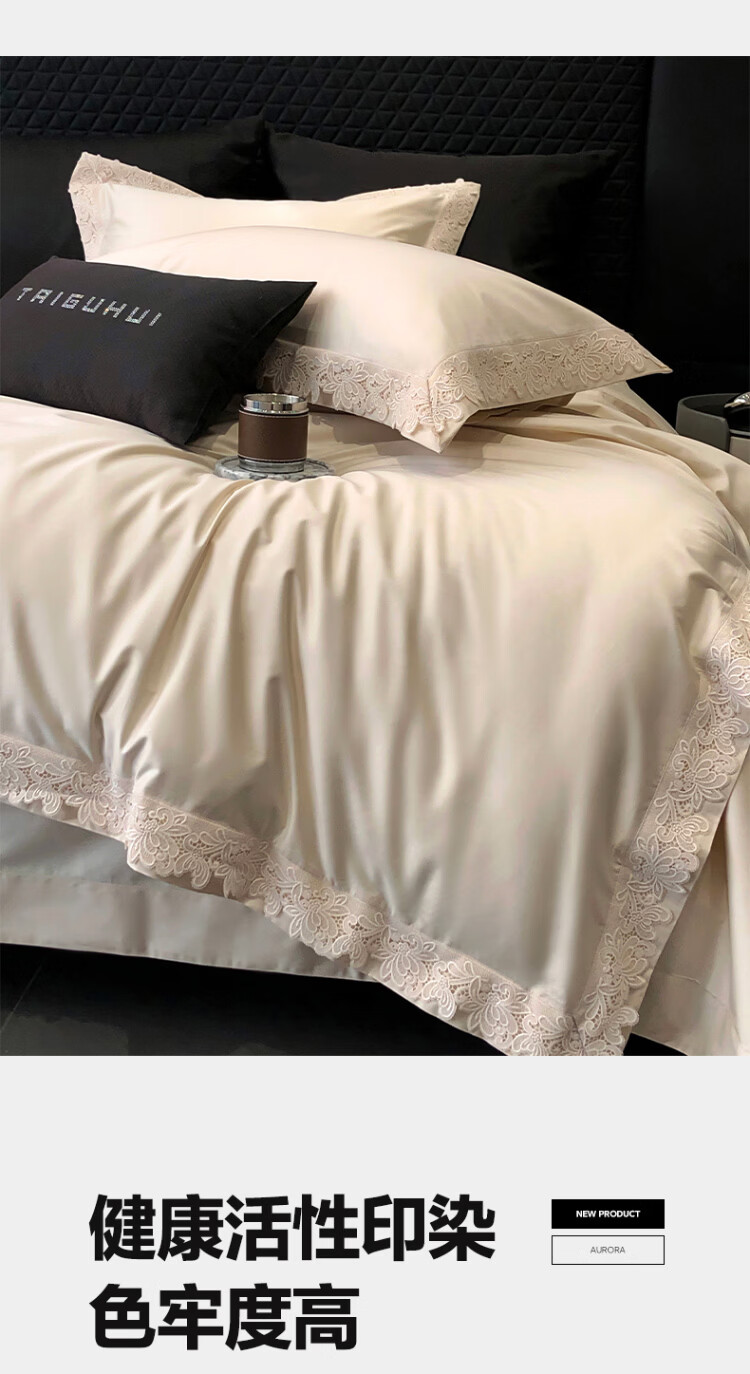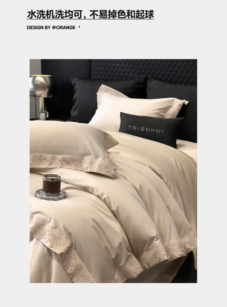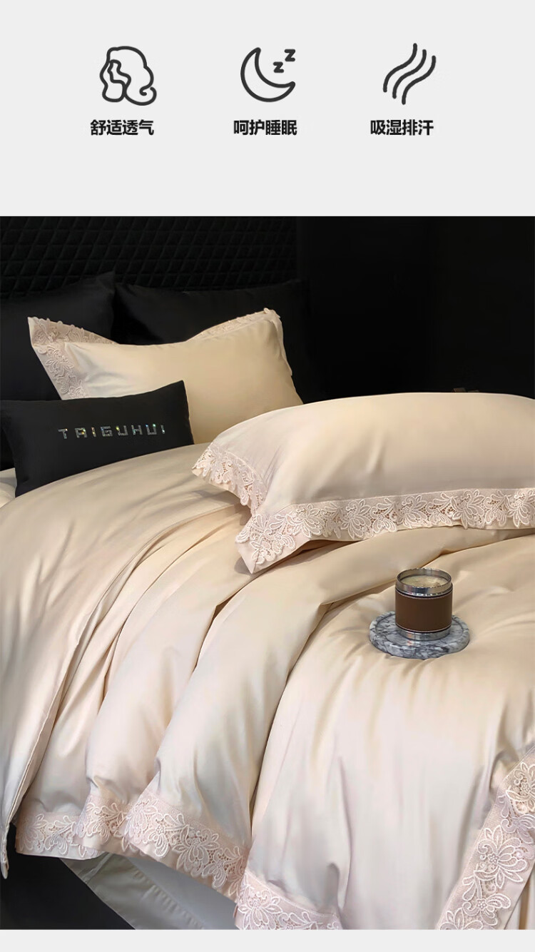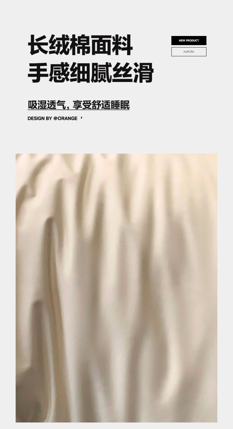 ROLAND LIVE简约高级感全棉四件套柔软透气1.8米床被套床单裸睡双人床床品 TGH 全棉四件套-爱丽丝香槟米 1.5米床 床单款 【被套200*230cm】