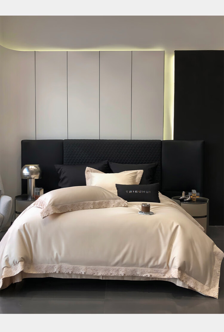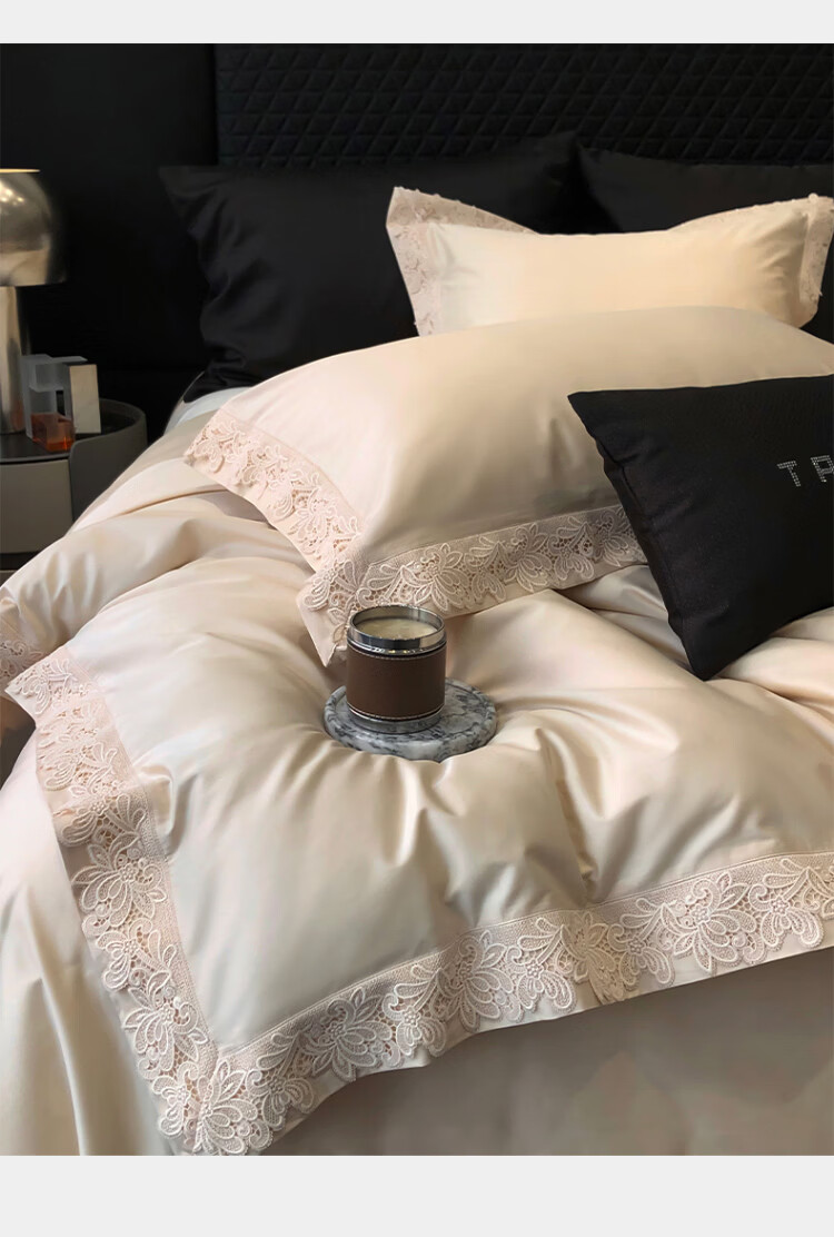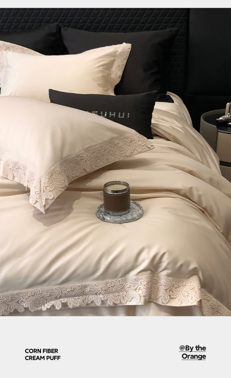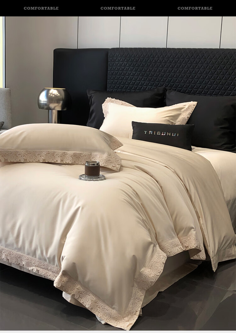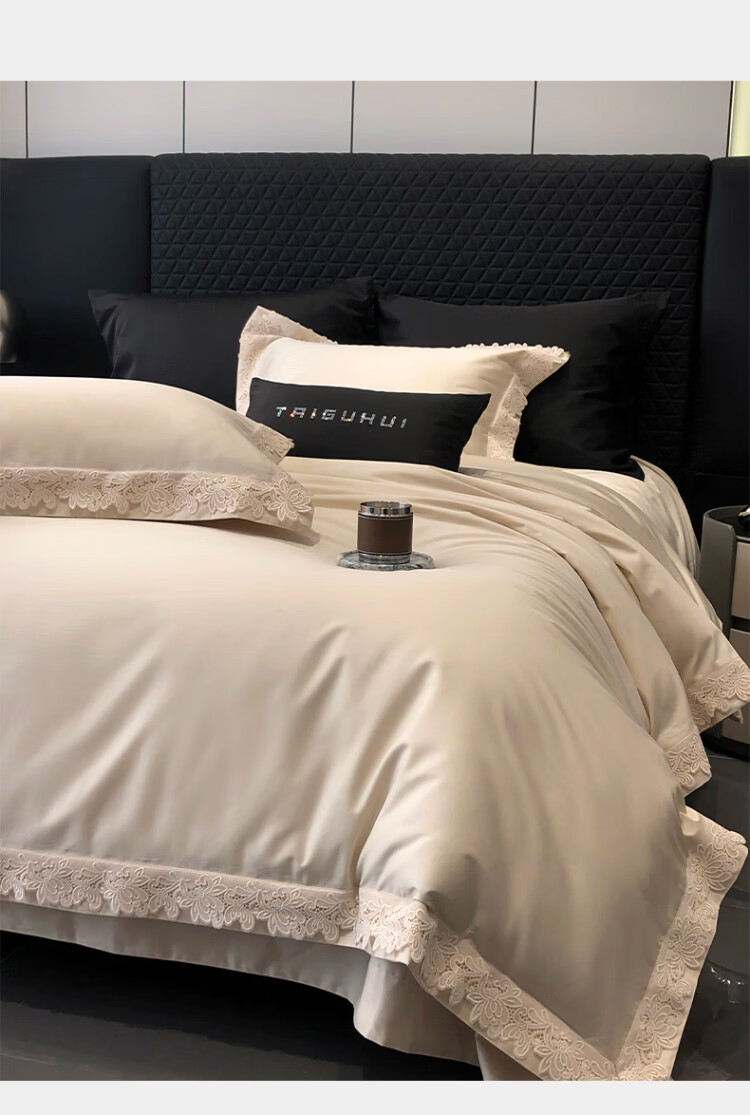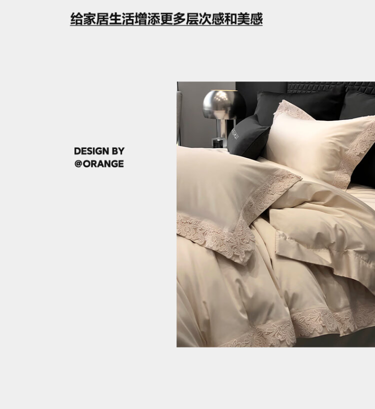 ROLAND LIVE简约高级感全棉四件套柔软透气1.8米床被套床单裸睡双人床床品 TGH 全棉四件套-爱丽丝香槟米 1.5米床 床单款 【被套200*230cm】