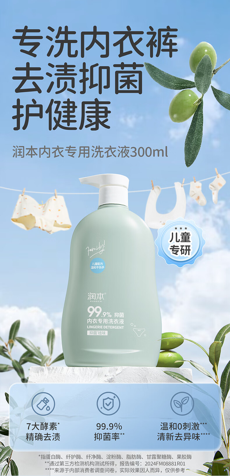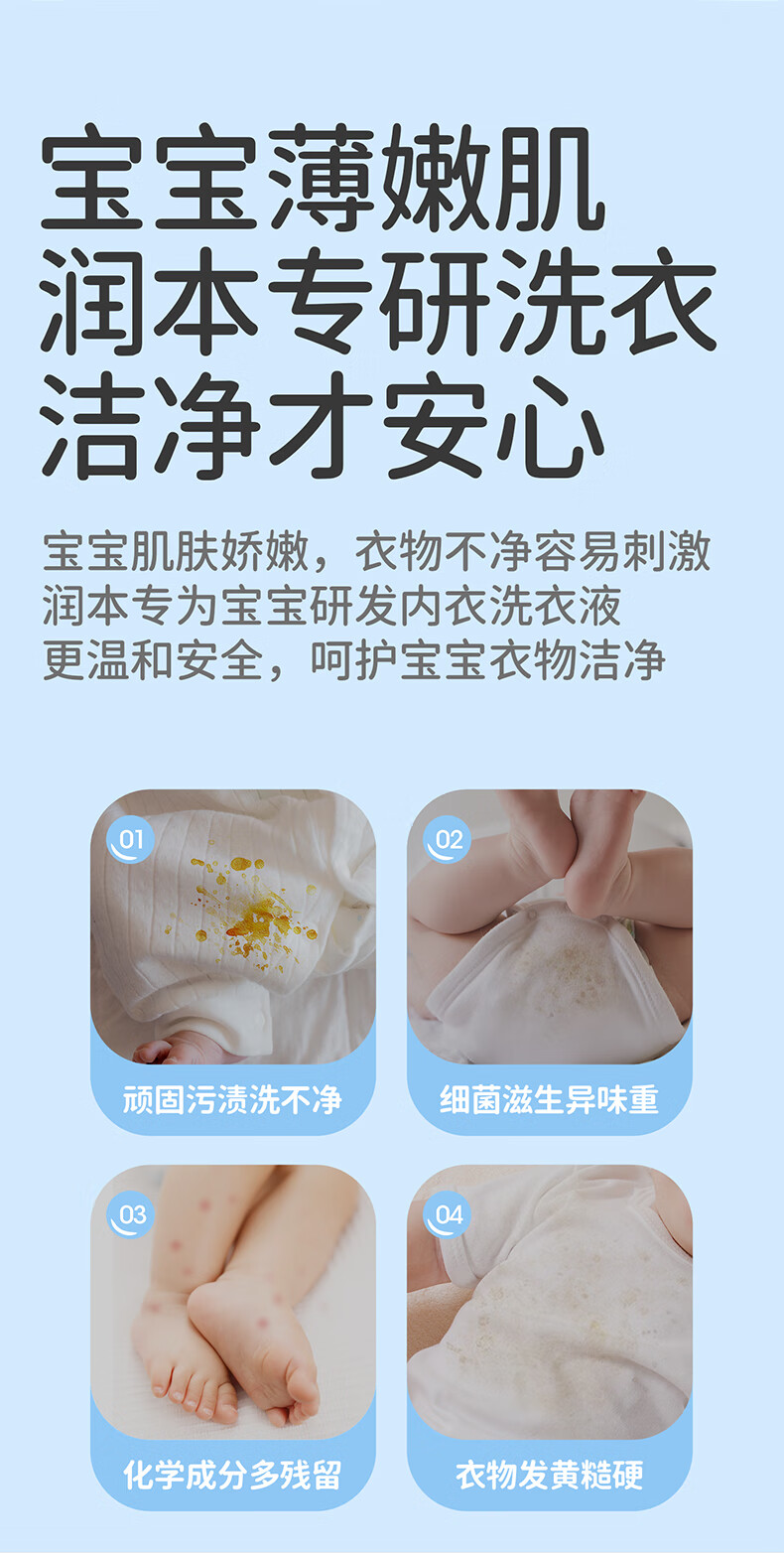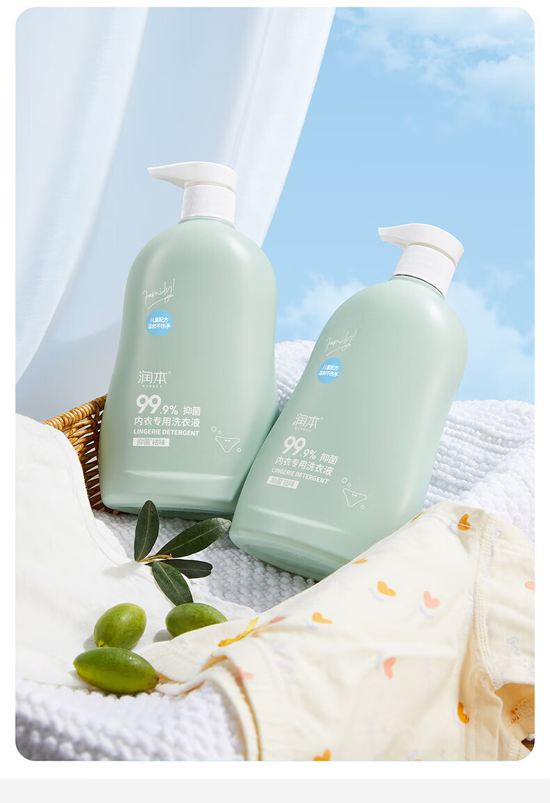 润本内衣裤洗衣液女士内衣清洗液杀菌除螨去血渍去黄儿童 300ml 2瓶 【到手共600ml】