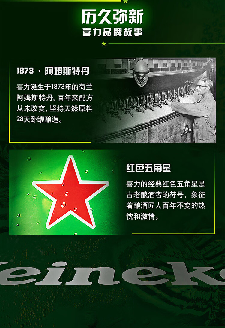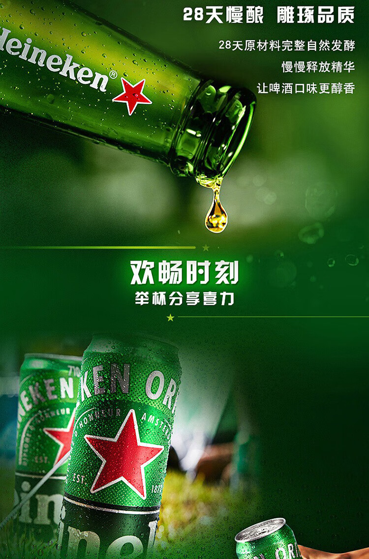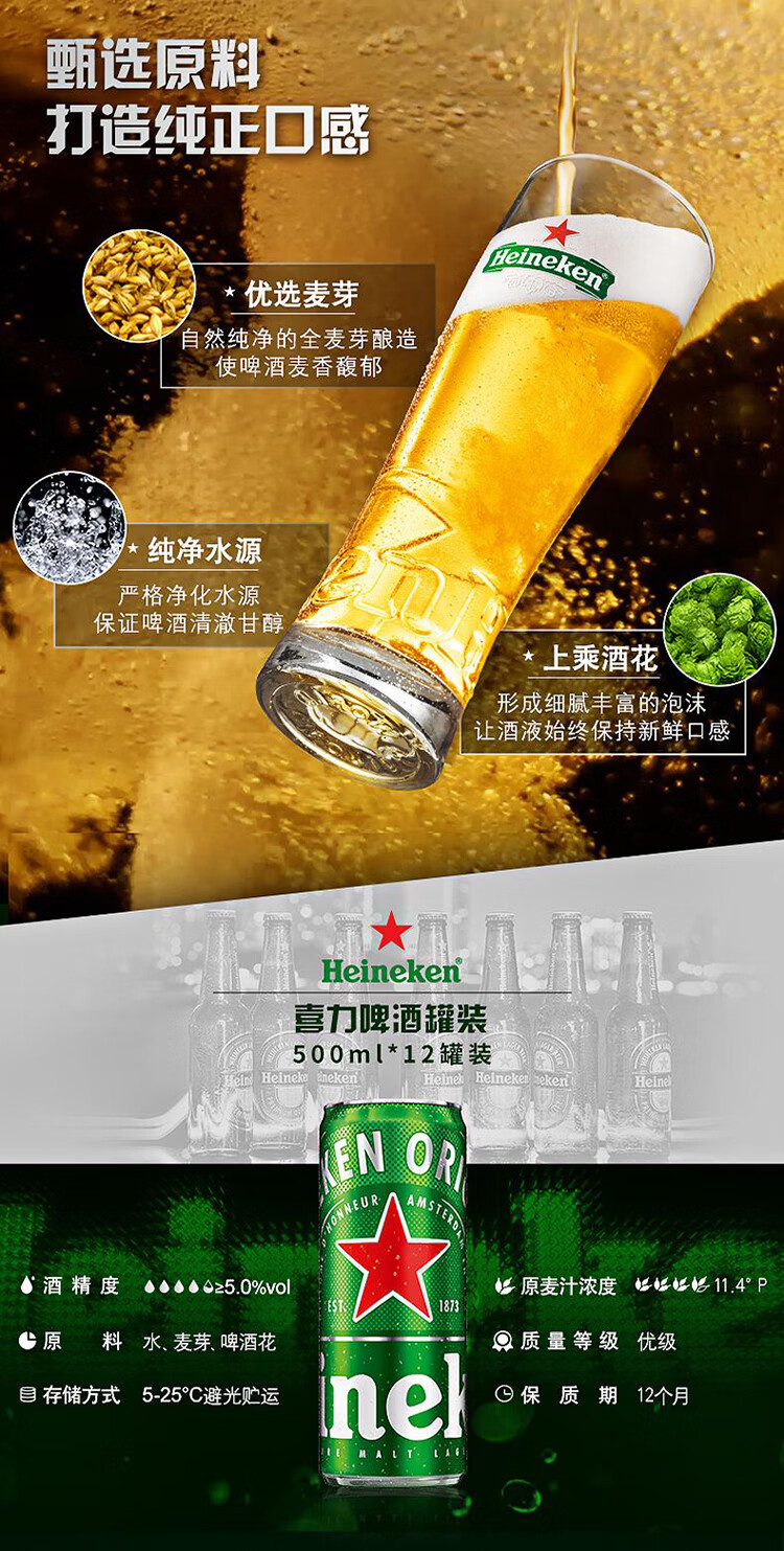 喜力啤酒 经典风味 全麦酿造 500*36罐 实惠装 京东自营踏春送礼