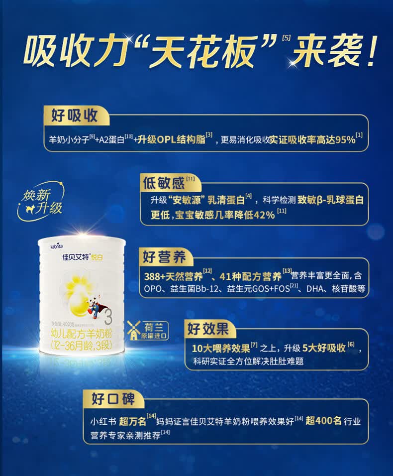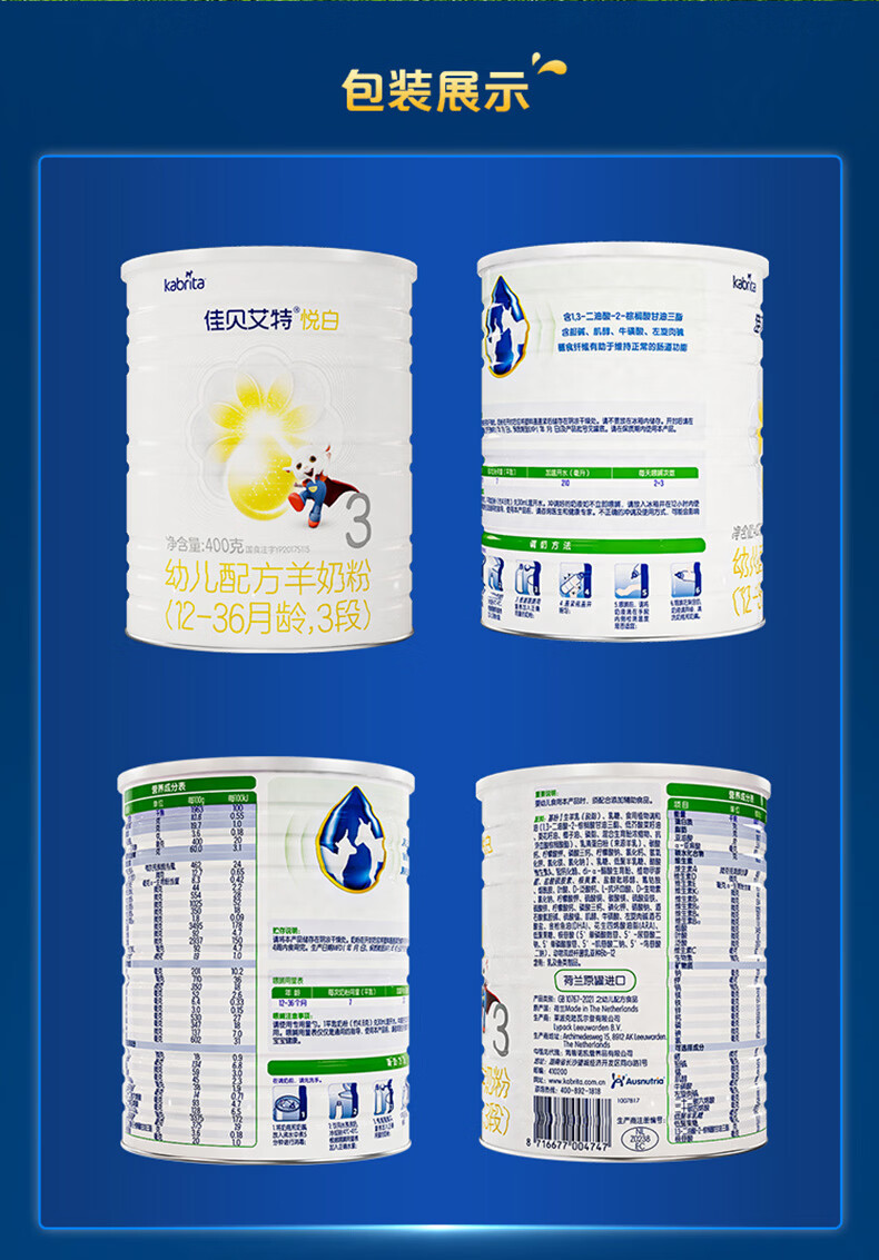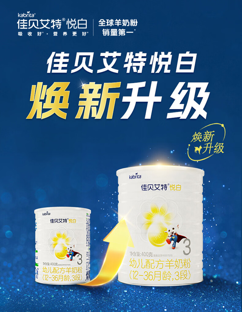 佳贝艾特(Kabrita)悦白婴幼儿配方羊奶粉 3段(1-3岁)400克 天然A2蛋白