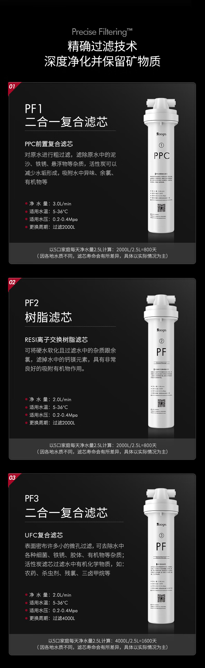 daogrsV3xs/V5w/V5b嵌入式净饮机滤芯 V3xs/V5b/V5w滤芯套装