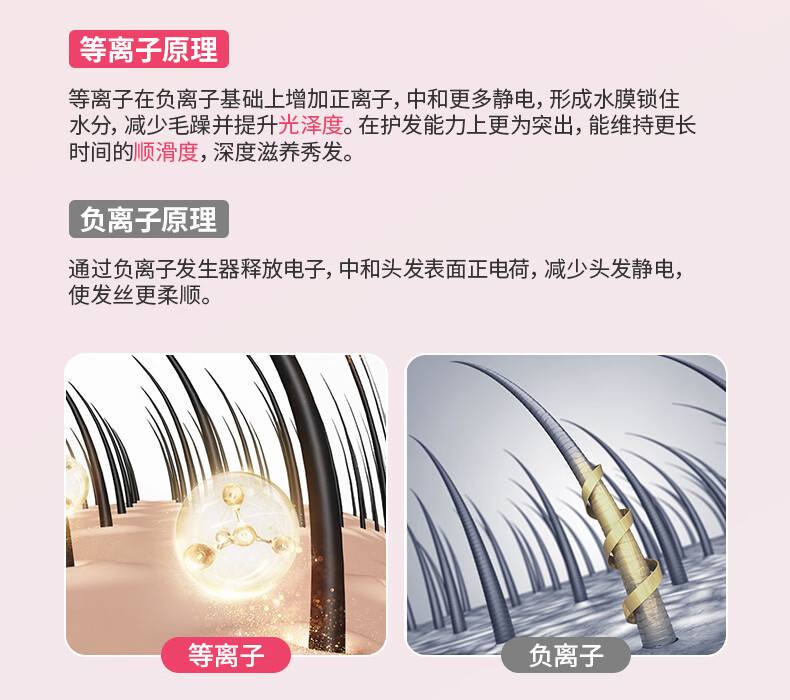 小米同款吹风机静音发廊负离子护发家用大功率不伤发宿舍电吹风 渐变粉【1800W】大风力+双层隔热