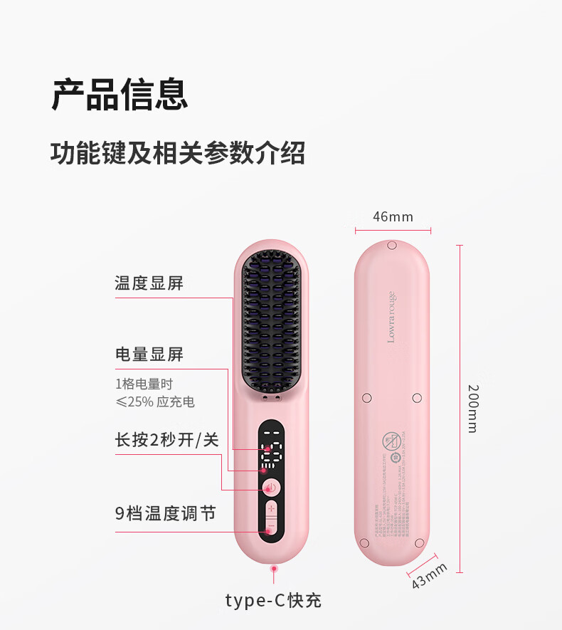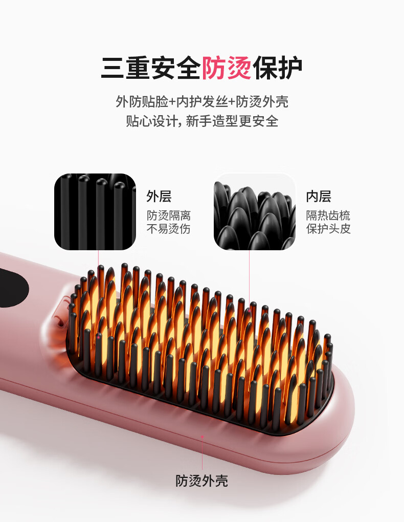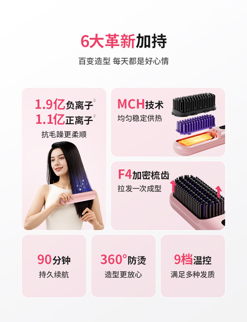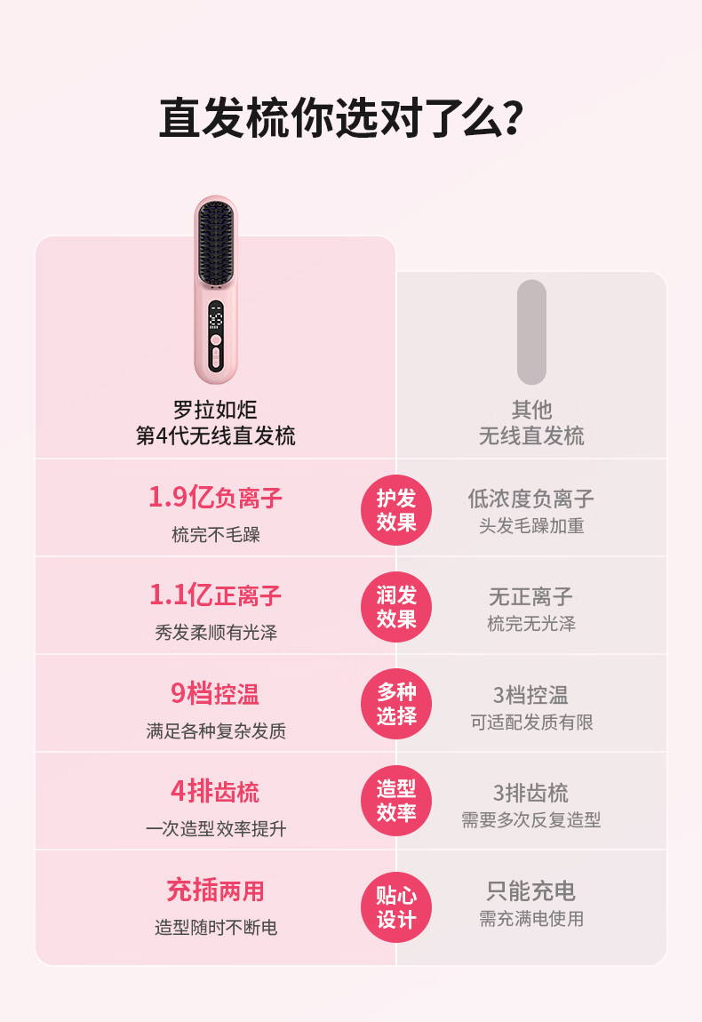 罗拉如炬第4代无线直发梳负离子不伤发便携卷直两用蓬松梳高颅顶发型持久造型梳送女友节日送礼 【升级4代无线款】3亿正负离子养护