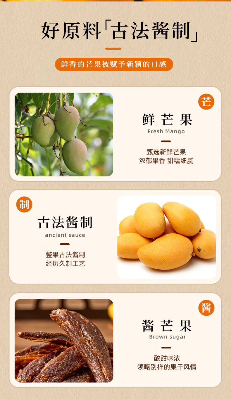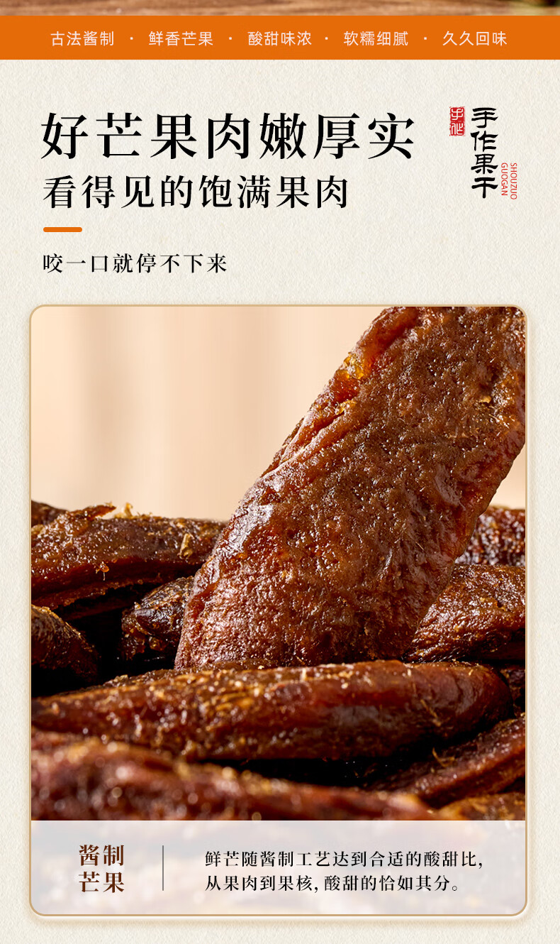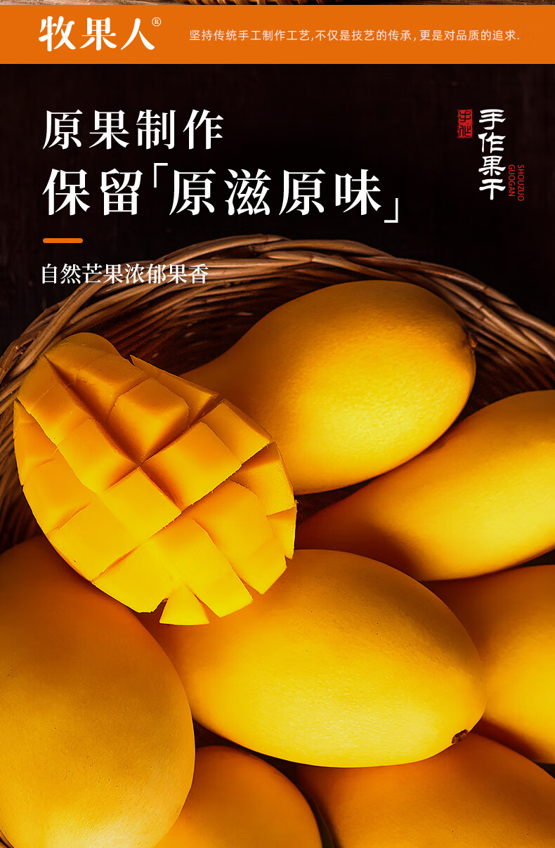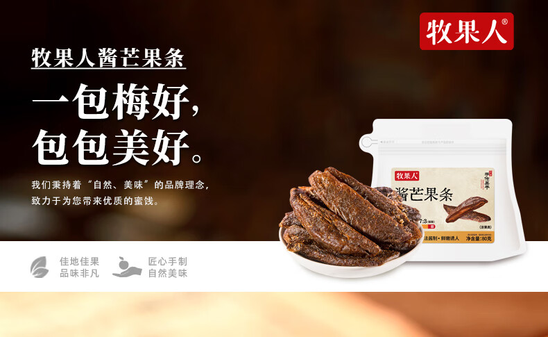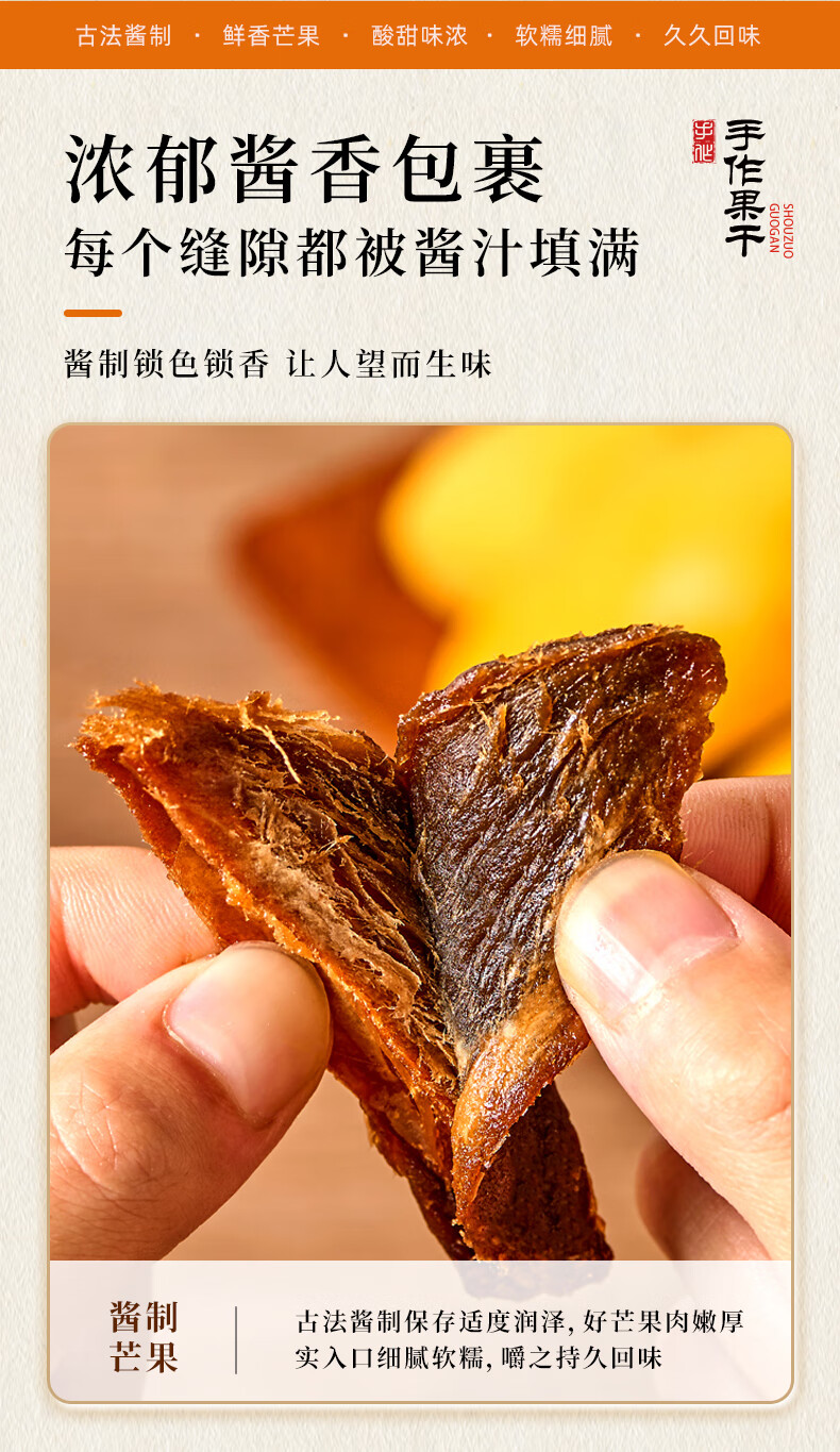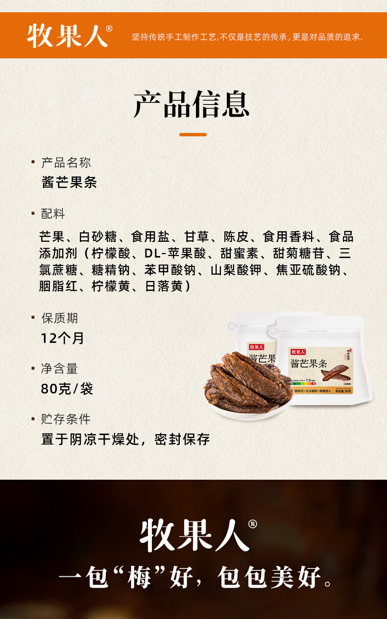 牧果人酱芒果条80g 大块果肉原味酸甜蜜饯果脯水果干休闲零食