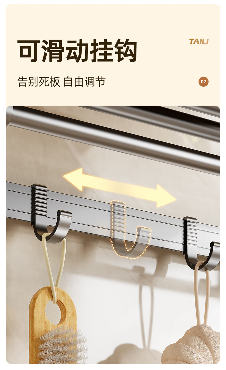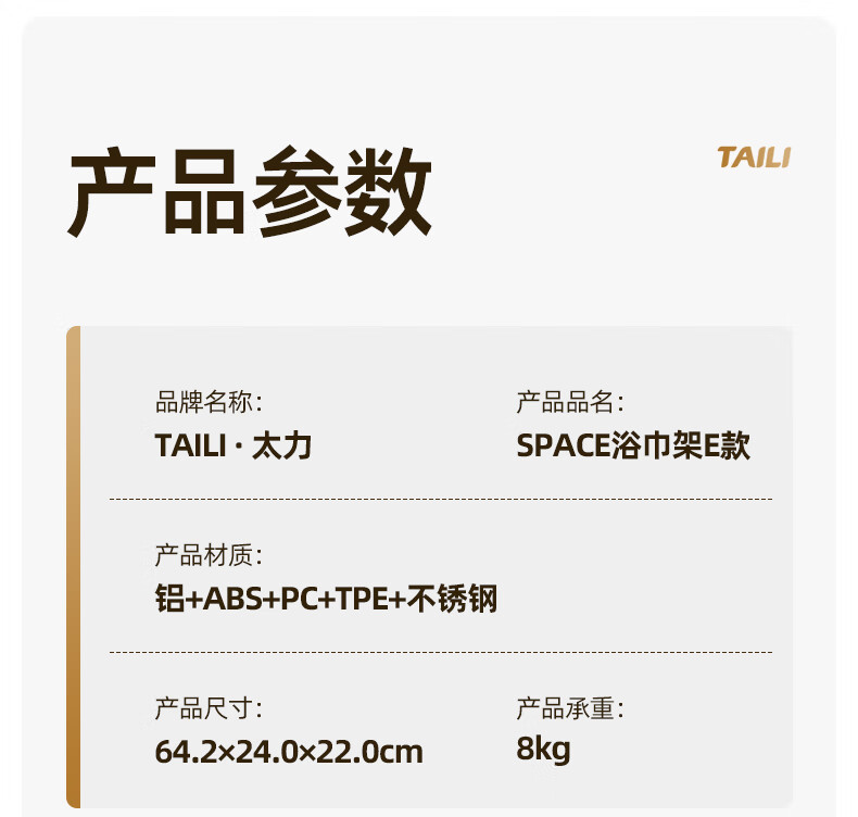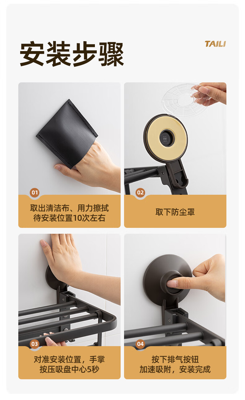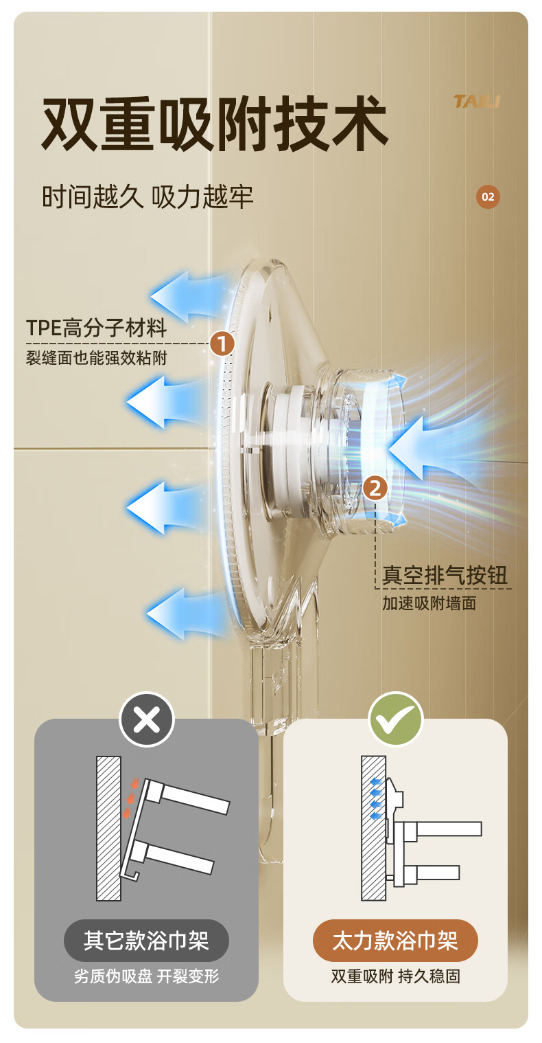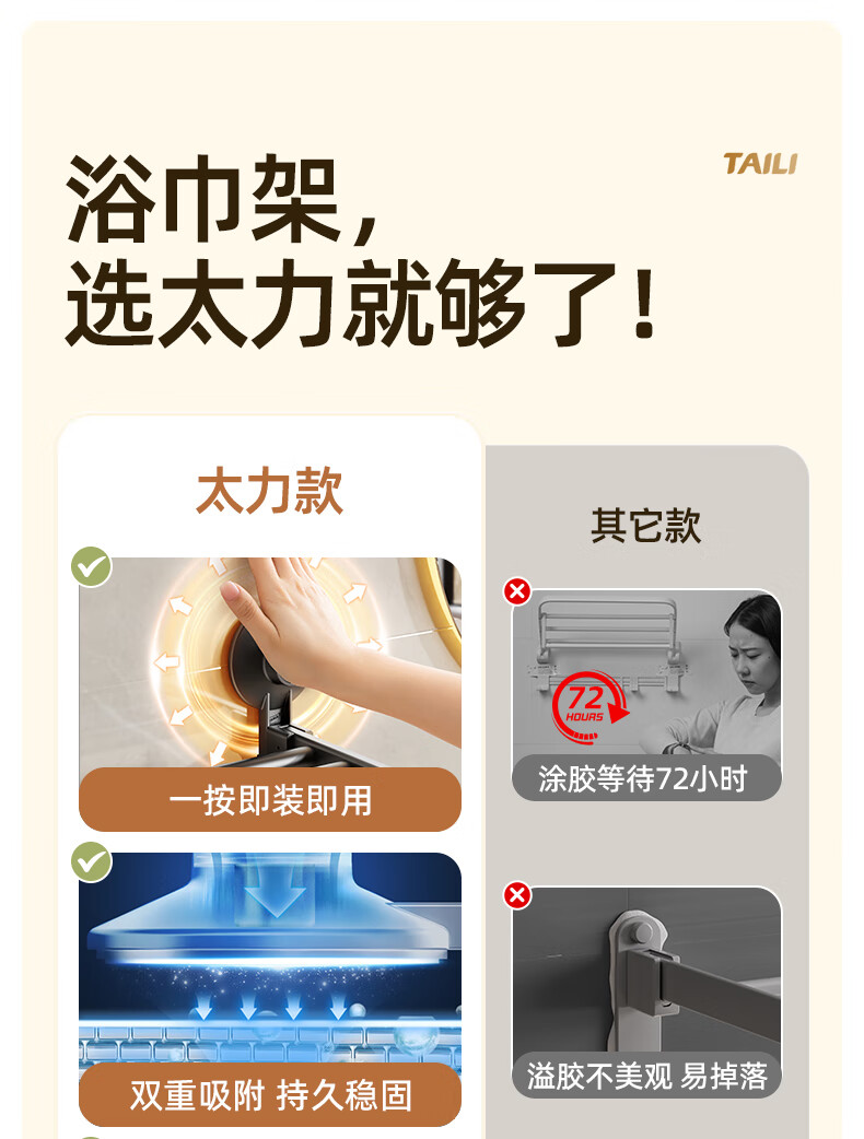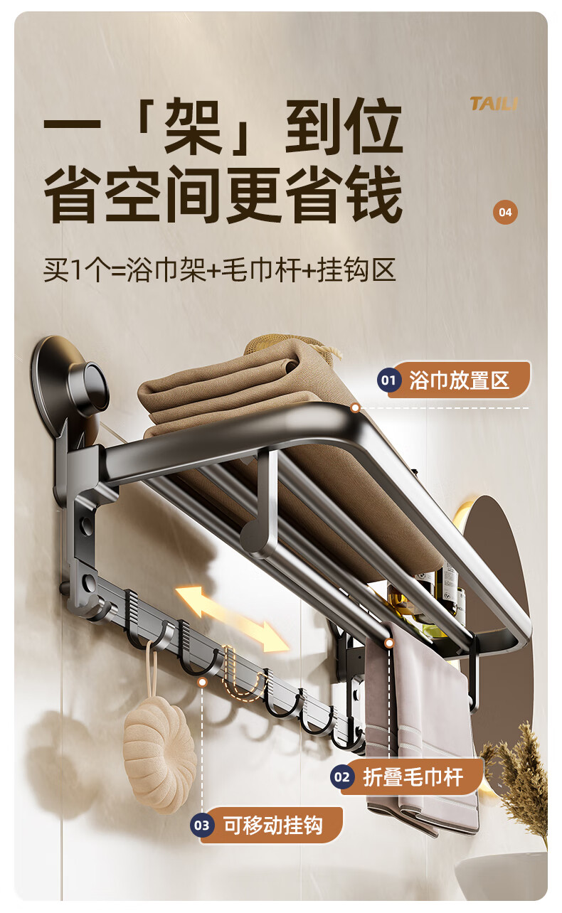 太力吸盘卫生间置物架毛巾架浴室厕所壁挂毛巾杆太空铝免打孔浴巾架