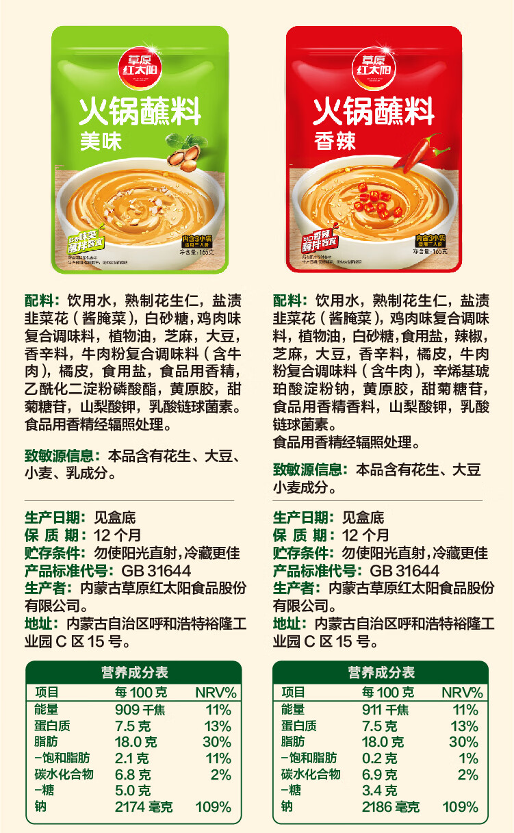 草原红太阳火锅涮肉蘸料烤肉酱烧烤料原味香辣小包装组合沾料165g 【囤货装】蘸料165g*10袋-香辣