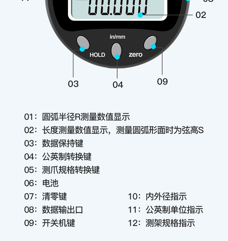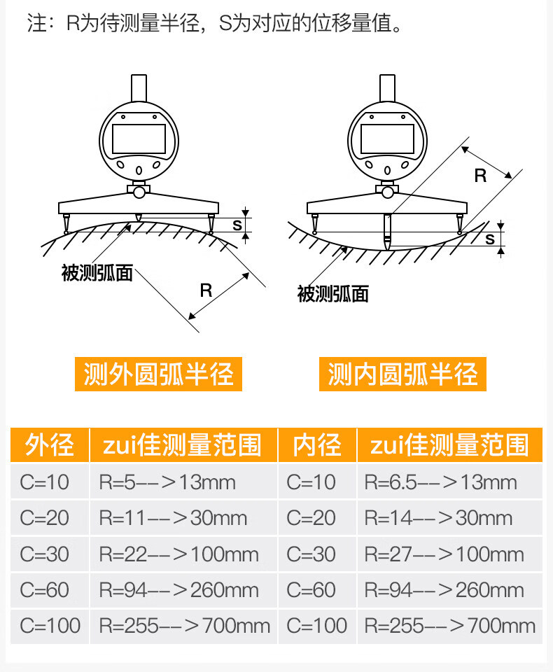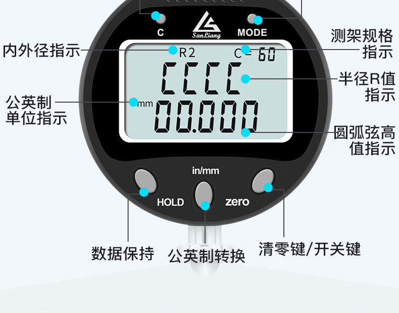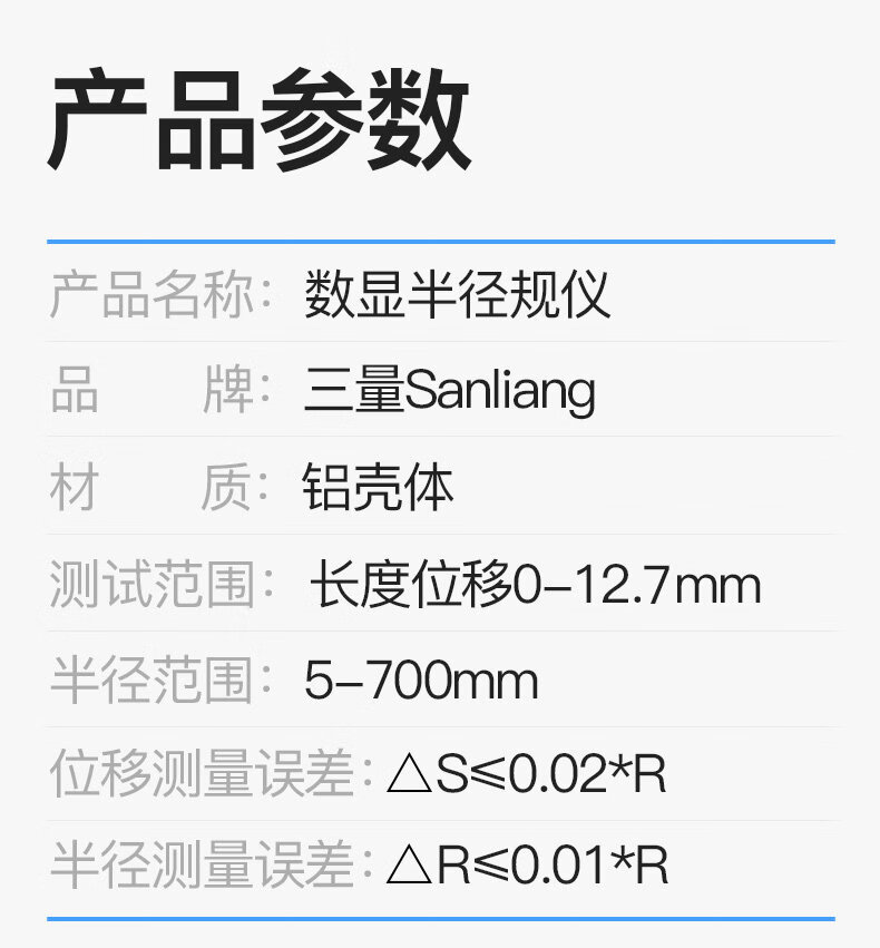 三量(sanliang)正品三量数显半径规仪直径测量仪R规弧度规测圆度规弧面规r角规 313-791 量程0-12.7mm R5-R700 无规格