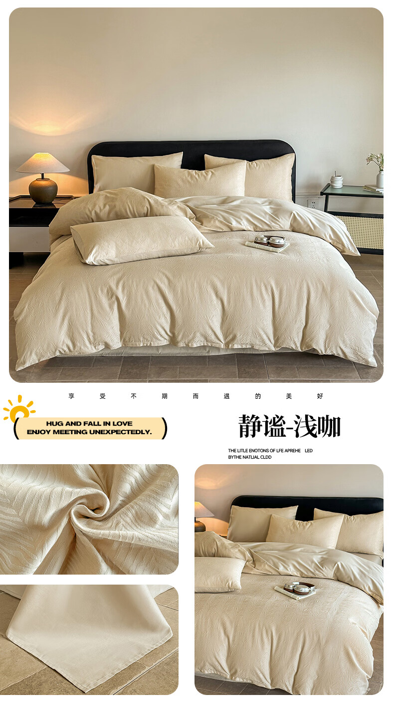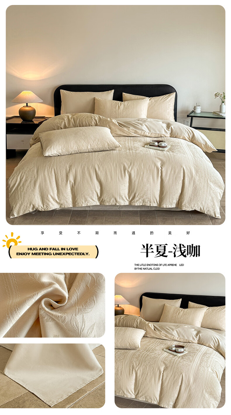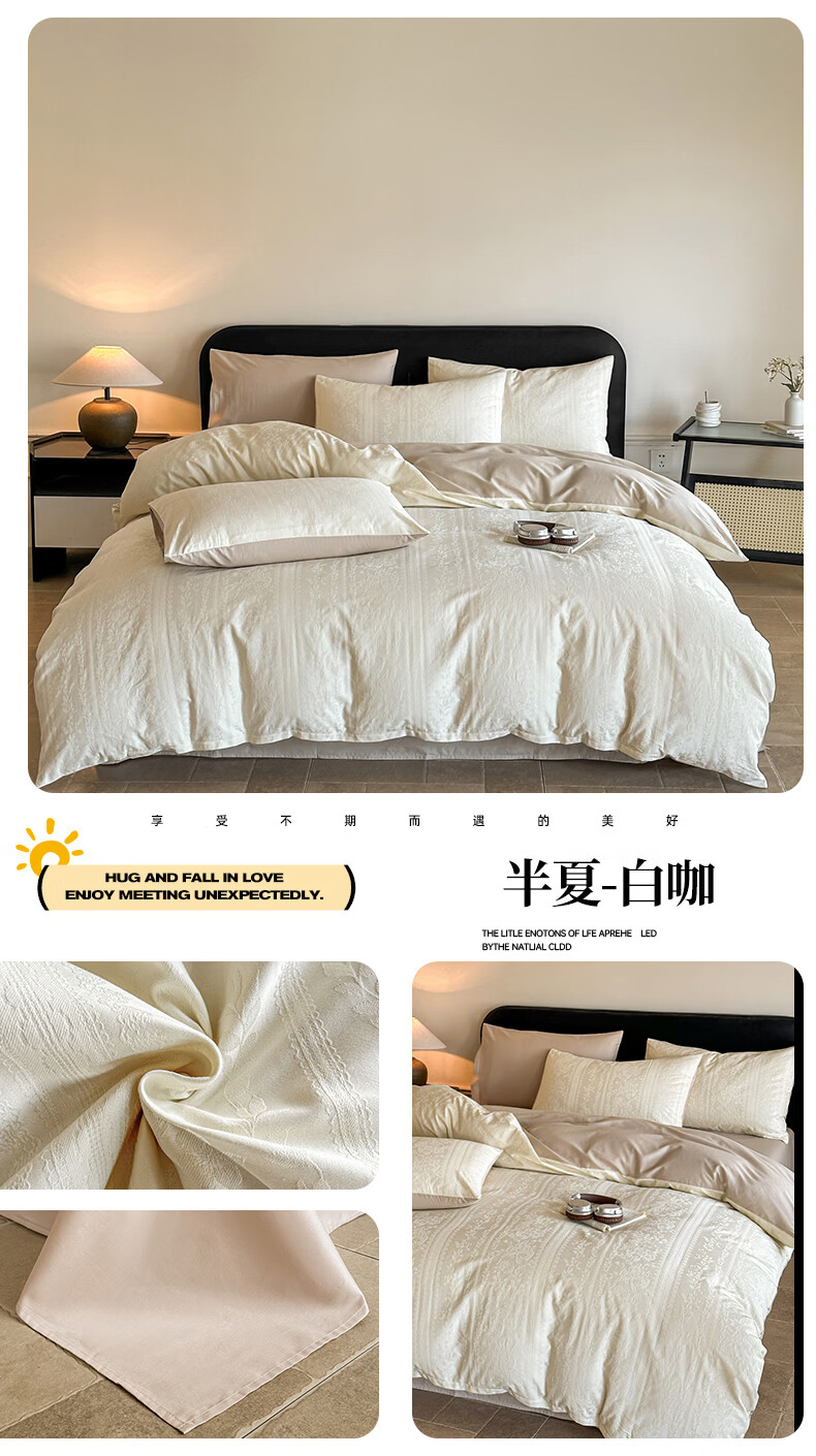 无印良品A类全棉纯棉床上四件套高级轻奢2026新款床单被套罩四季通用裸睡4 半夏-白咖 【100%全棉面料 精美提花工艺】 1.8m 床单款 四件套-被套200x230cm