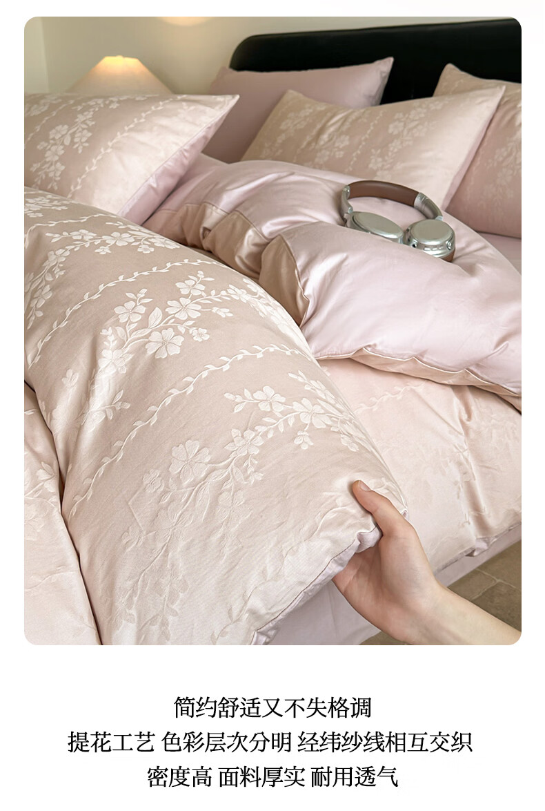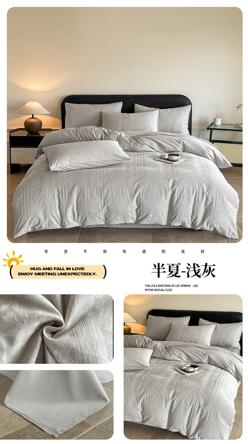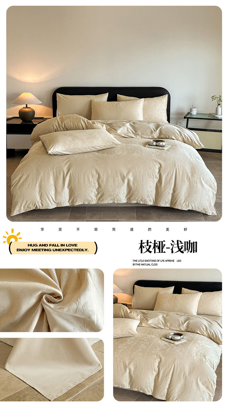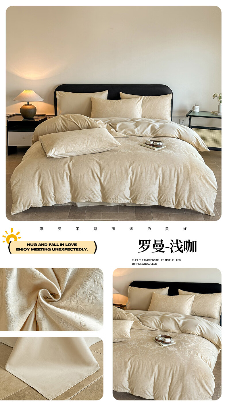 无印良品A类全棉纯棉床上四件套高级轻奢2026新款床单被套罩四季通用裸睡4 半夏-白咖 【100%全棉面料 精美提花工艺】 1.8m 床单款 四件套-被套200x230cm