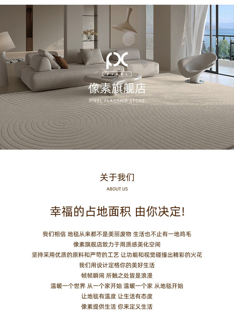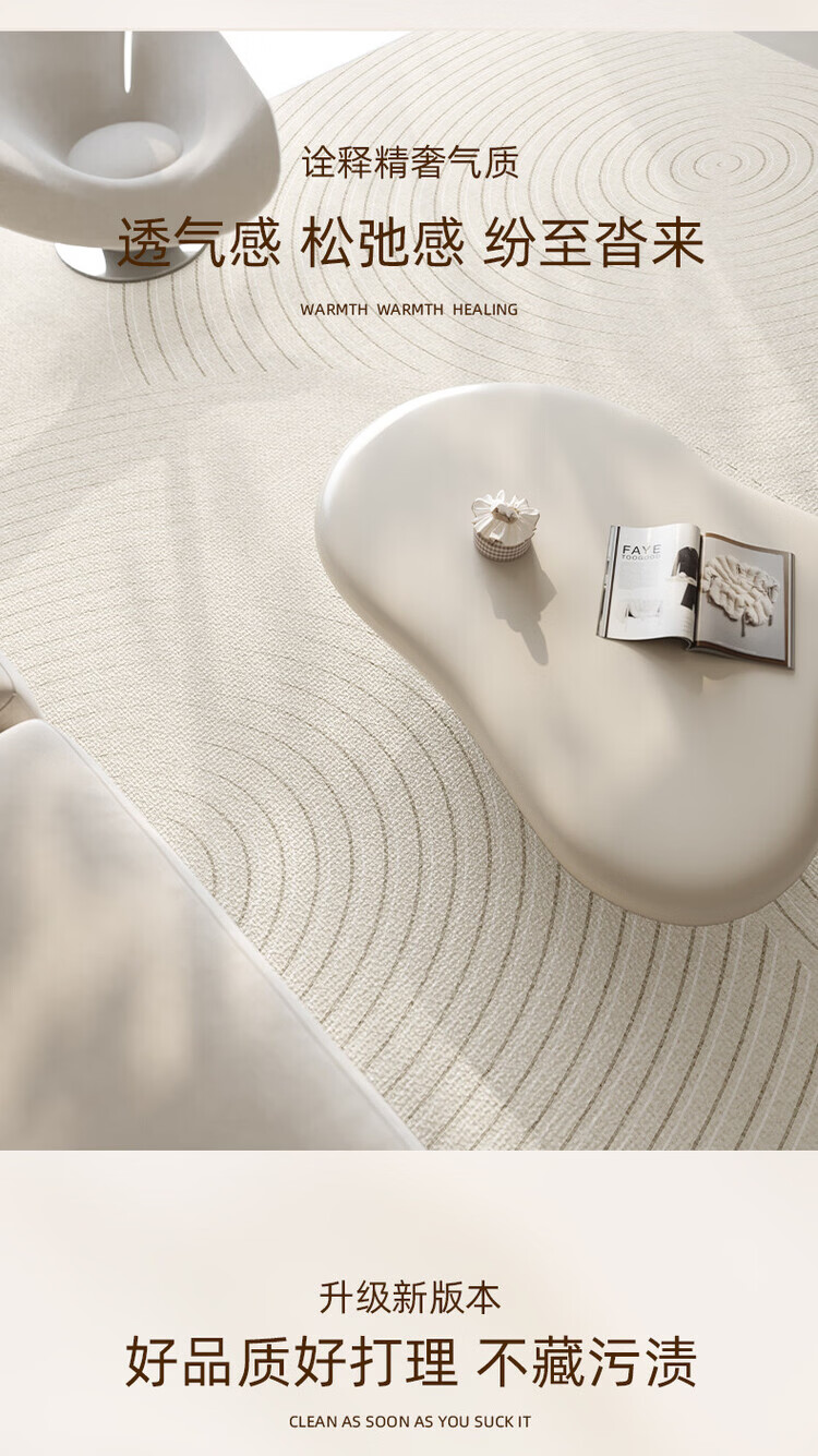 像素地毯客厅奶油风2026新款免洗可擦家用沙发茶几防水地垫卧室床边毯 素线-15934 140*200cm 凝水毯面