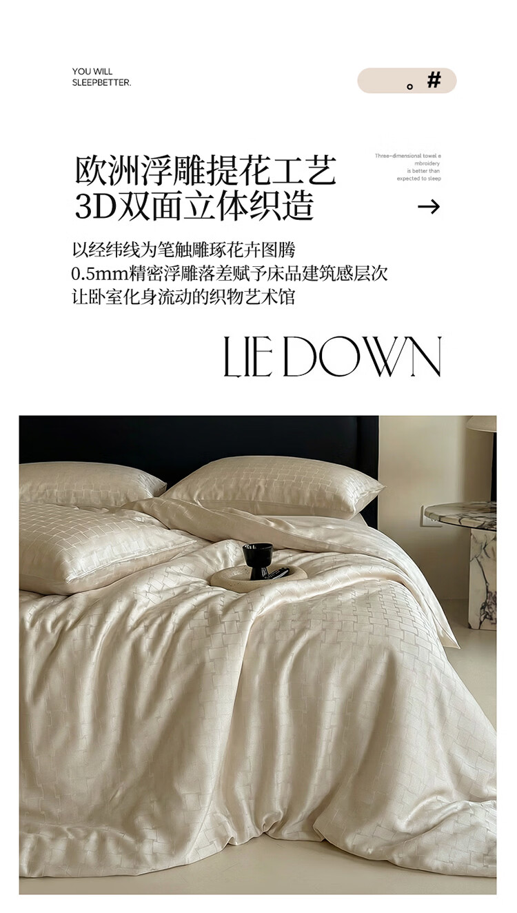 ROLAND LIVE春夏60兰精天丝浮雕提花四件套丝滑透气被套床单裸睡床上用品 FOR 天丝提花四件套-卢浮秘境 1.5米床 床单款 【被套200*230cm】
