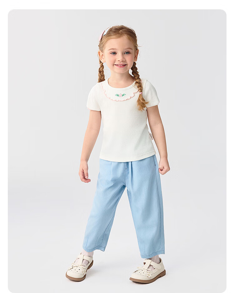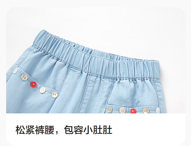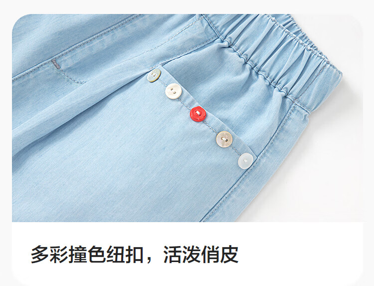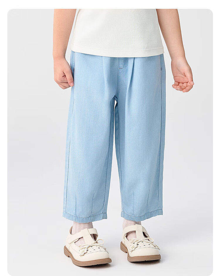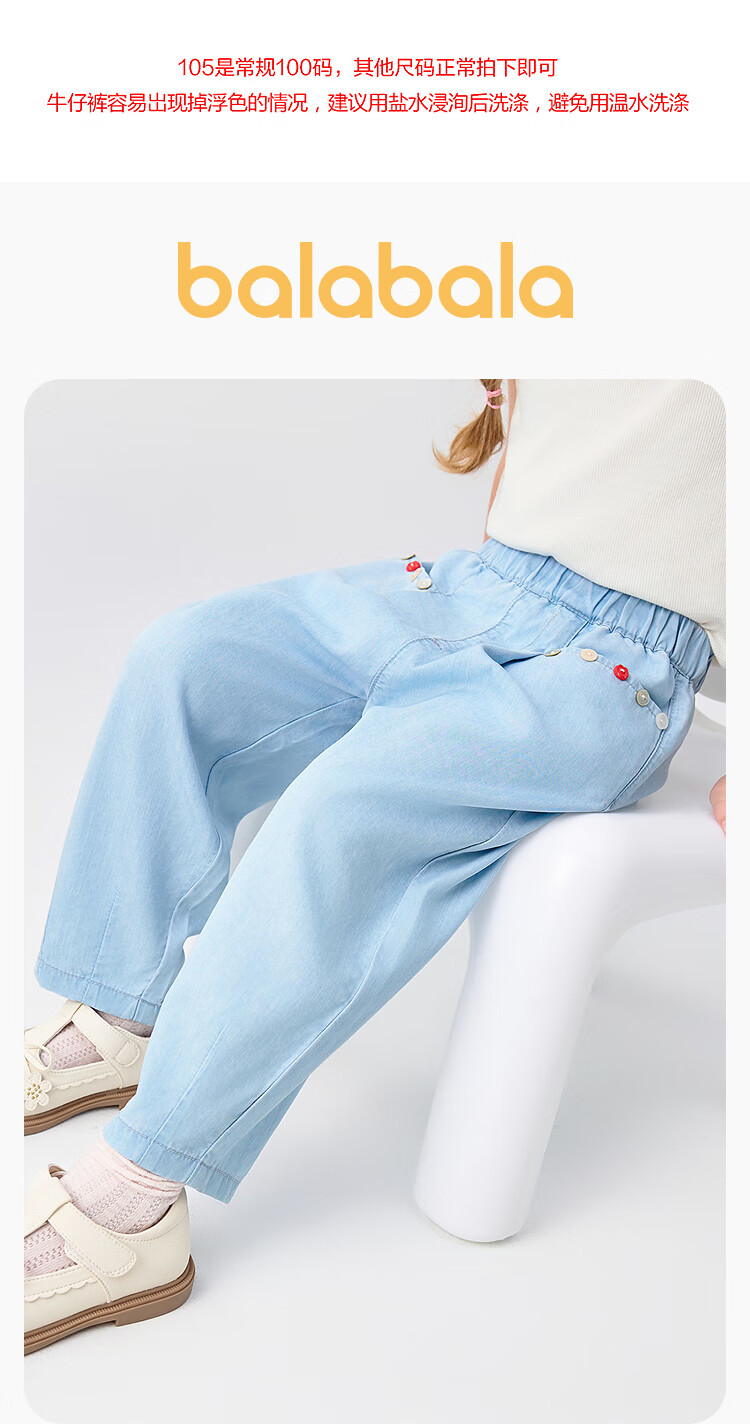 巴拉巴拉童装儿童长裤凉感防晒牛仔裤女童夏季新款裤子松紧腰 牛仔浅蓝88101 130