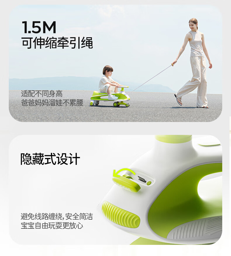 酷骑儿童扭扭车拖斗款可坐大人静音耐磨万向轮周岁礼物1-8岁酷骑绿