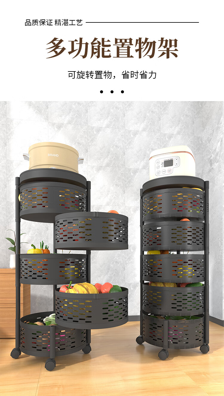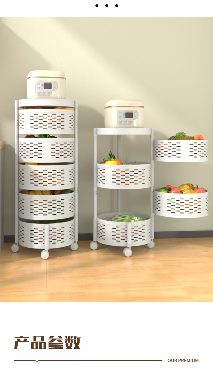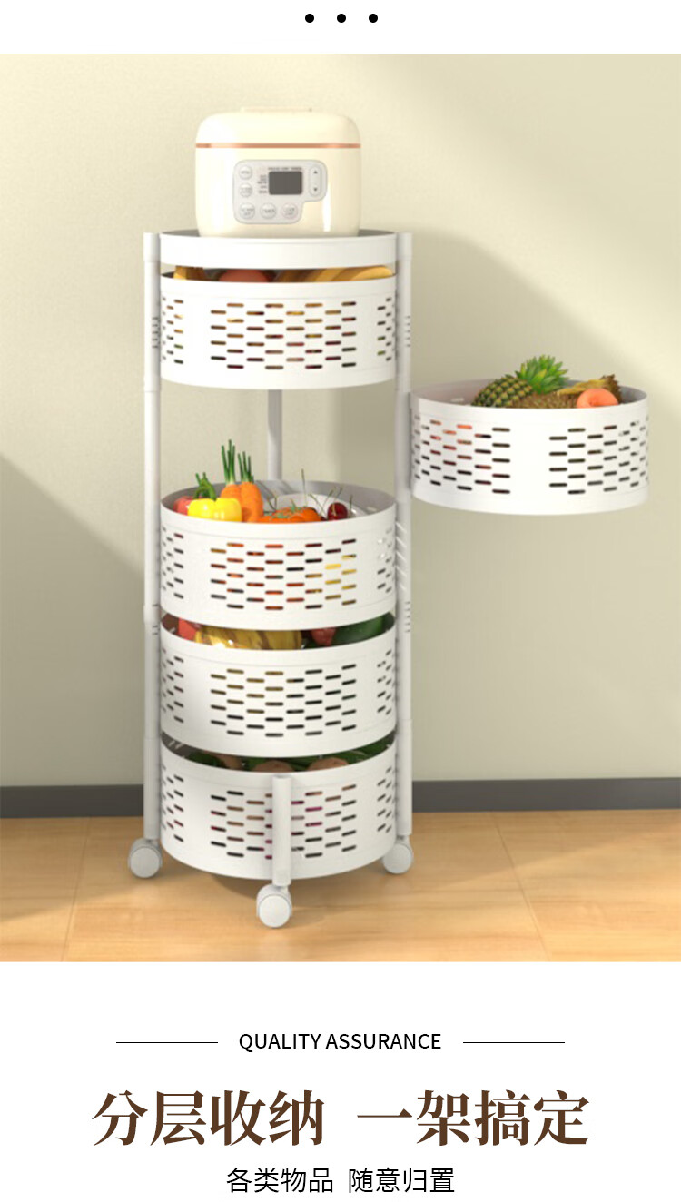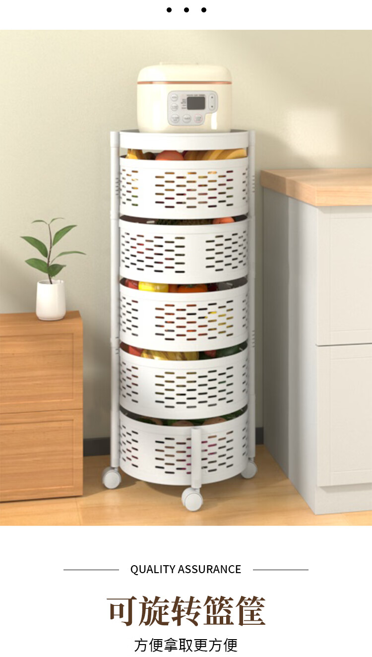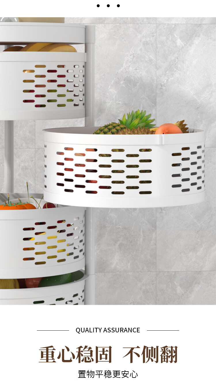 馨婺家厨房置物架落地家用客厅零食箱玩具果蔬菜篮多层旋转小推车收纳架 白色-2层【固定款】